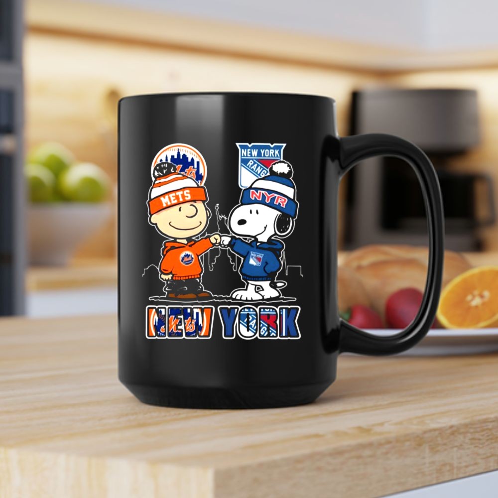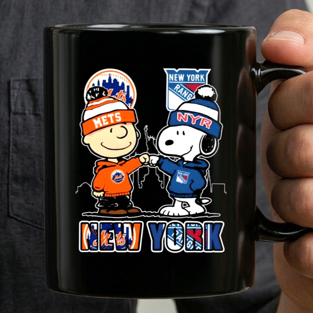 Mashup Charlie Brown New York Mets and Snoopy New York Rangers Mug