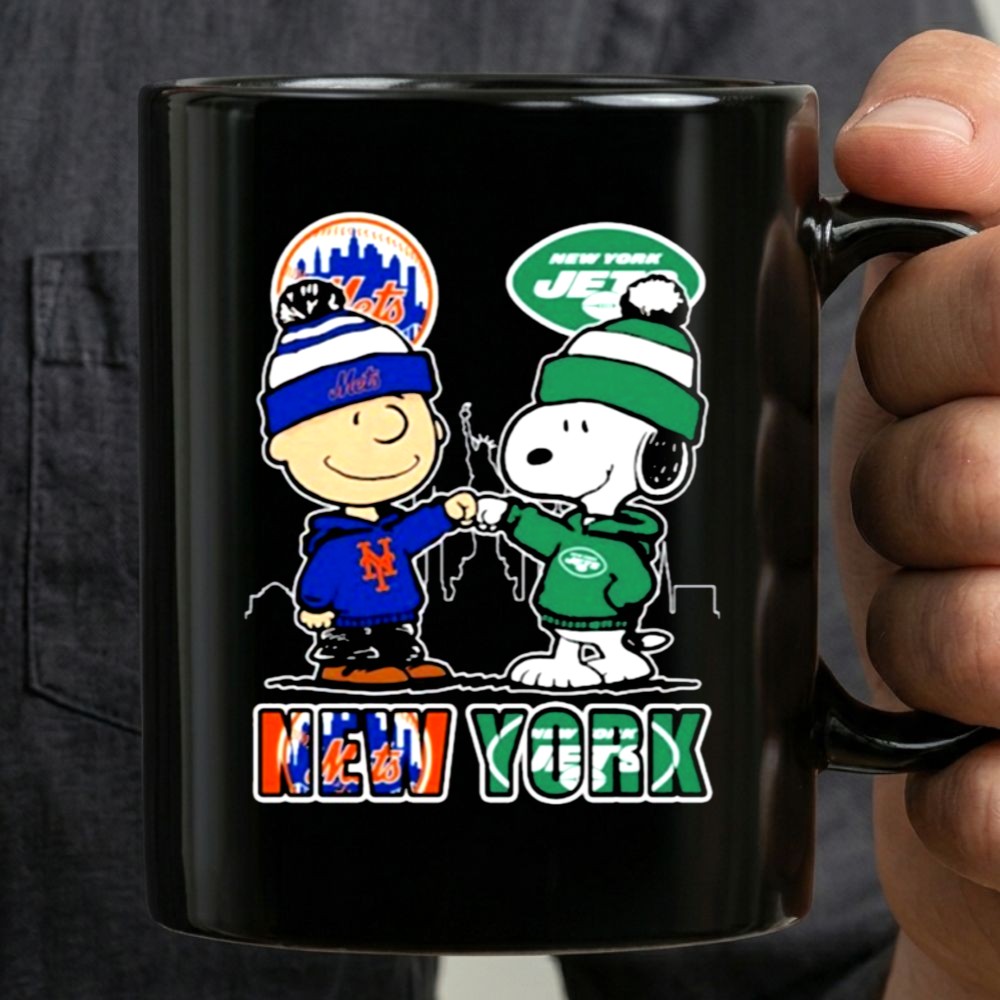 Mashup New York Snoopy Fist Bump Charlie Brown Mets And Jets Mug