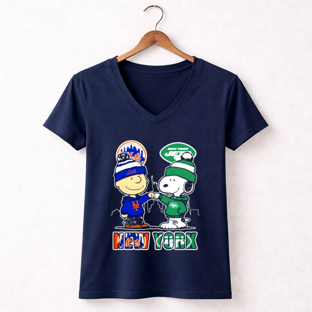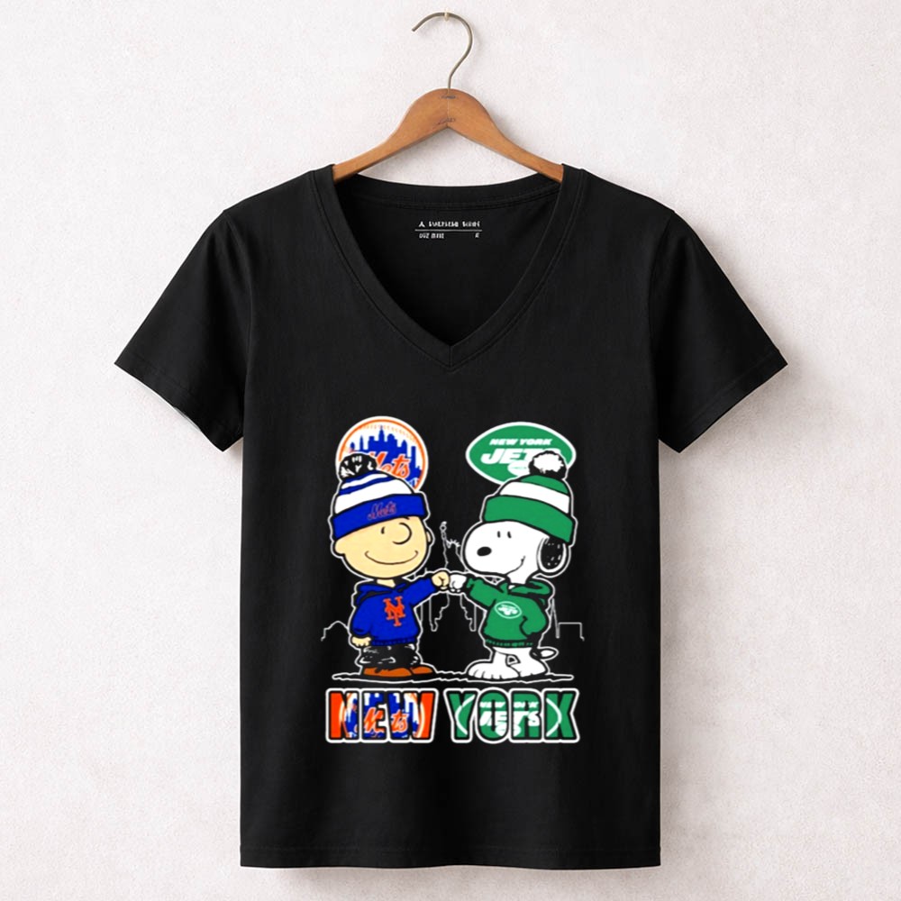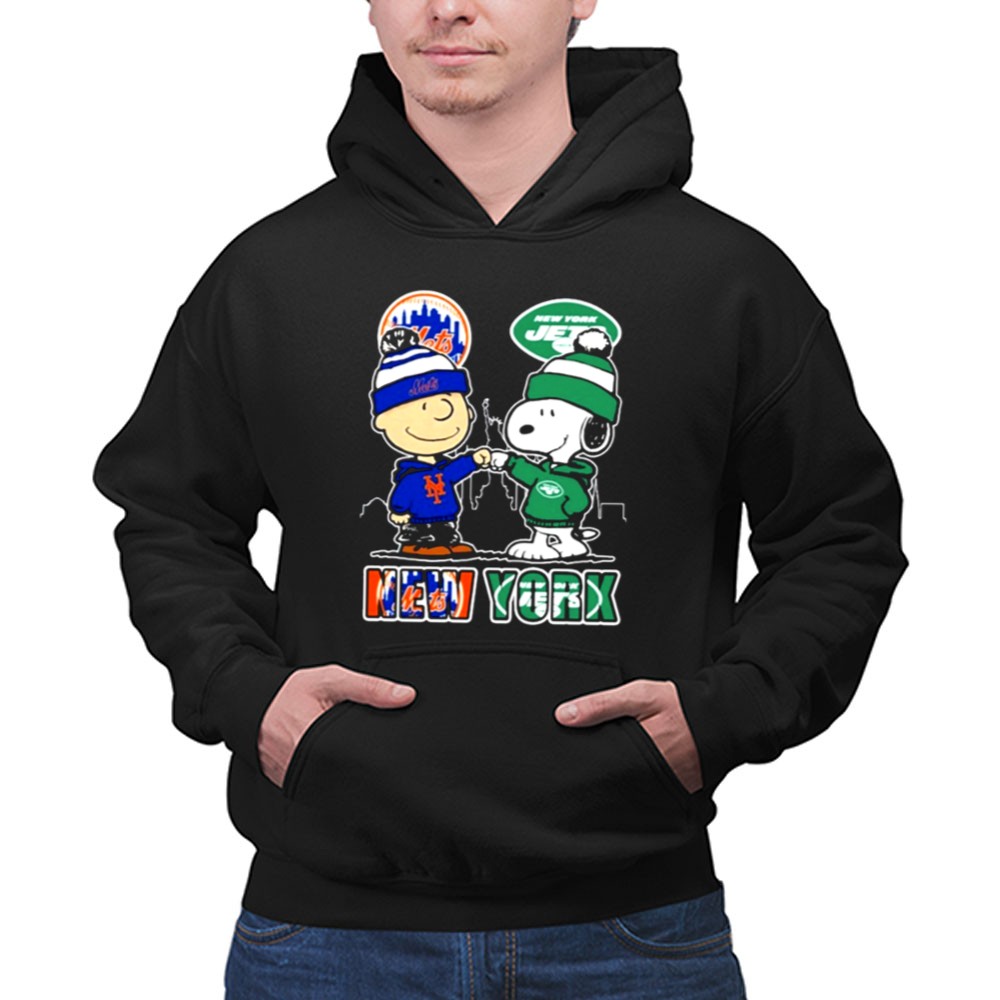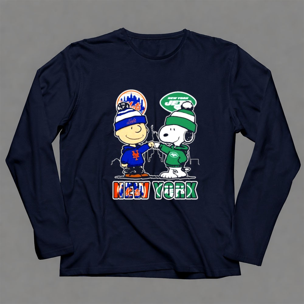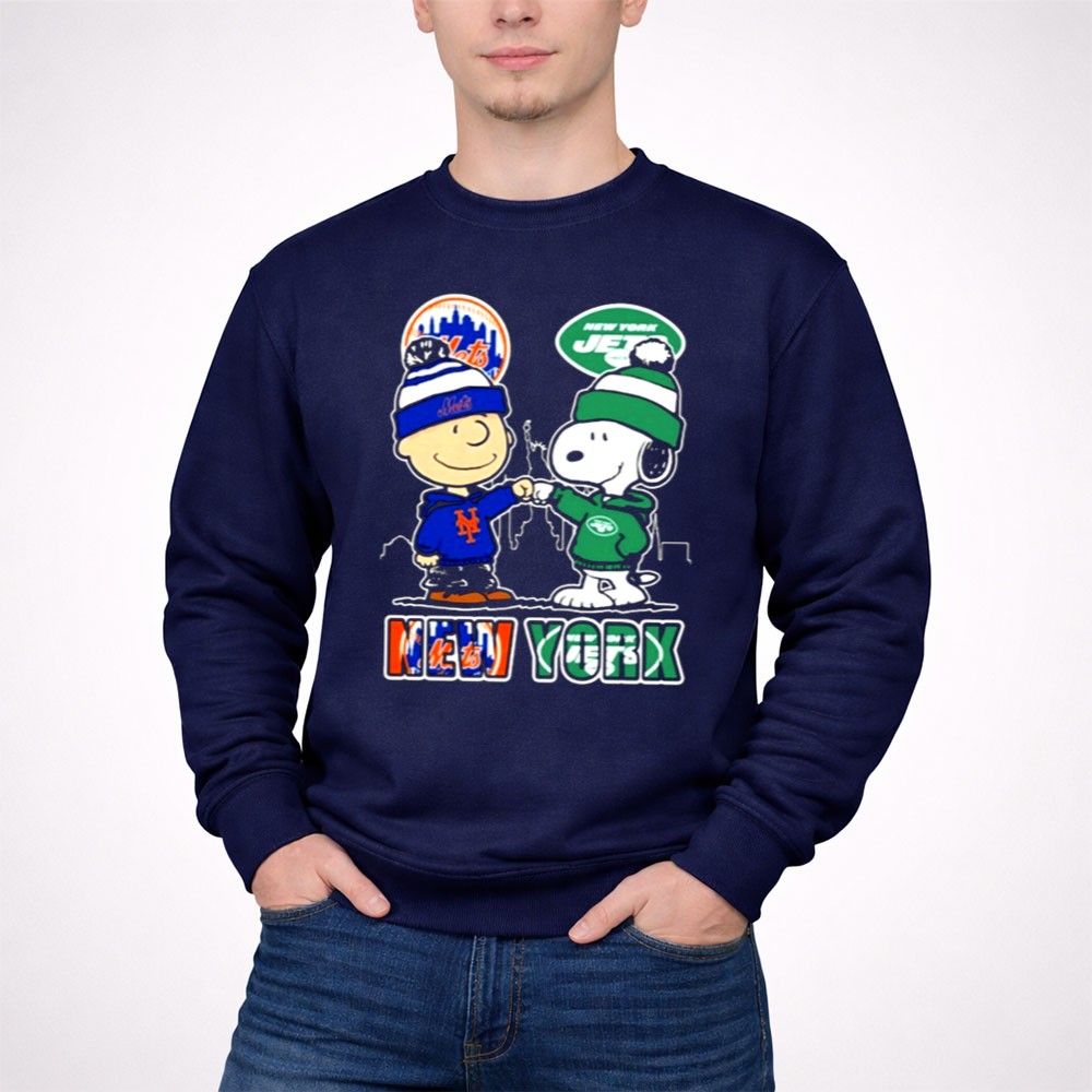 Mashup New York Snoopy Fist Bump Charlie Brown Mets And Jets Shirt