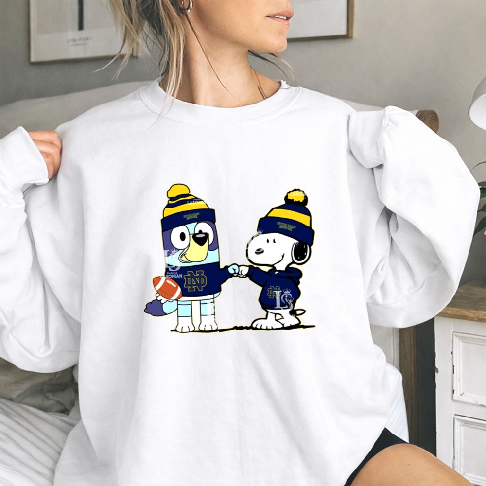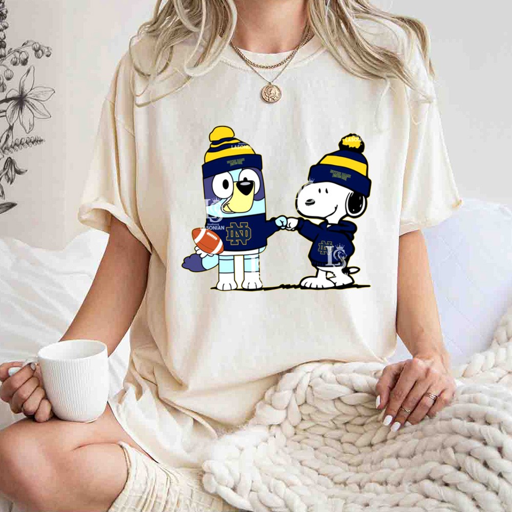 Mashup Snoopy and Bluey Wear Notre Dame Fighting Irish Shirt