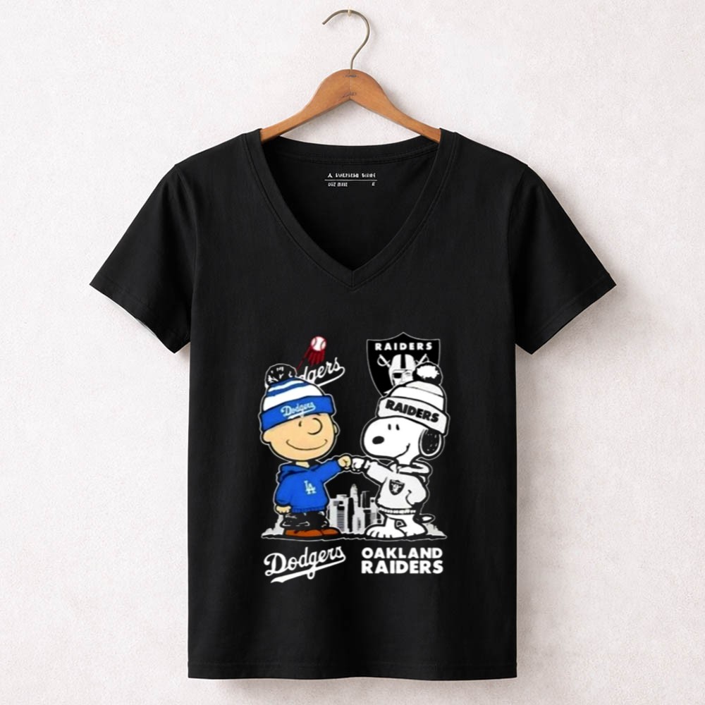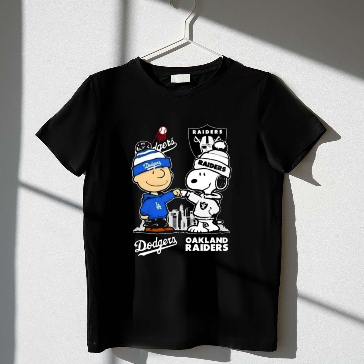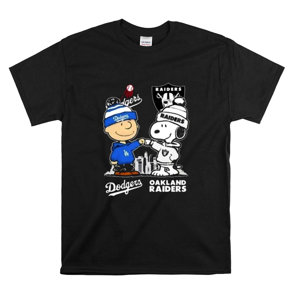 Mashup Snoopy And Charlie Brown Los Angeles Dodgers X Las Vegas Raiders Skyline Shirt