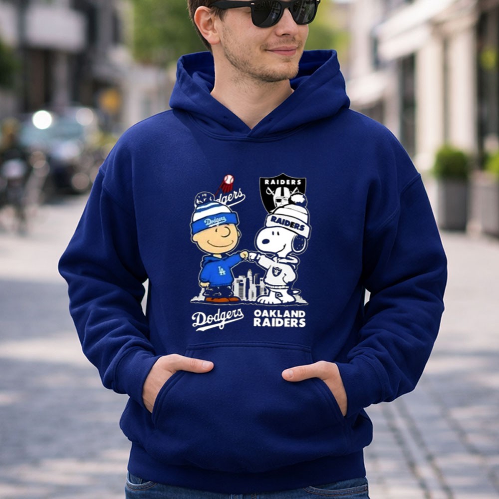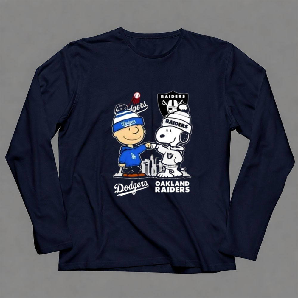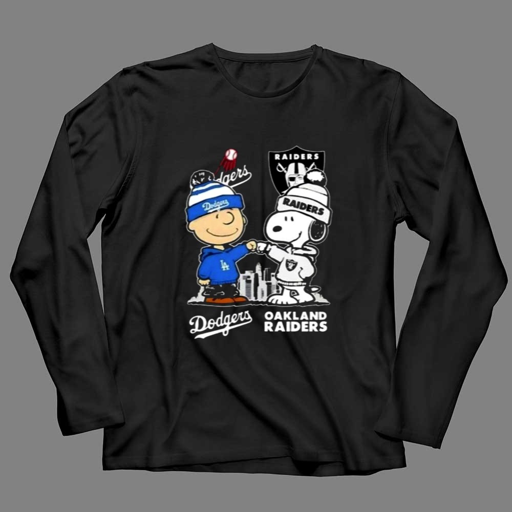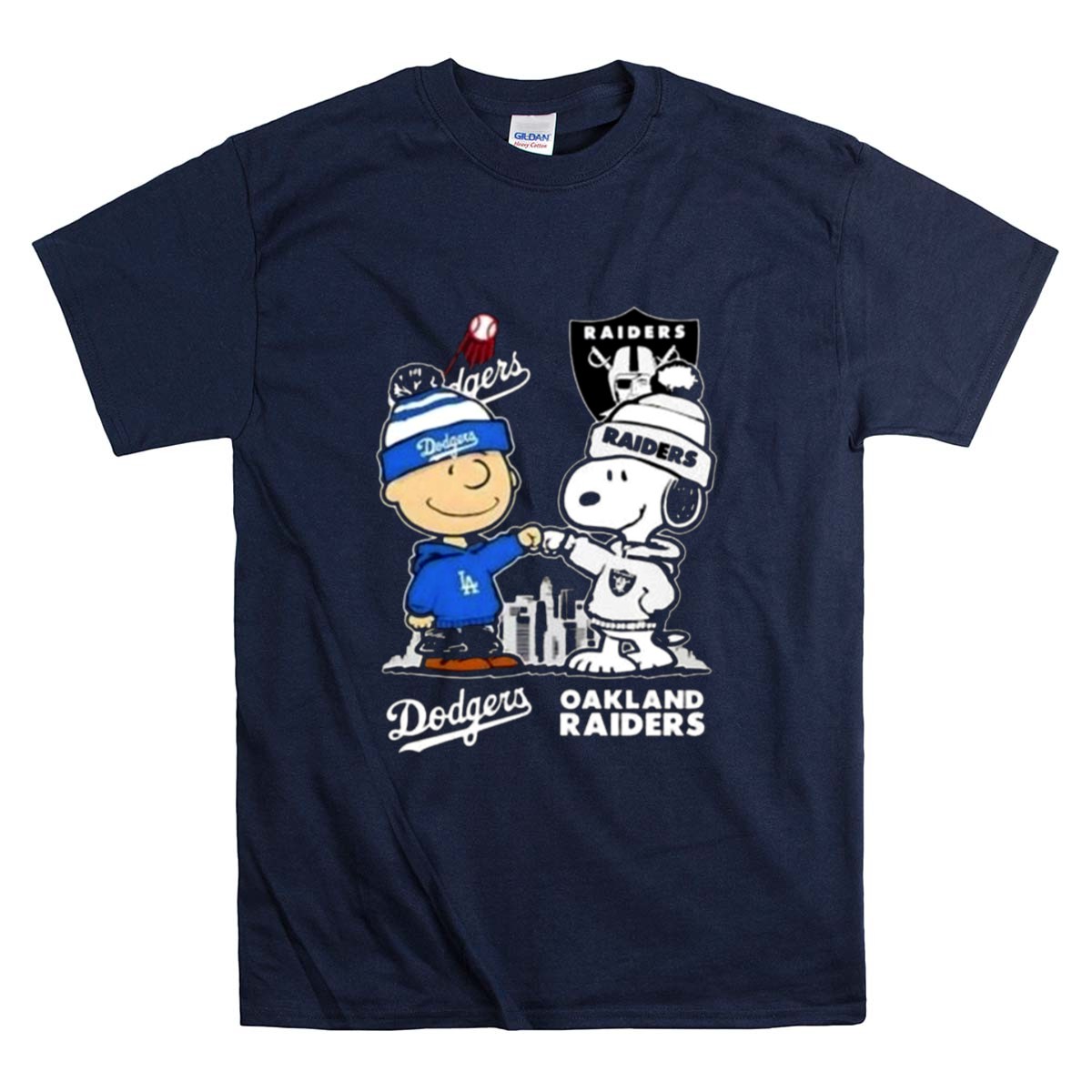 Mashup Snoopy And Charlie Brown Los Angeles Dodgers X Las Vegas Raiders Skyline Shirt