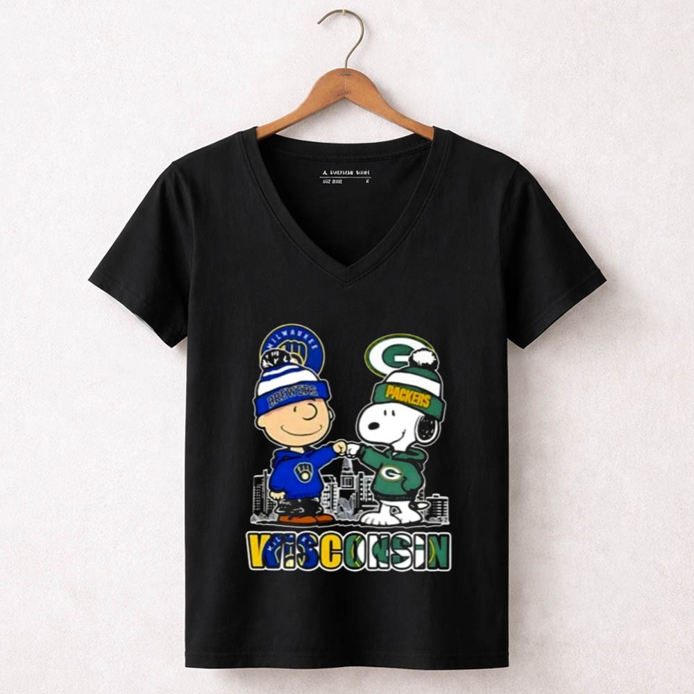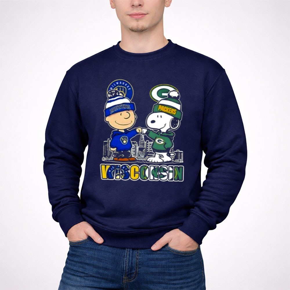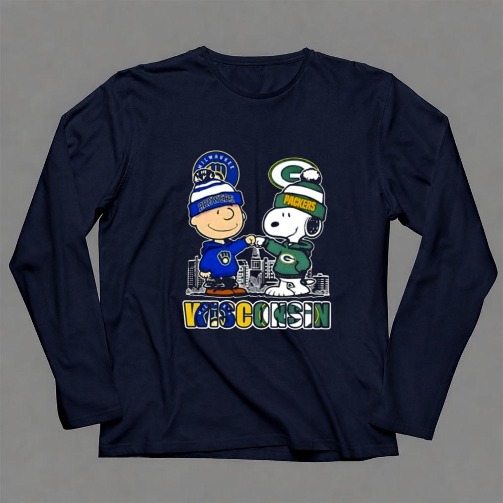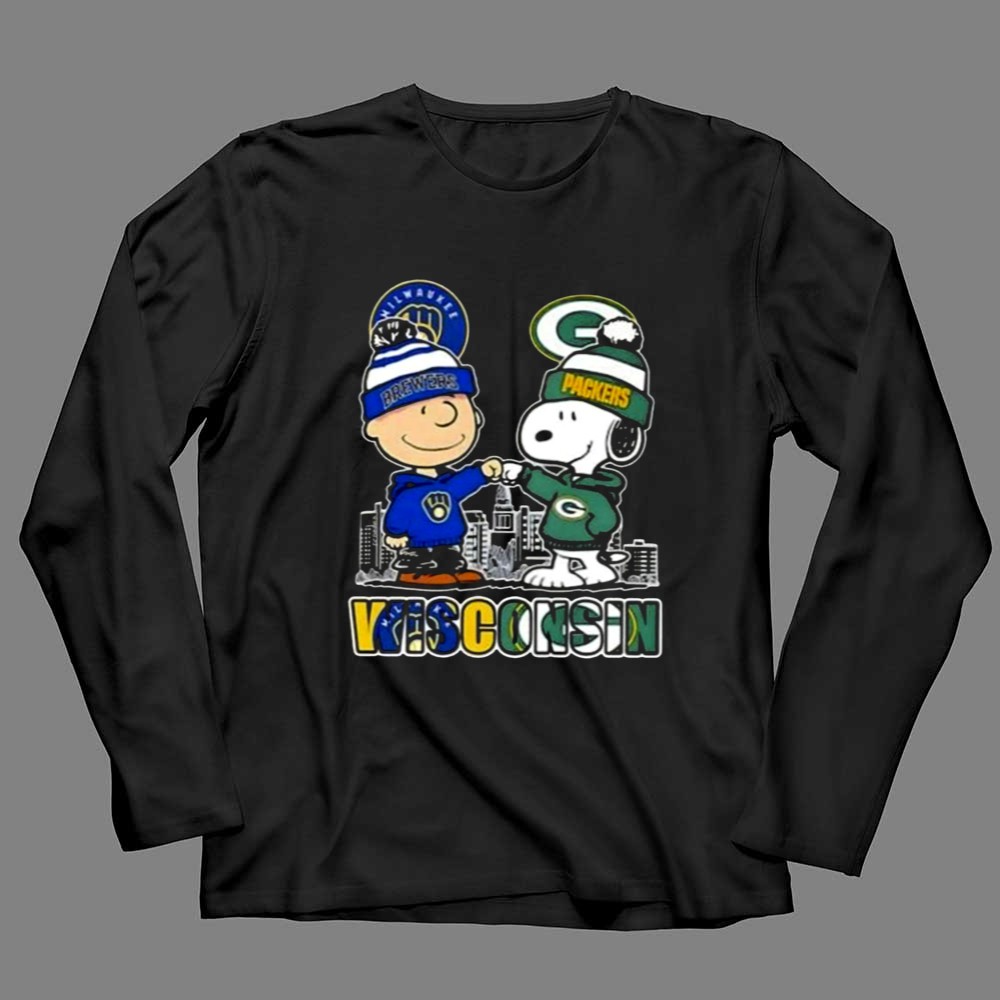Mashup Snoopy And Charlie Brown Wisconsin Sports Brewers X Packers Skyline Shirt