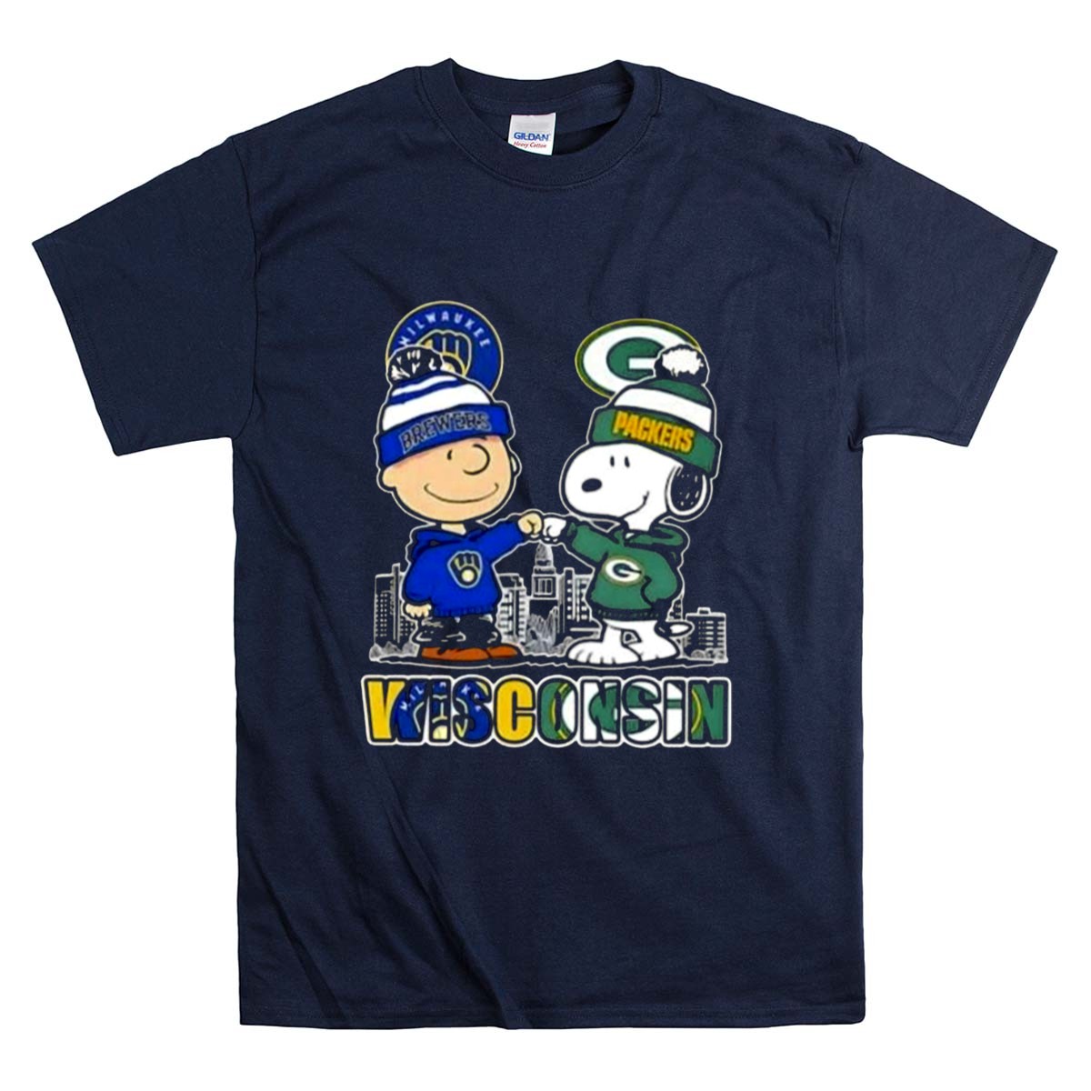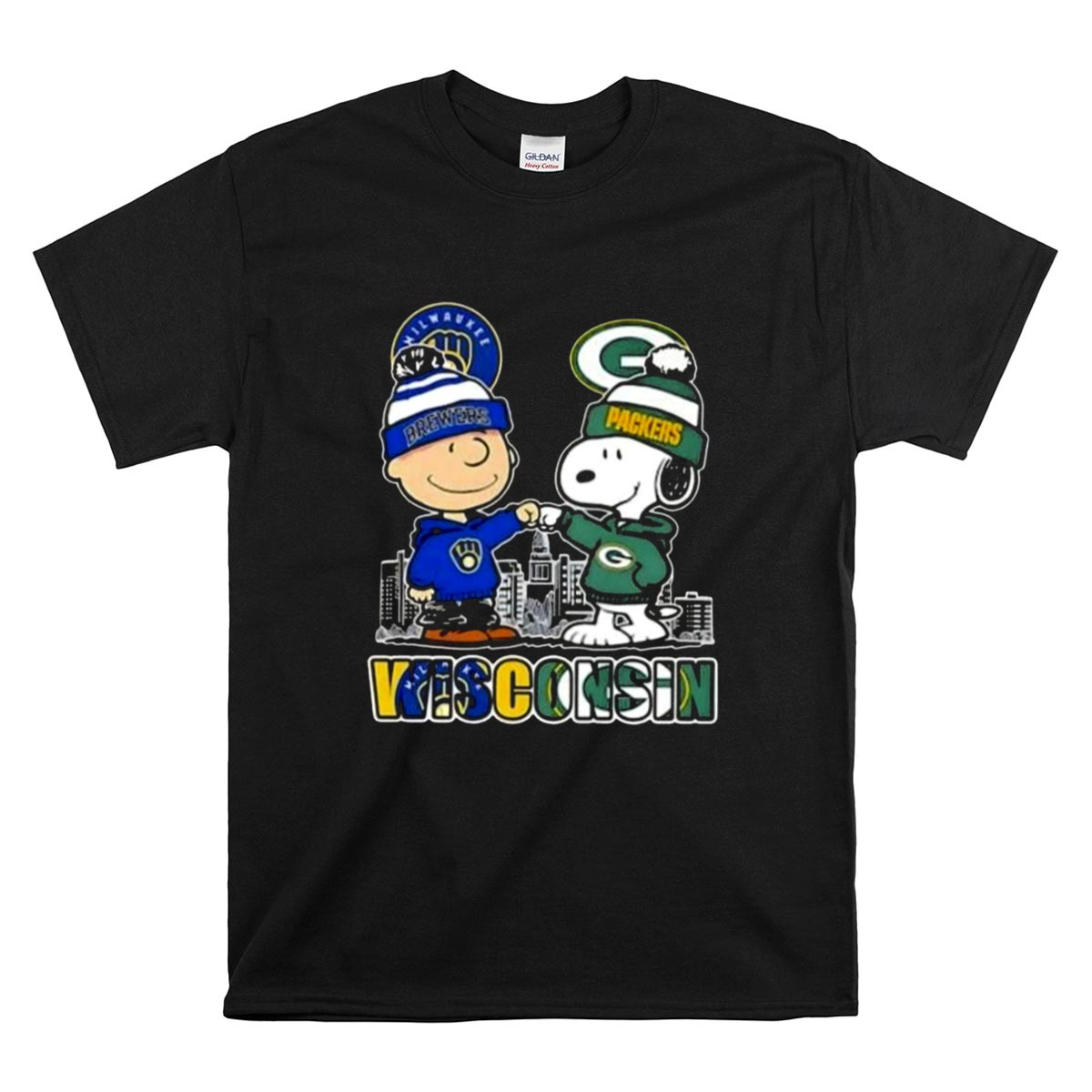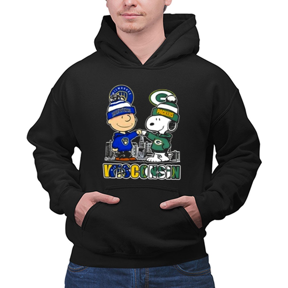 Mashup Snoopy And Charlie Brown Wisconsin Sports Brewers X Packers Skyline Shirt