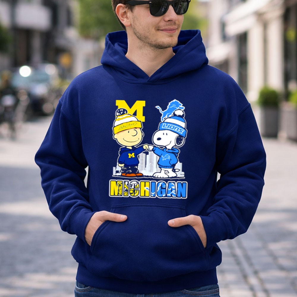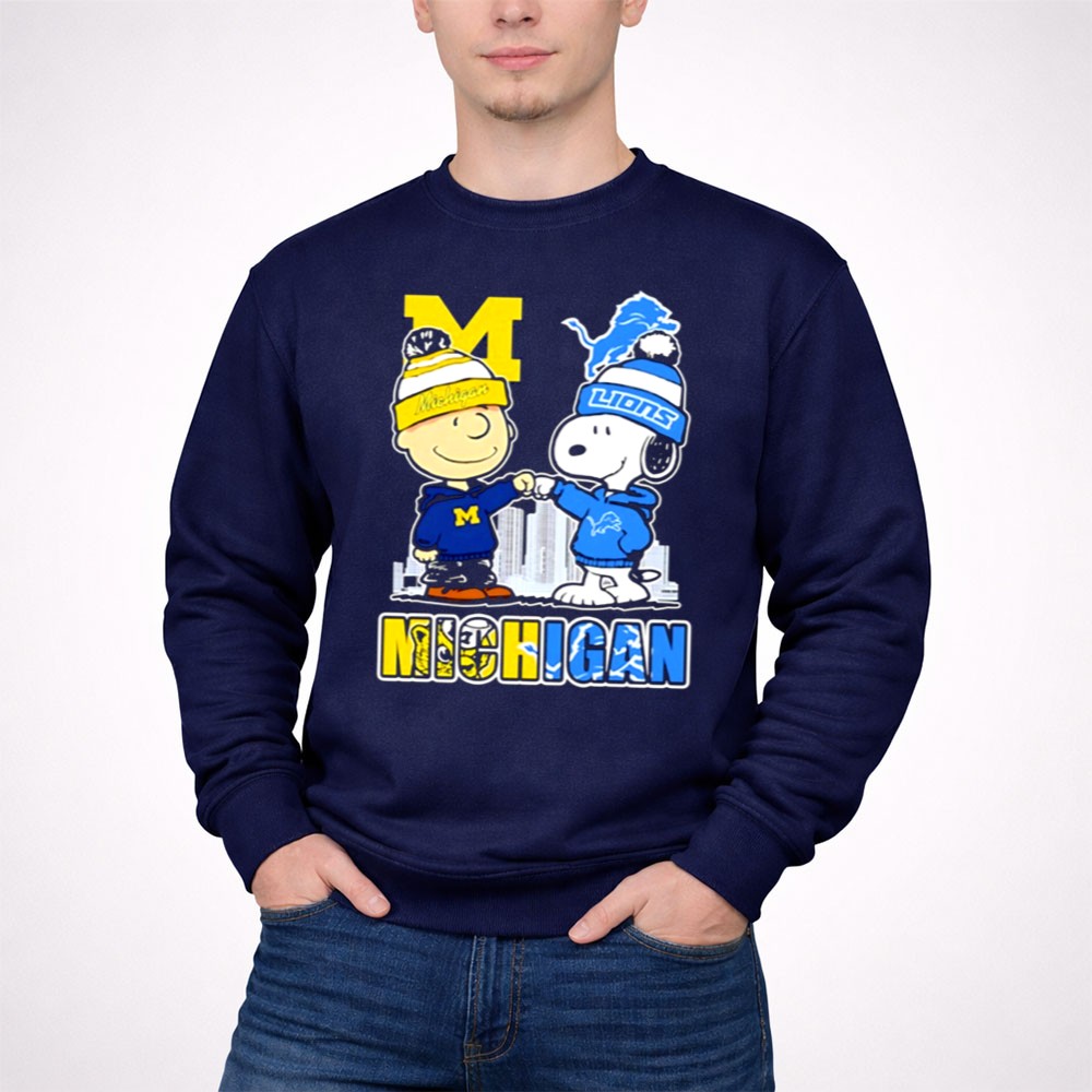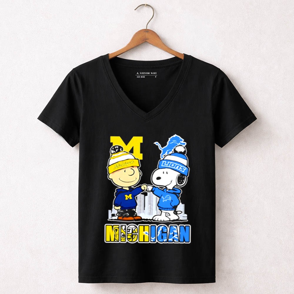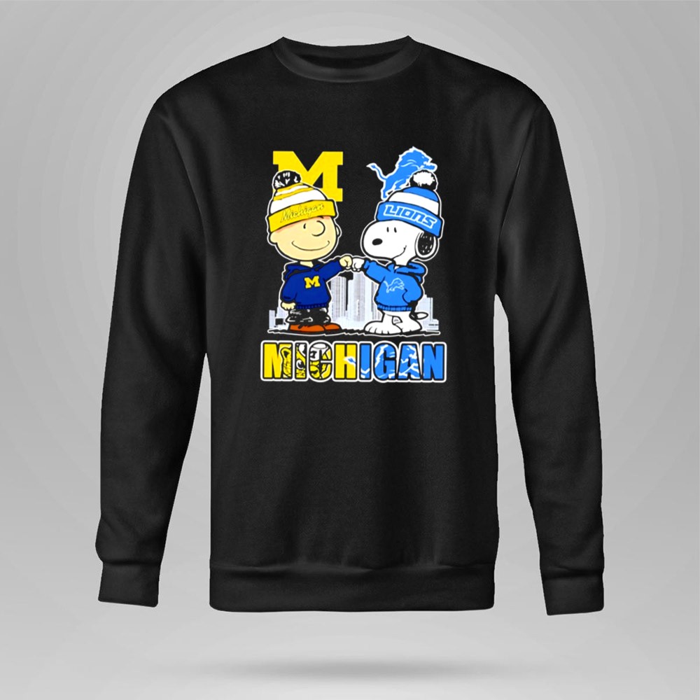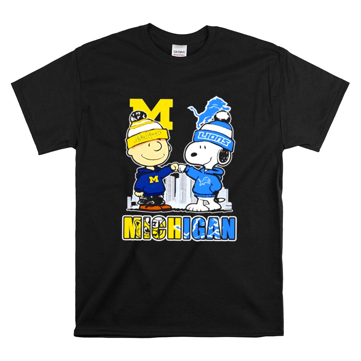 Mashup Snoopy and Charlie Brown x Michigan sports Lions and Wolverines Shirt