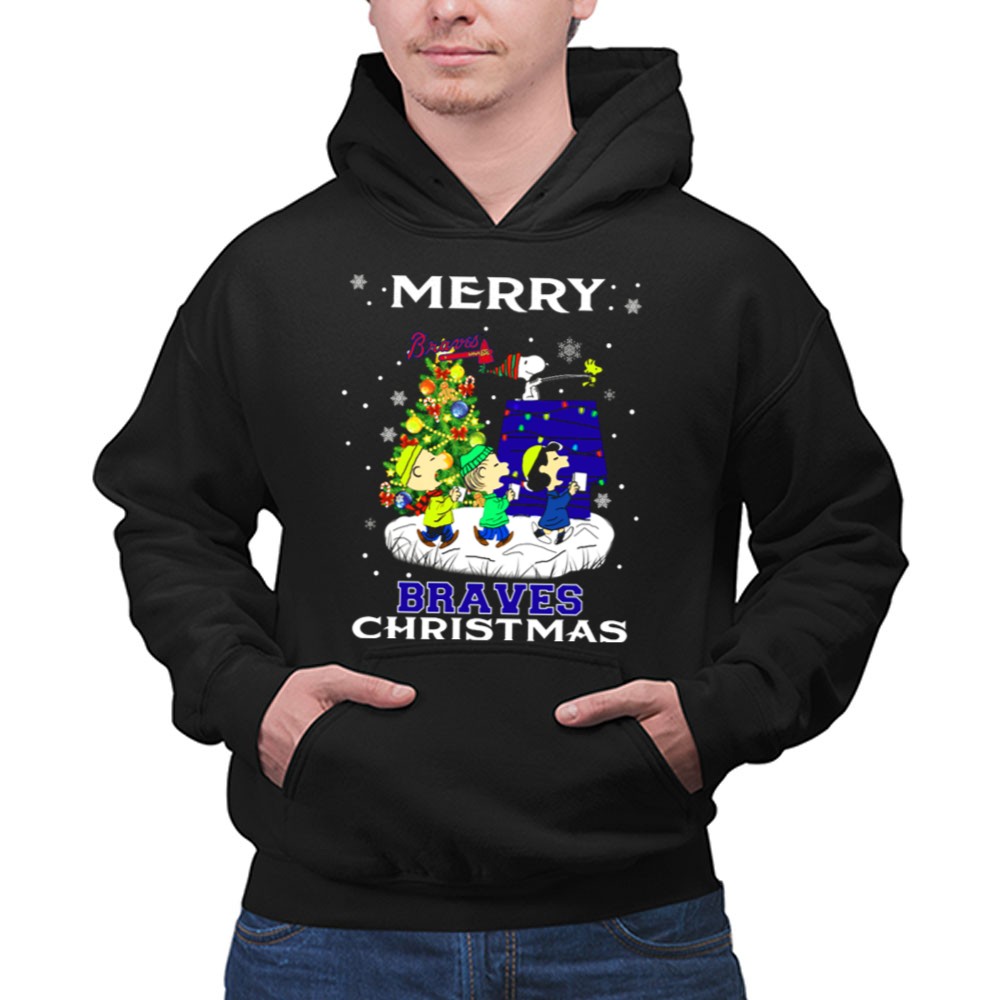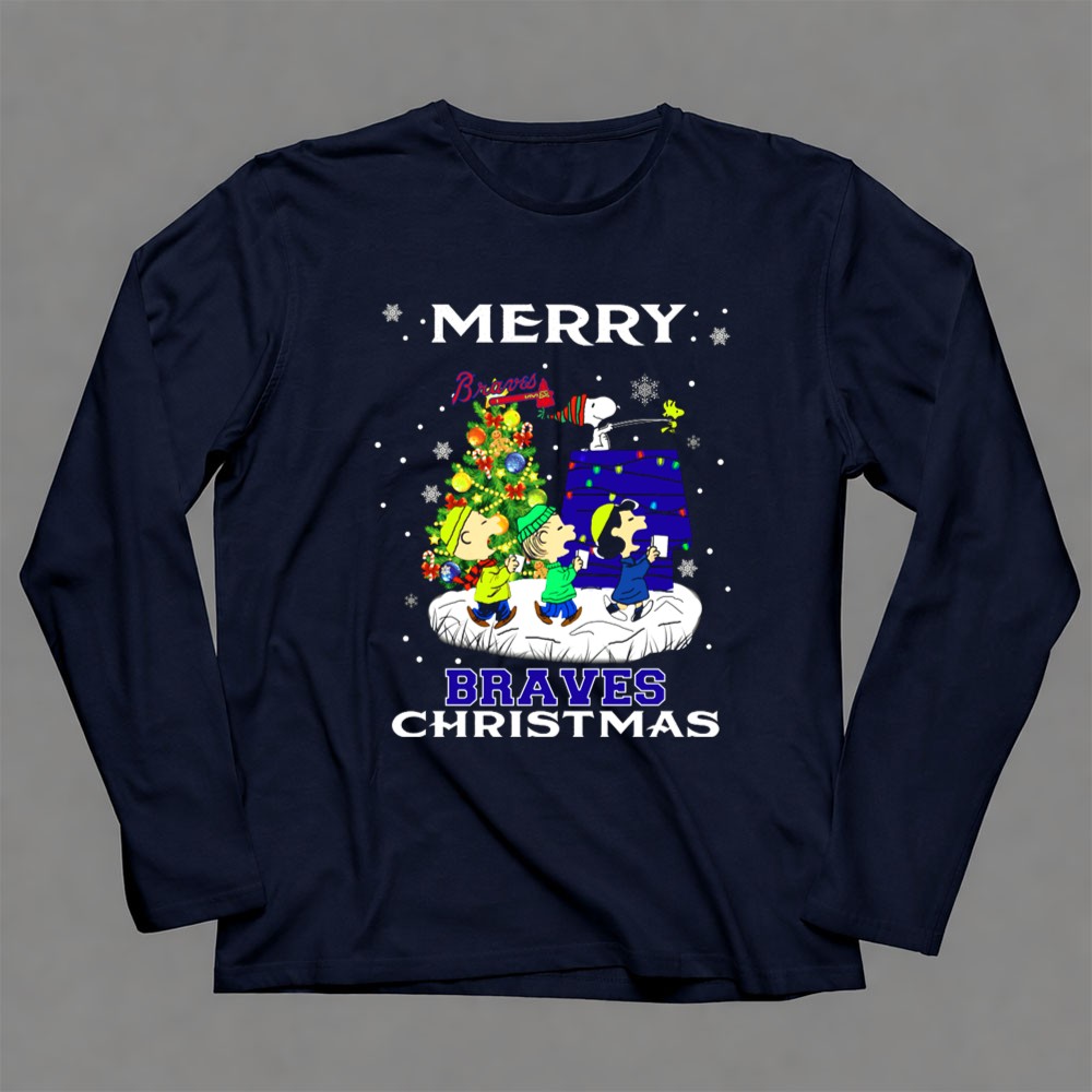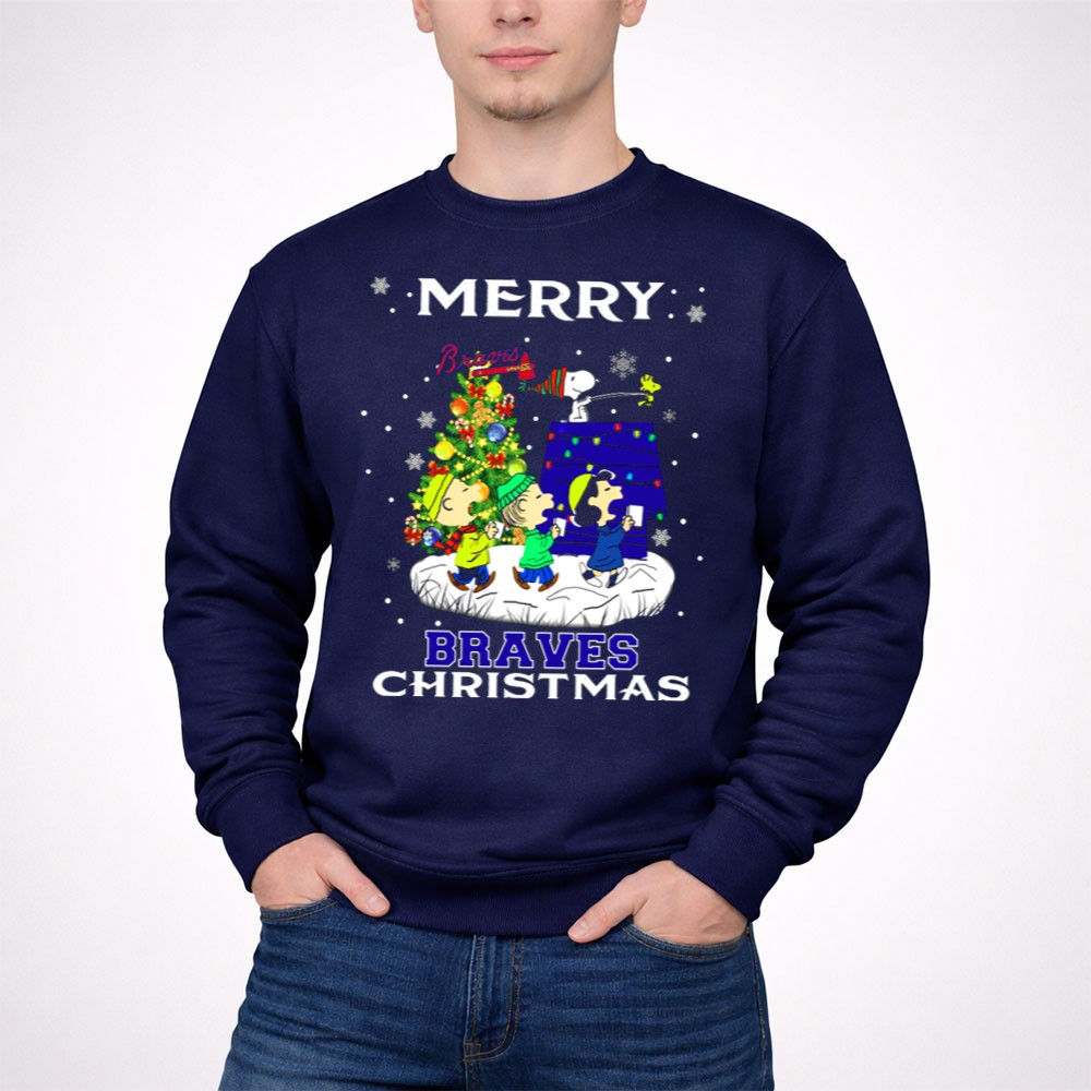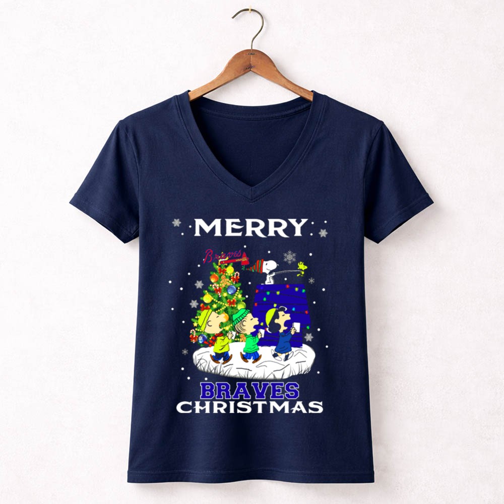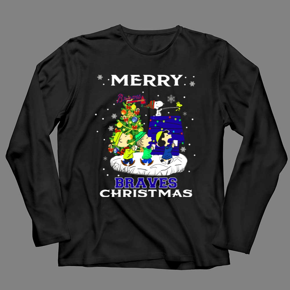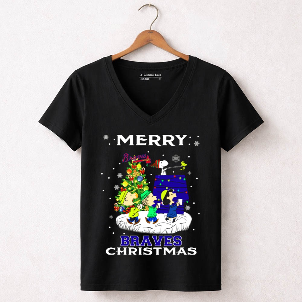 Merry Braves Christmas Featuring Snoopy And Peanuts Characters With Atlanta Braves Shirt