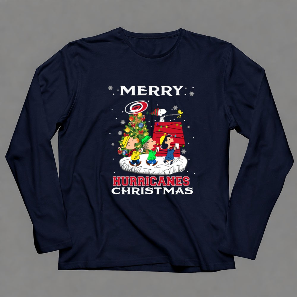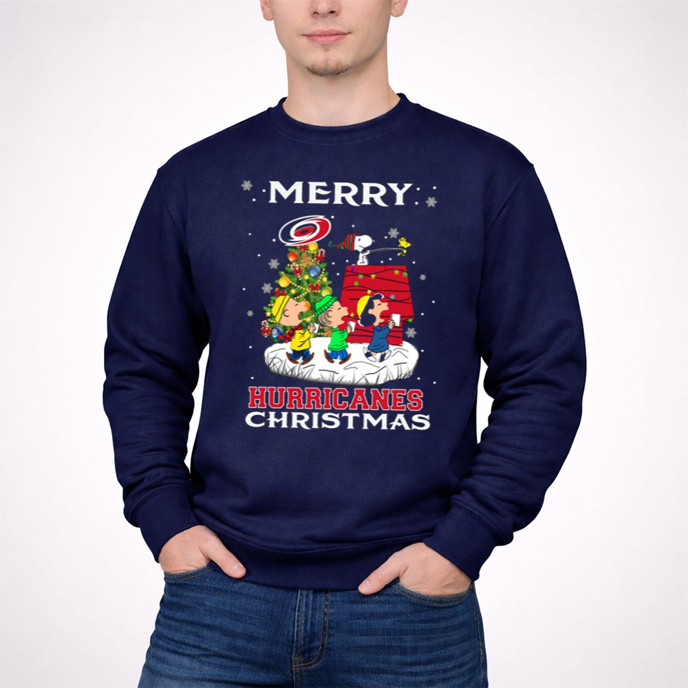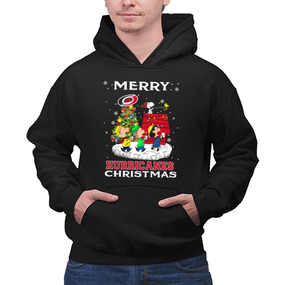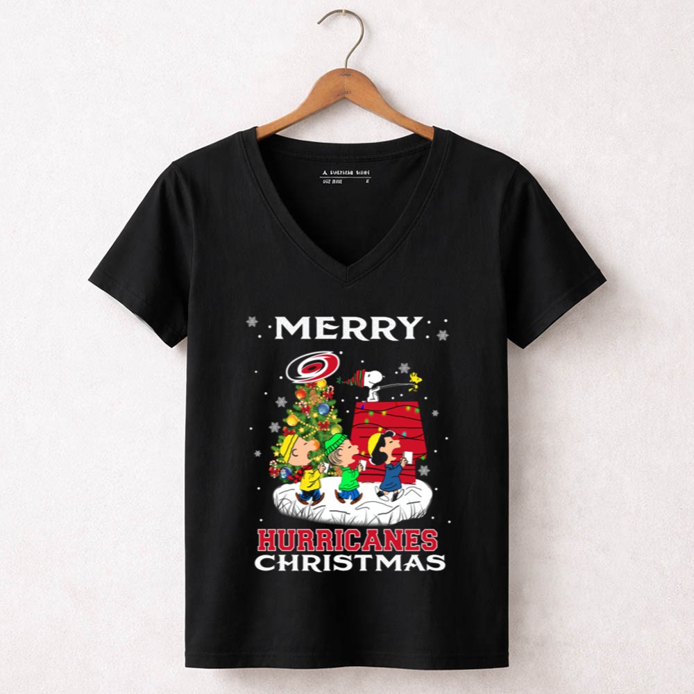 Merry Carolina Hurricanes Christmas Snoopy Peanuts Characters Caroling Winter Scene Shirt
