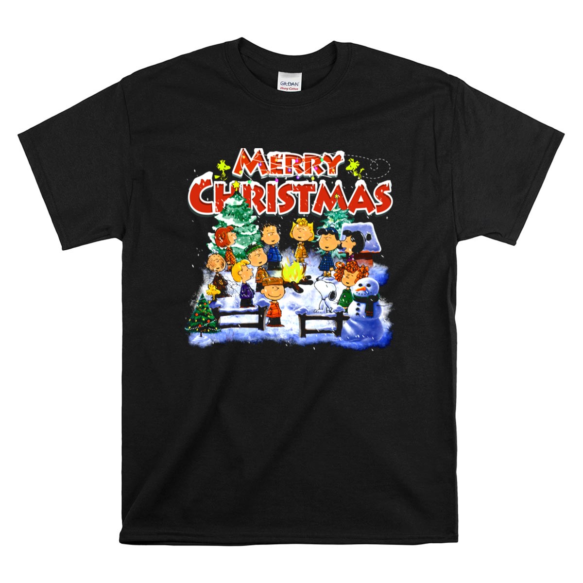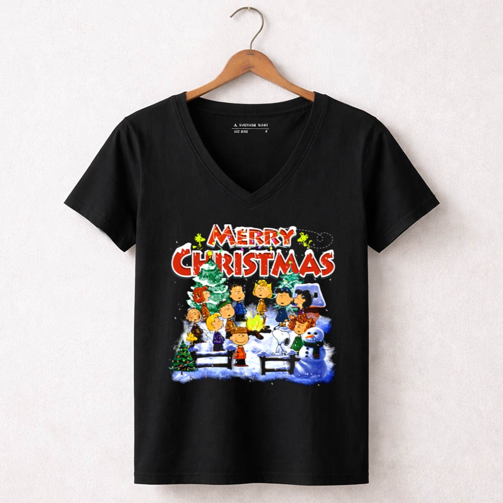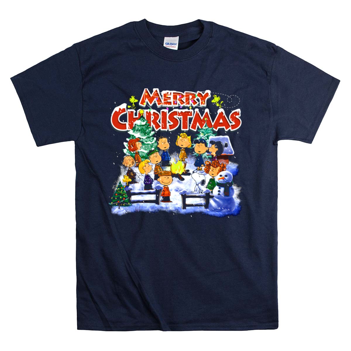 MERRY CHRISTMAS Charlie Brown Snoopy Peanuts Campfire Snowman Shirt