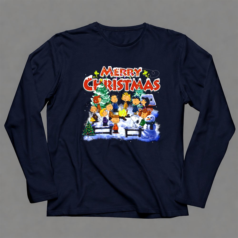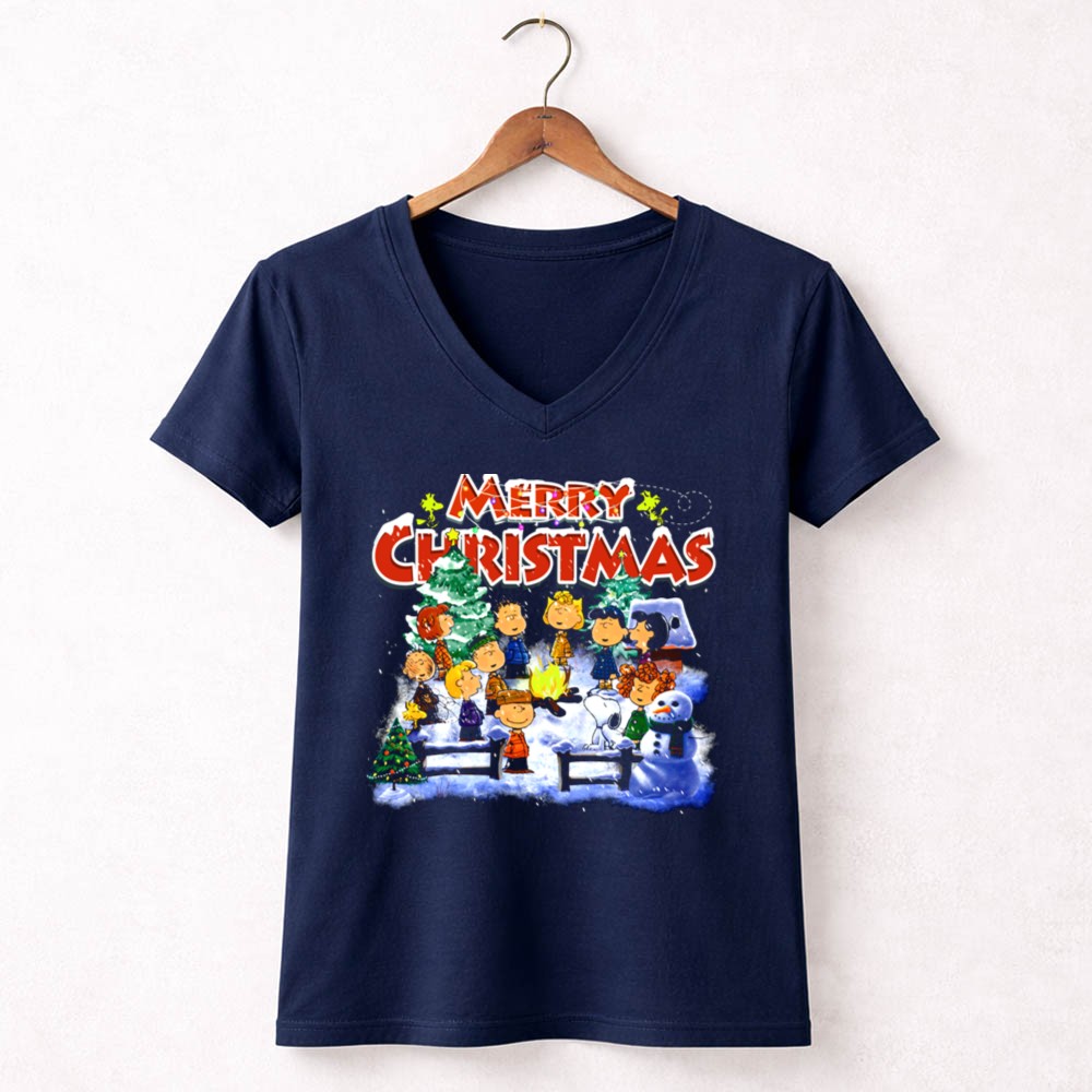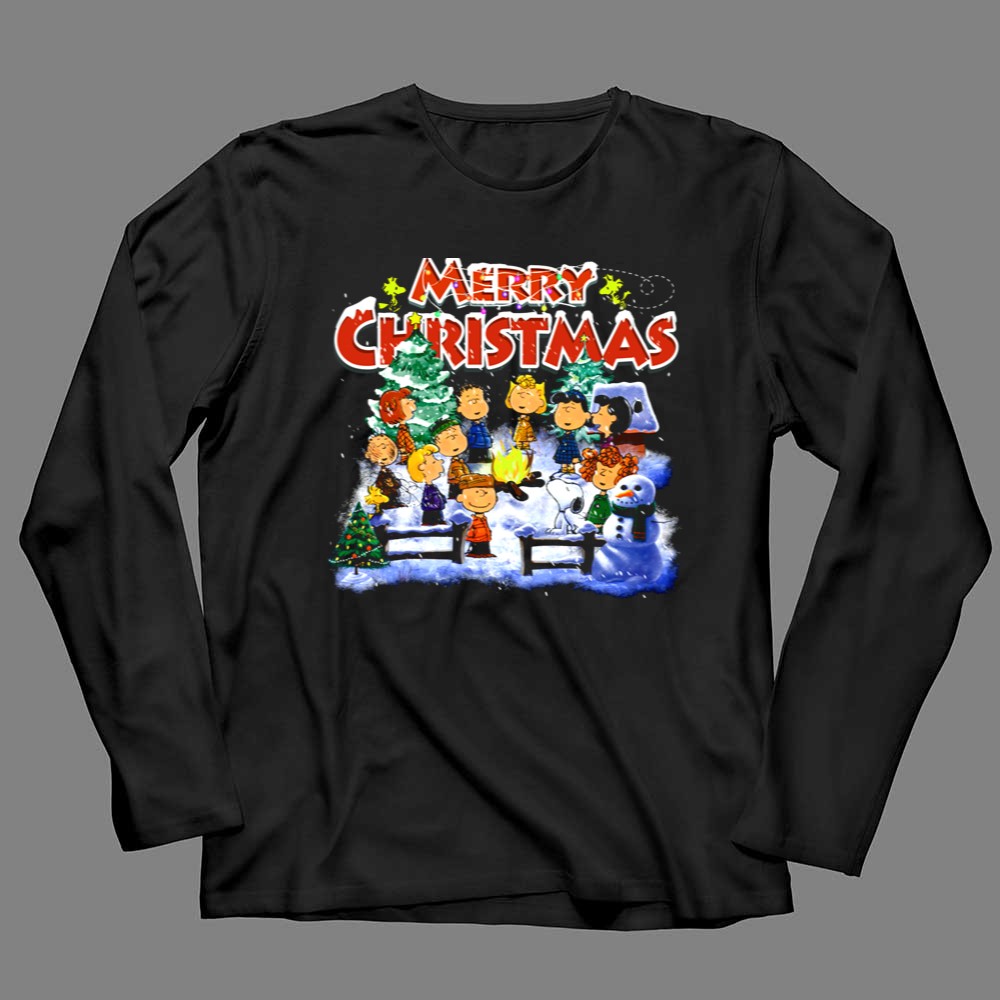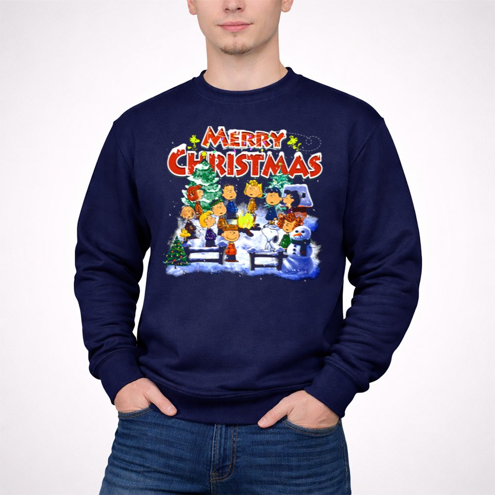 MERRY CHRISTMAS Charlie Brown Snoopy Peanuts Campfire Snowman Shirt