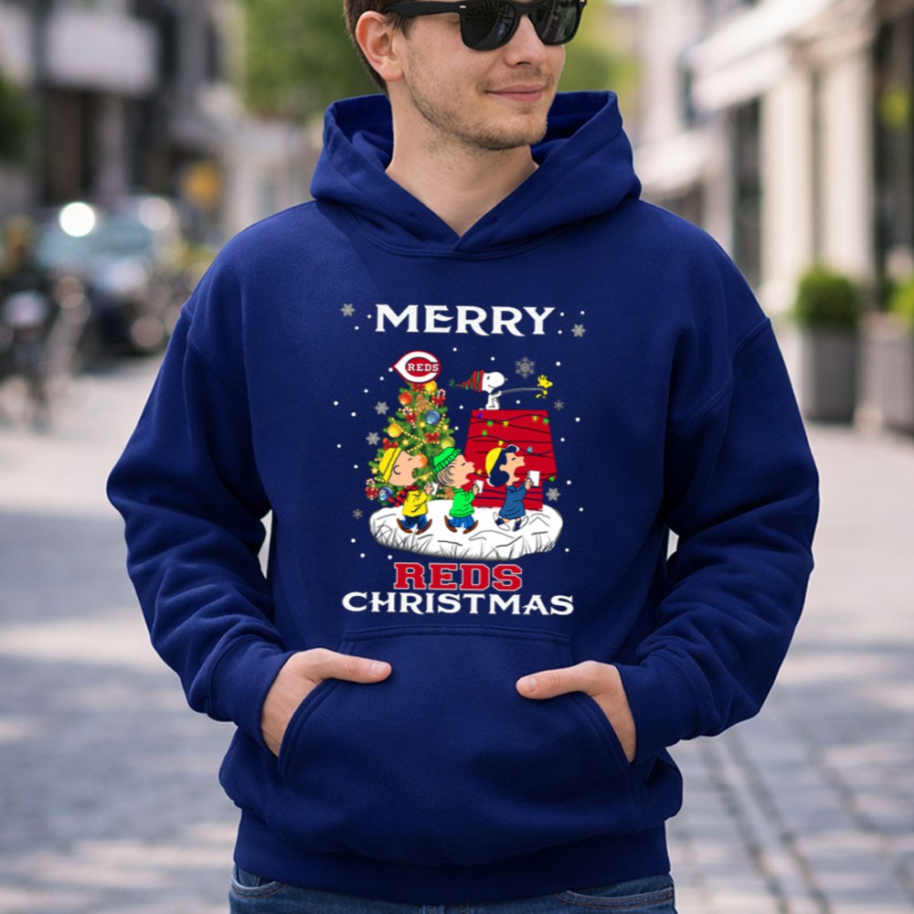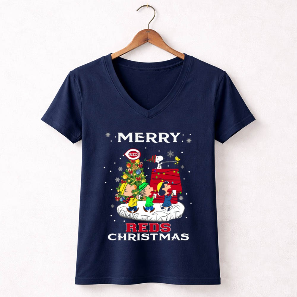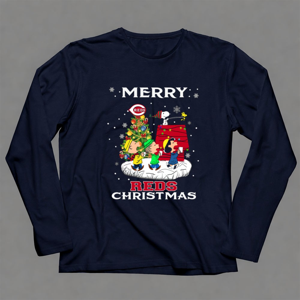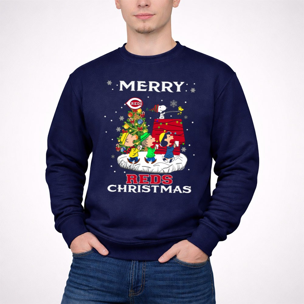 Merry Cincinnati Reds Christmas Featuring Snoopy And Peanuts Characters Shirt