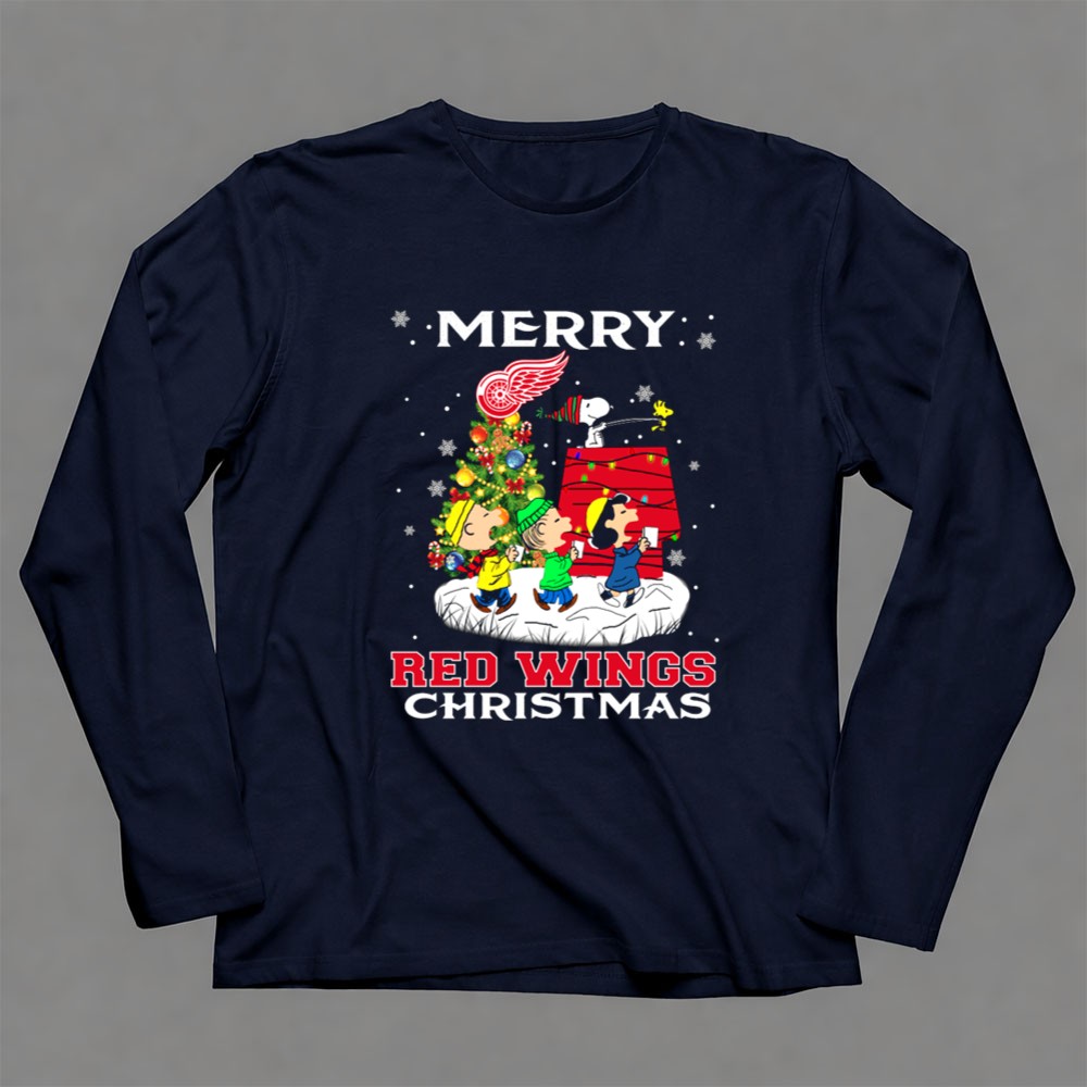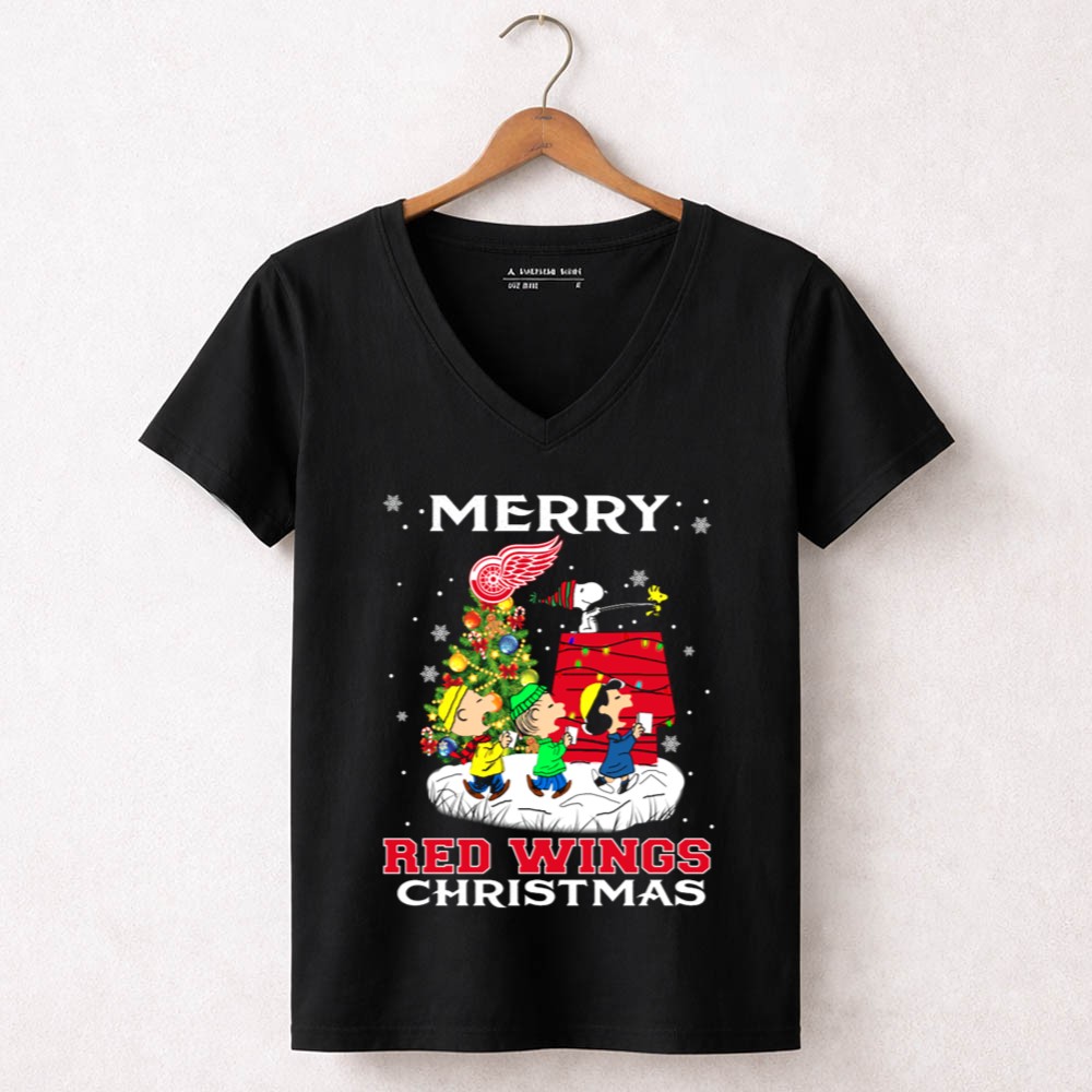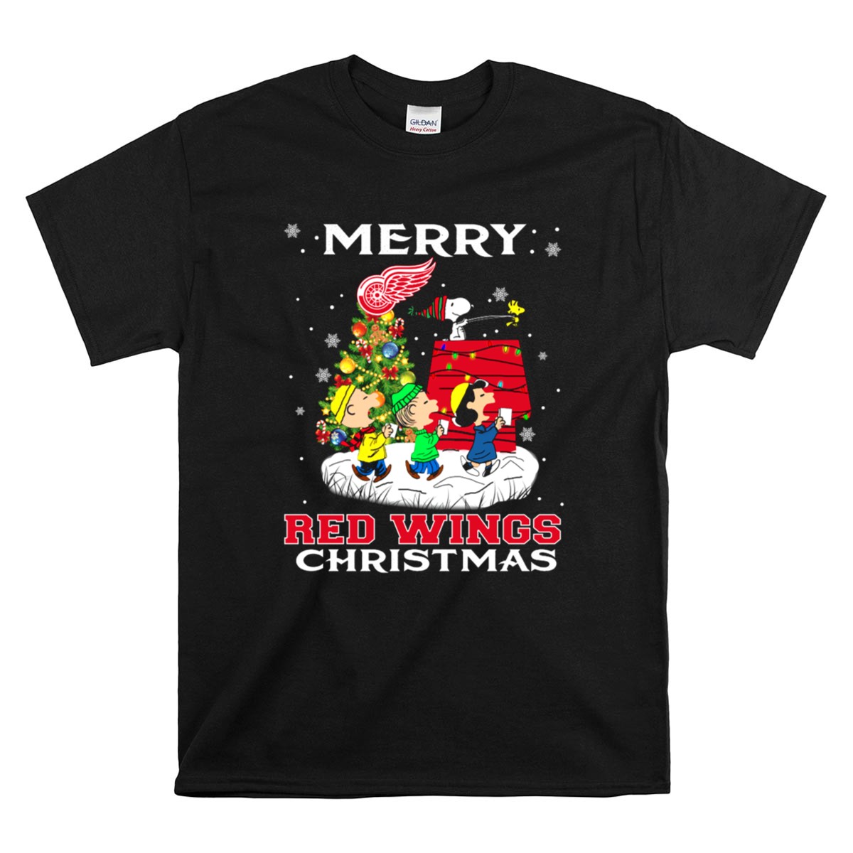 Merry Detroit Red Wings Christmas Featuring Snoopy And Peanuts Characters Shirt
