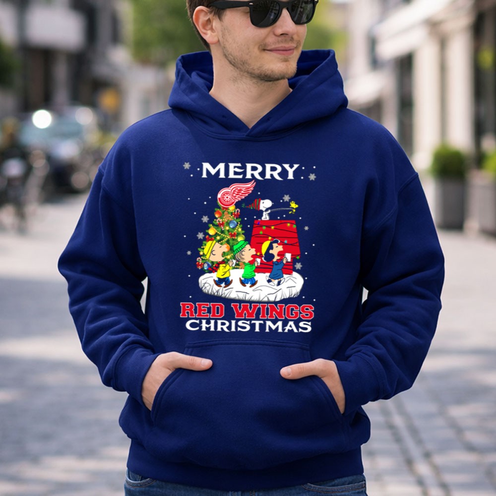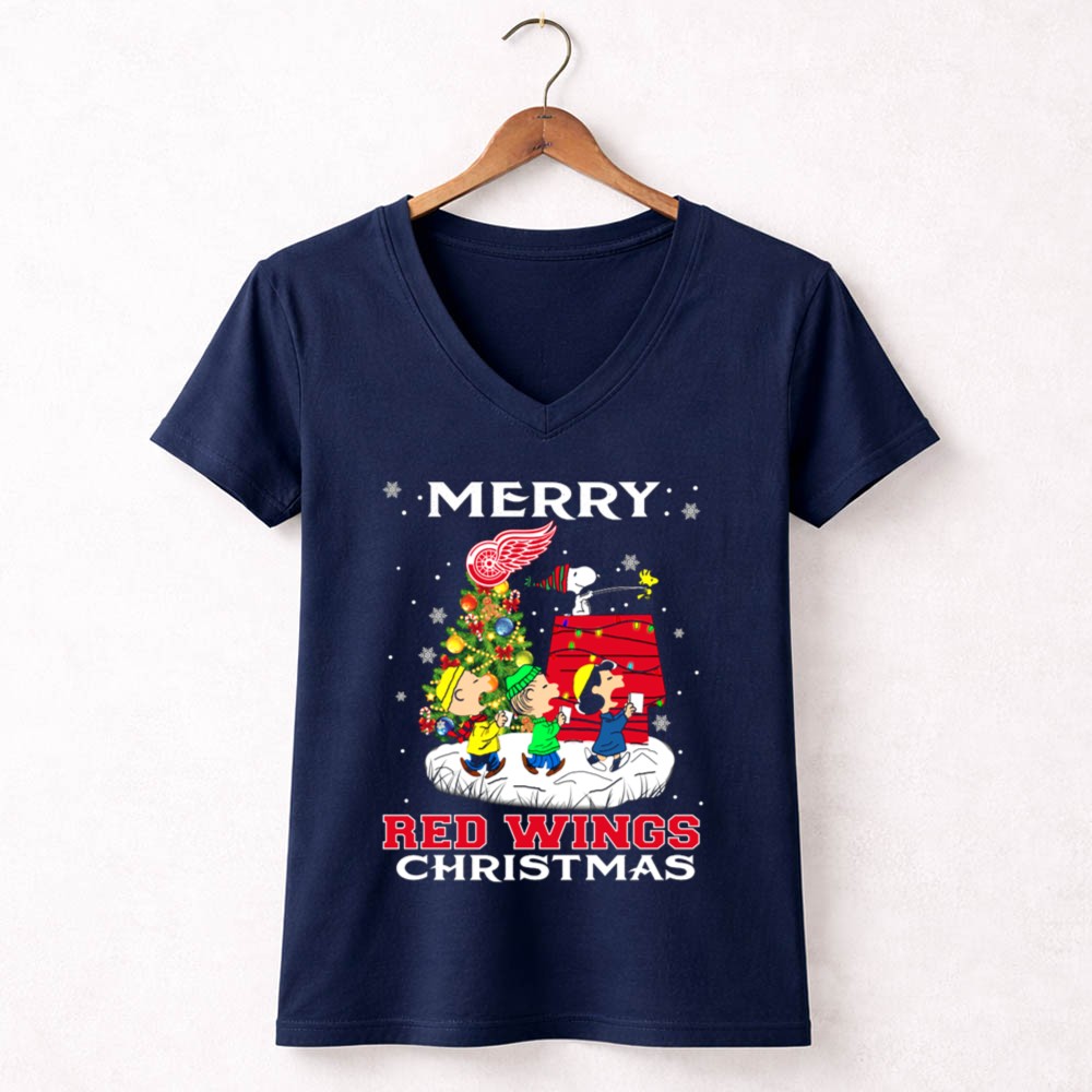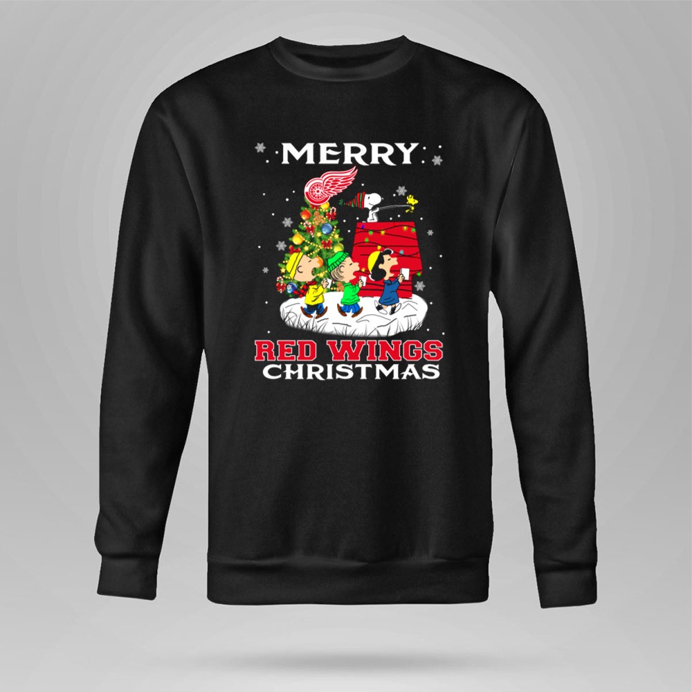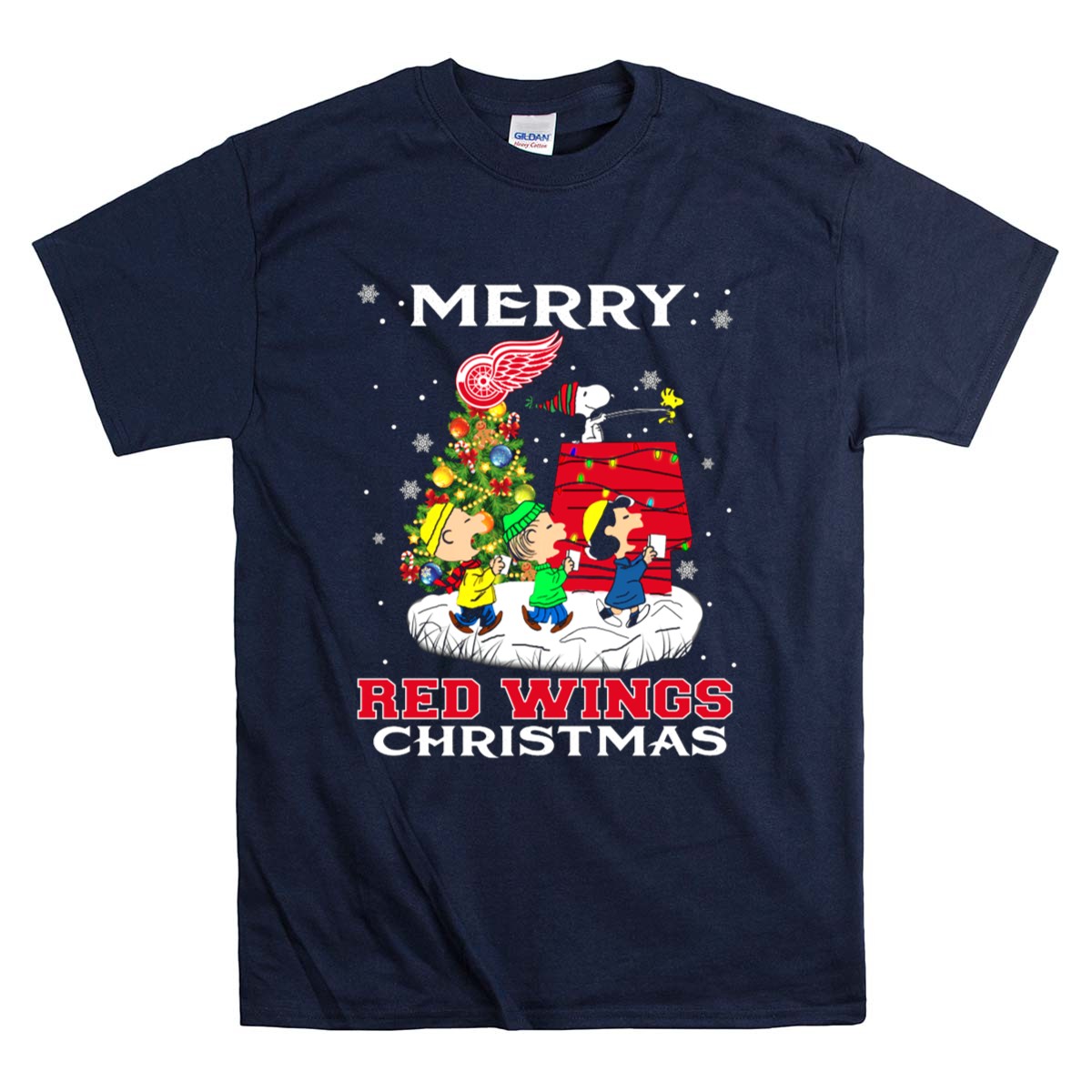 Merry Detroit Red Wings Christmas Featuring Snoopy And Peanuts Characters Shirt