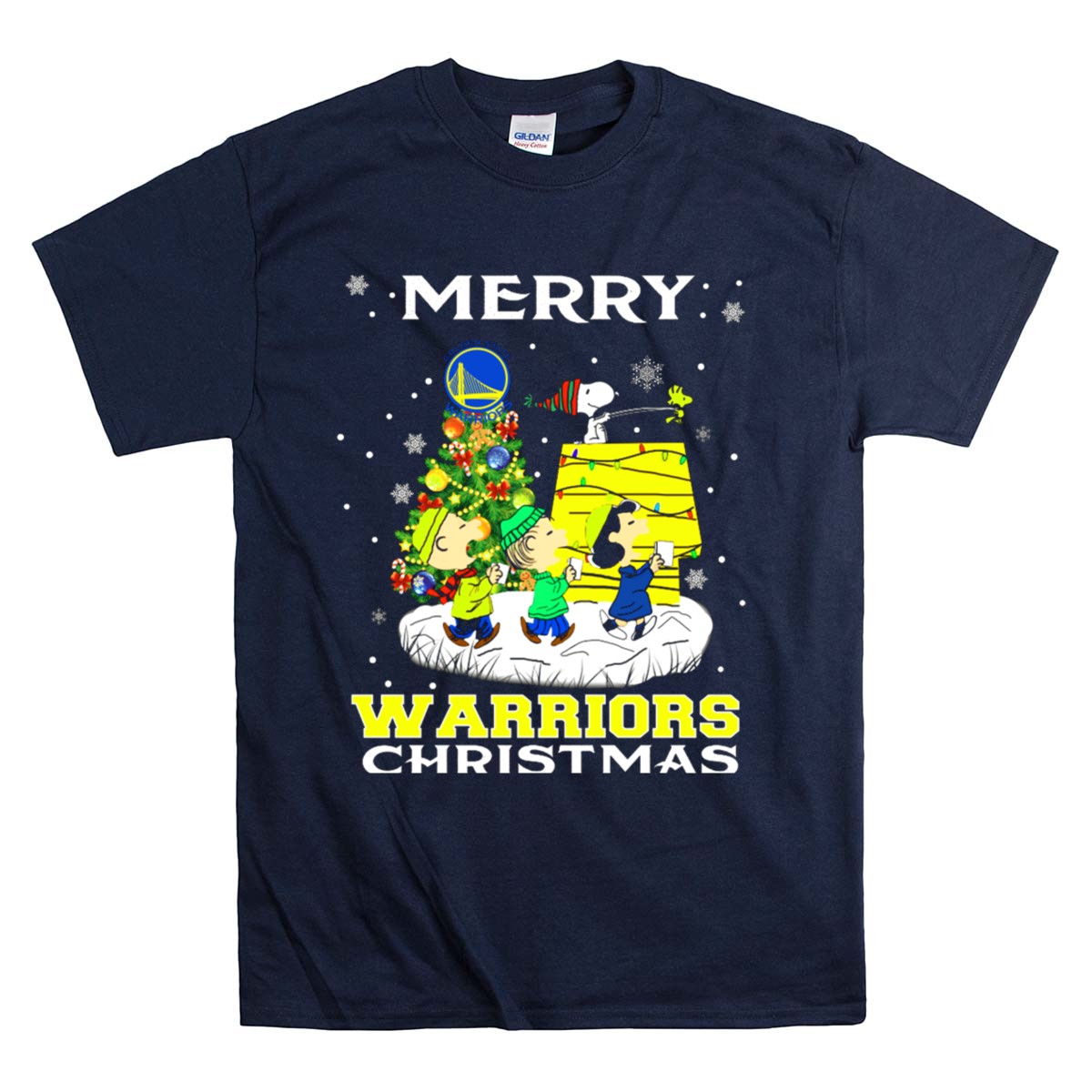 Merry Golden State Warriors Christmas Snoopy Charlie Brown Tree Shirt