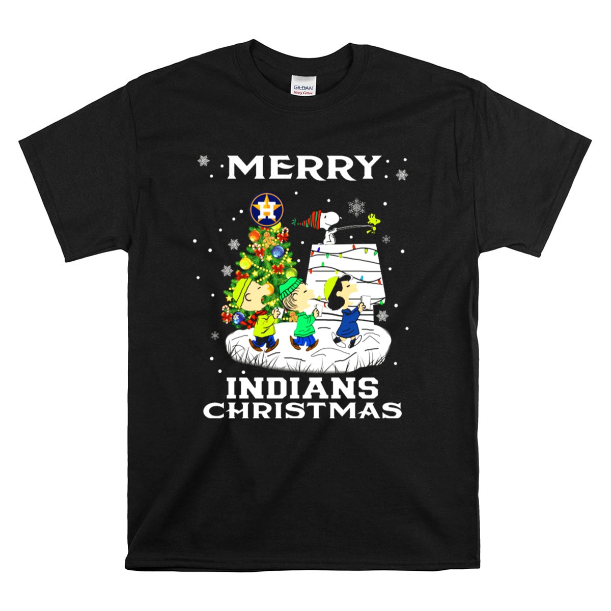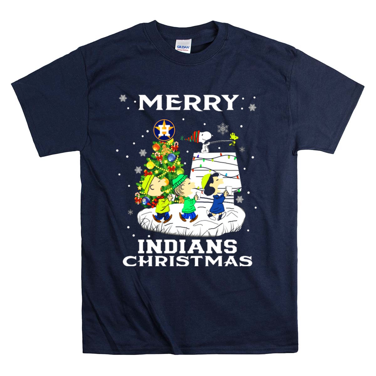 Merry Houston Astros Indians Christmas For Snoopy Fans Shirt