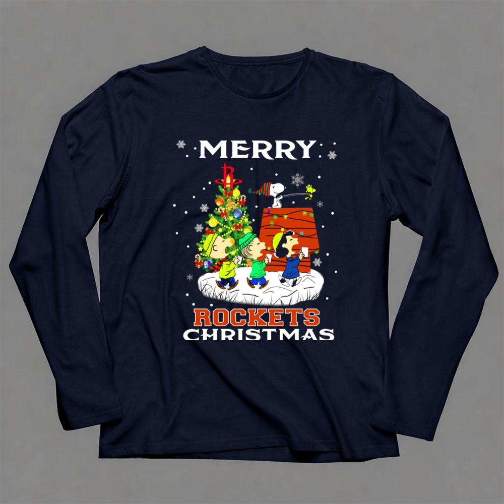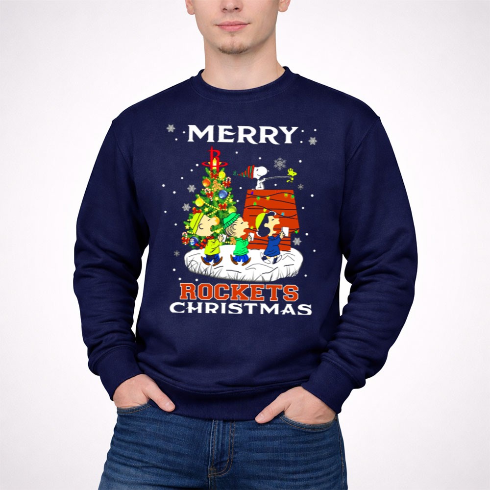 Merry Houston Rockets Christmas Snoopy Friends Peanuts Holiday Tree Shirt