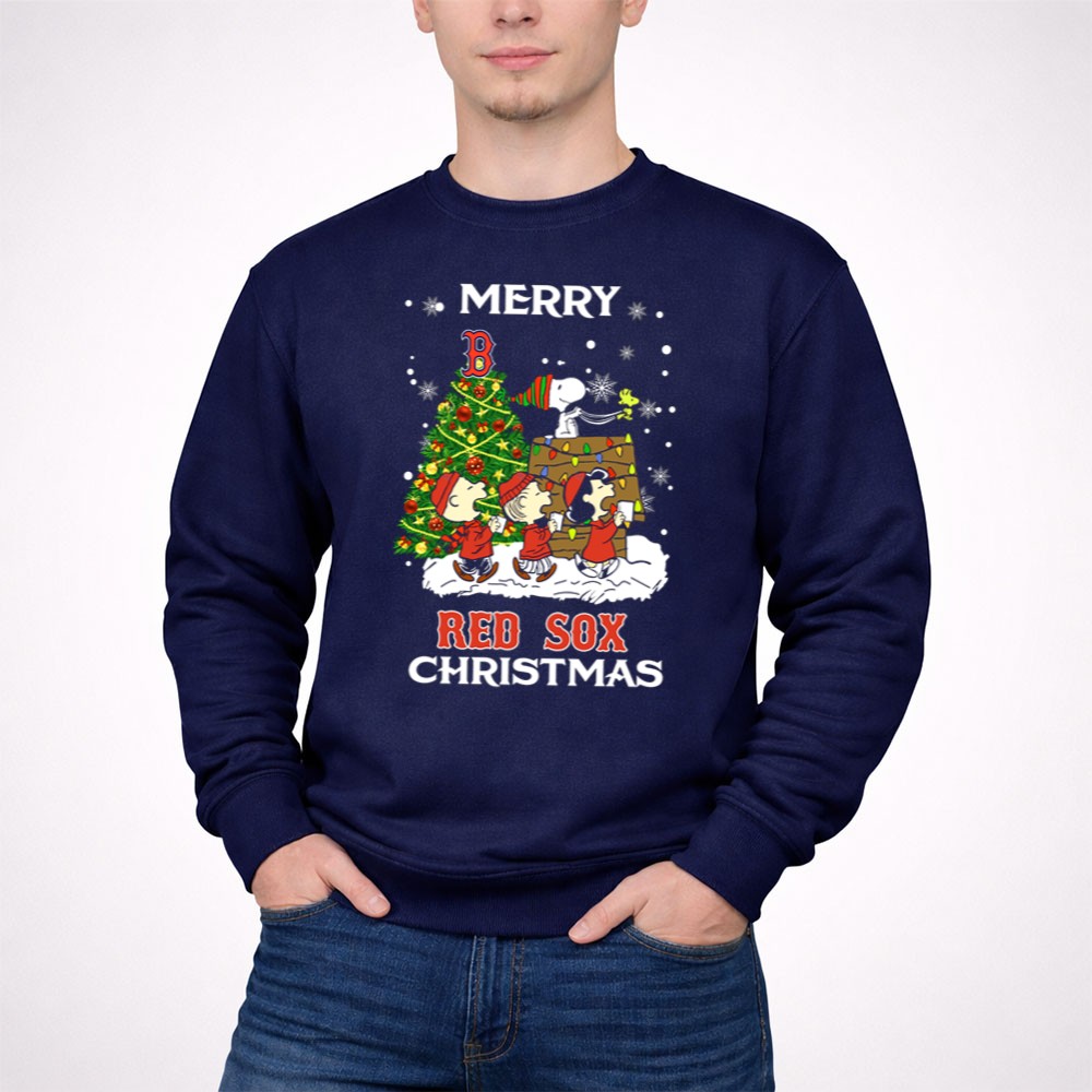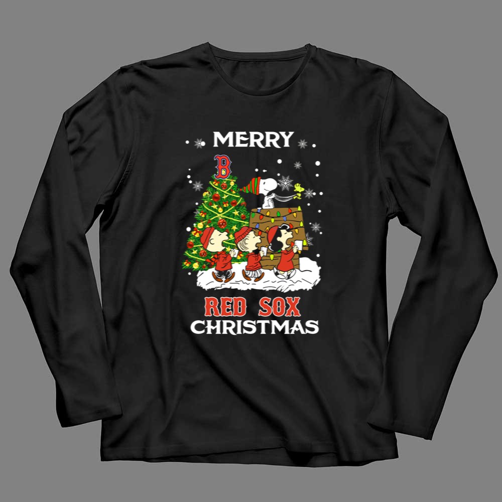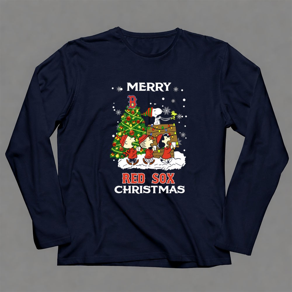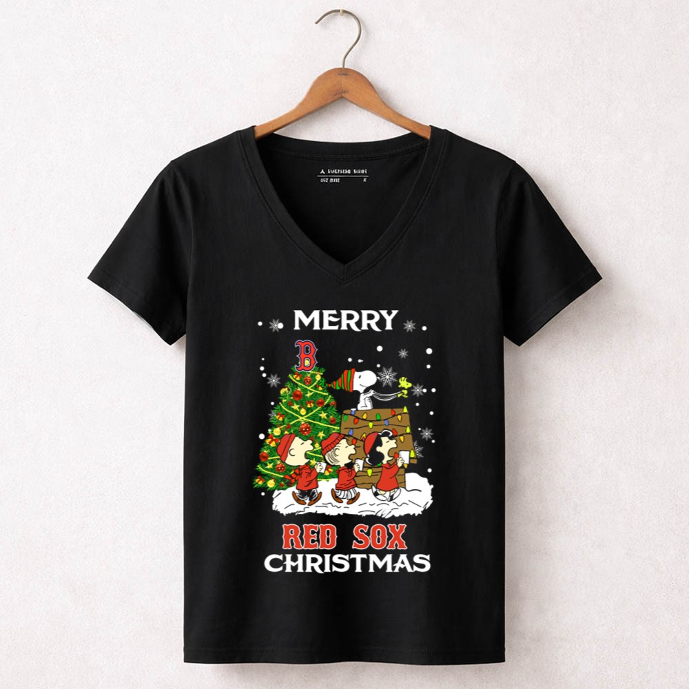 Merry Red Sox Christmas Tree With Snoopy And Friends Shirt