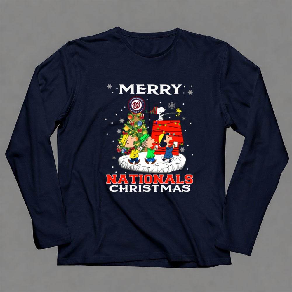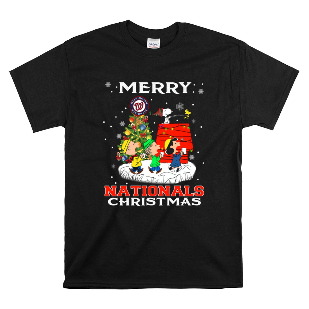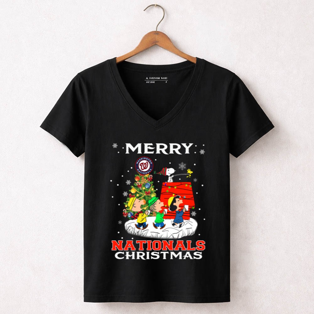 Merry Washington Nationals Christmas Snoopy With Peanuts Characters Decorate Tree Shirt