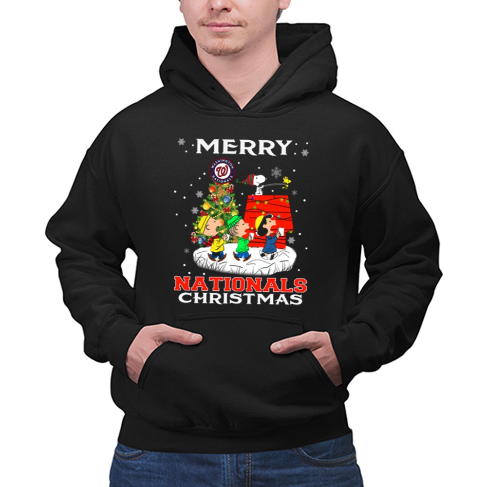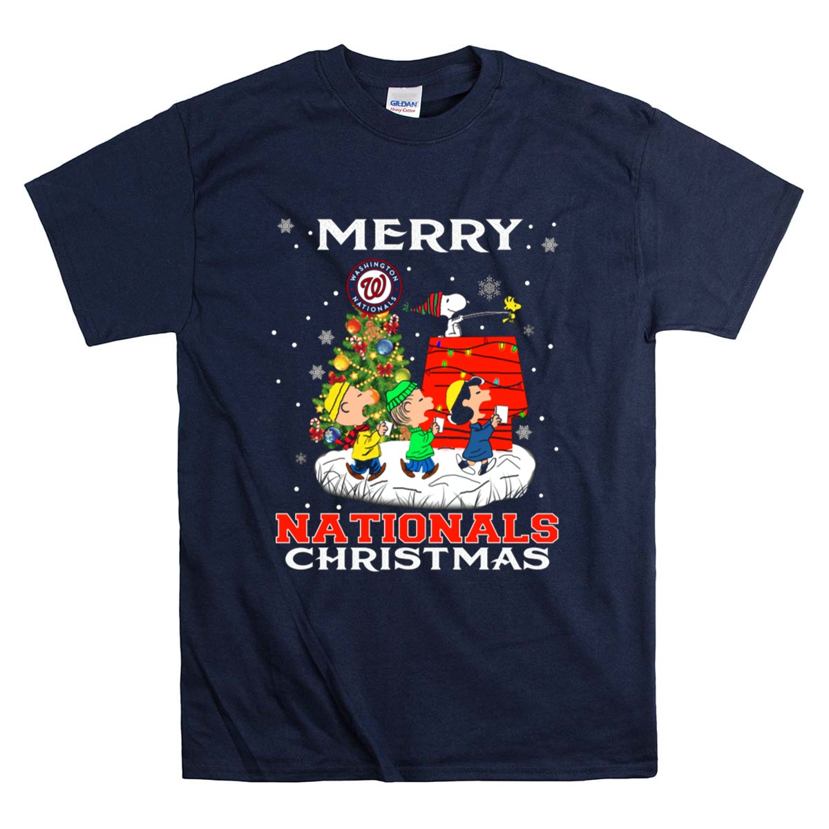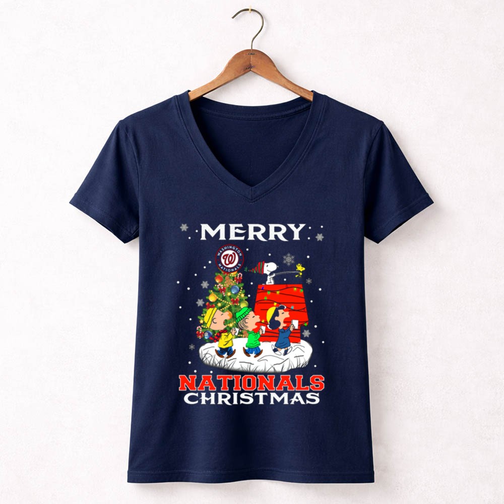 Merry Washington Nationals Christmas Snoopy With Peanuts Characters Decorate Tree Shirt