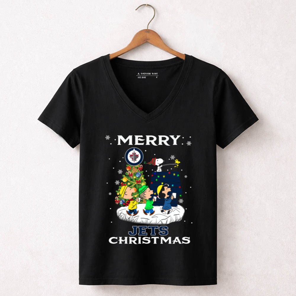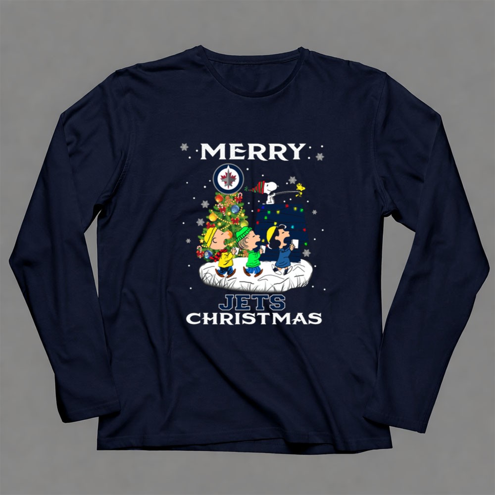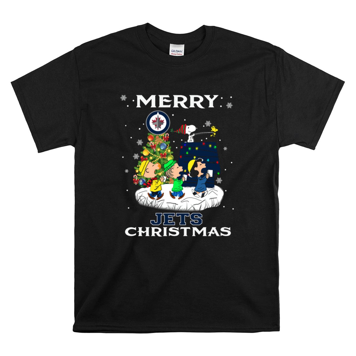 Merry Winnipeg Jets Christmas Featuring Snoopy and Peanuts Holiday Scene Shirt