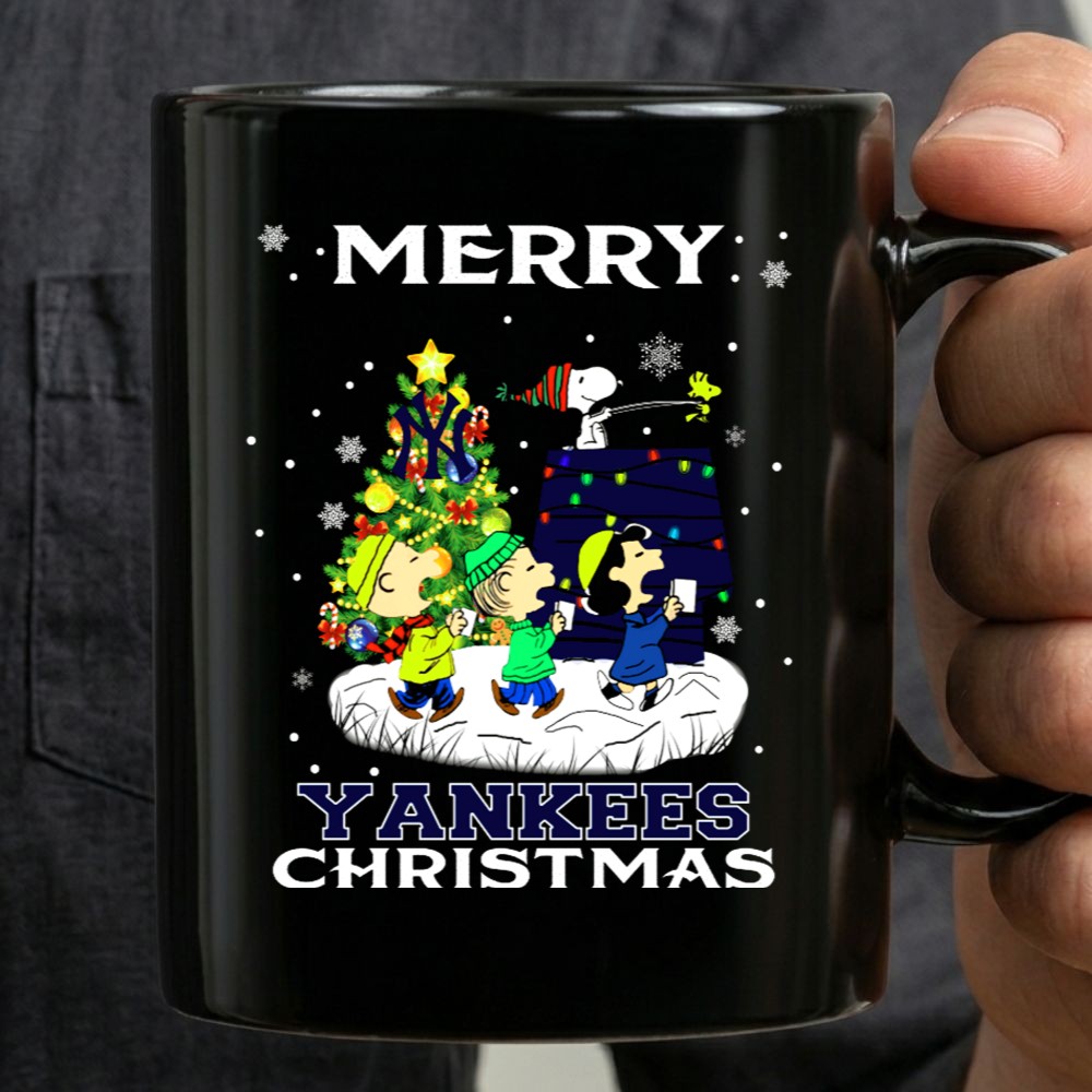 Merry Yankees Christmas Featuring Snoopy and Peanuts Characters Mug