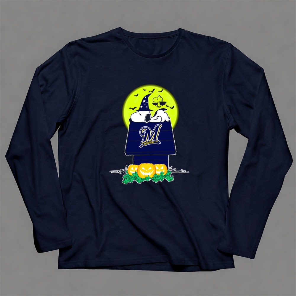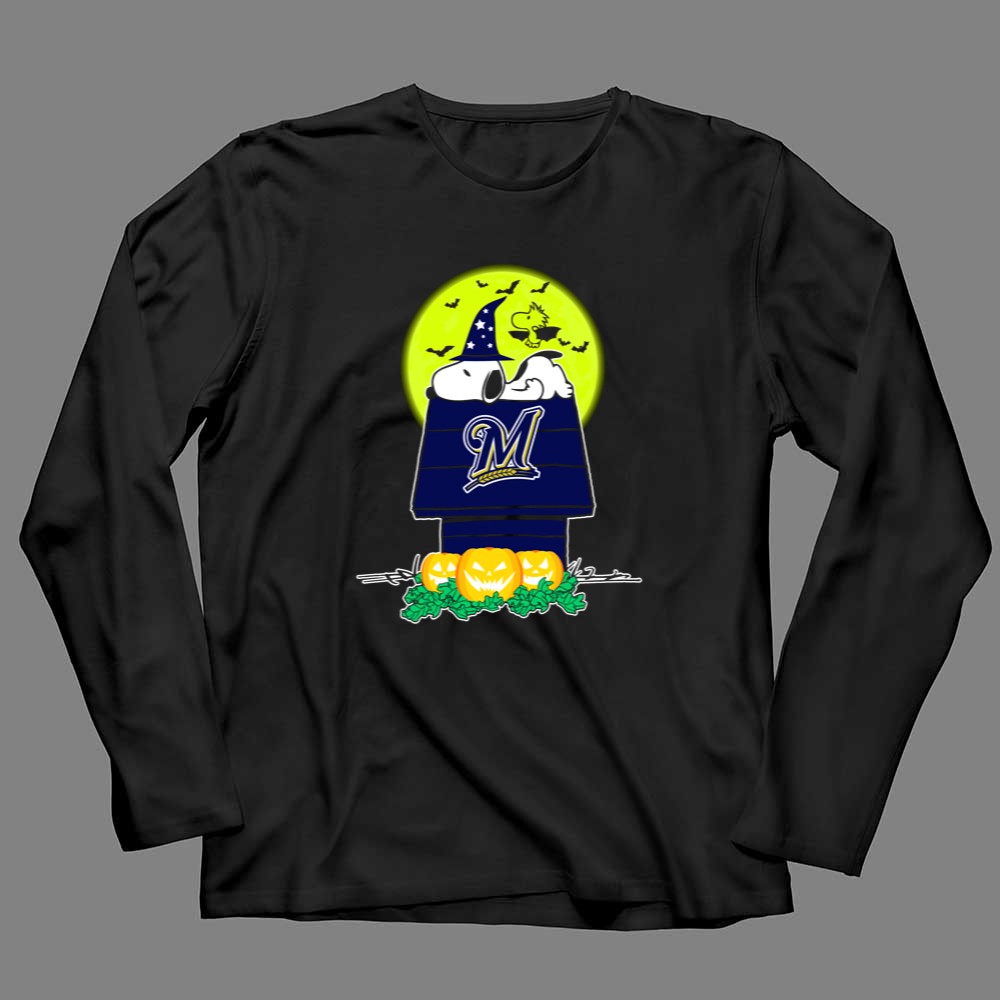 Milwaukee Brewers Snoopy Halloween Peanuts Moon Pumpkins Bats House Shirt