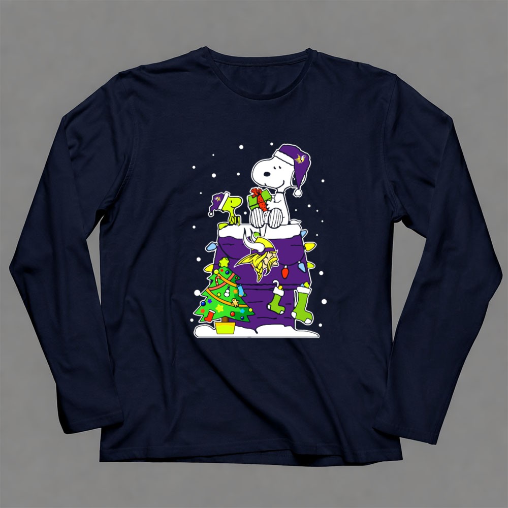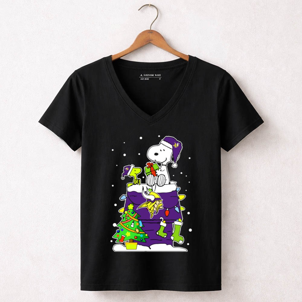 Minnesota Vikings Christmas Snoopy With Dog And Tree Shirt