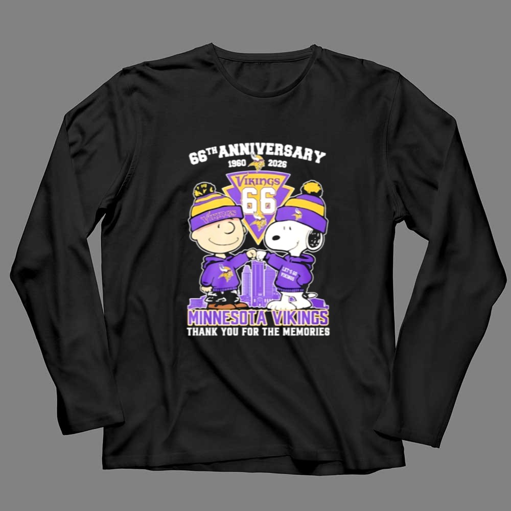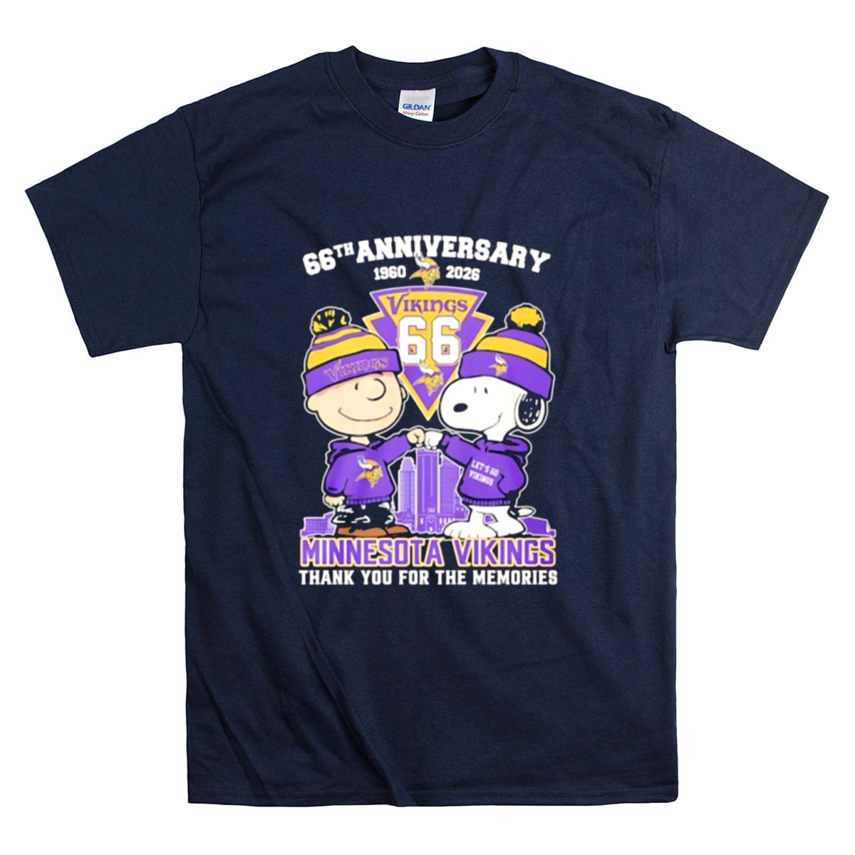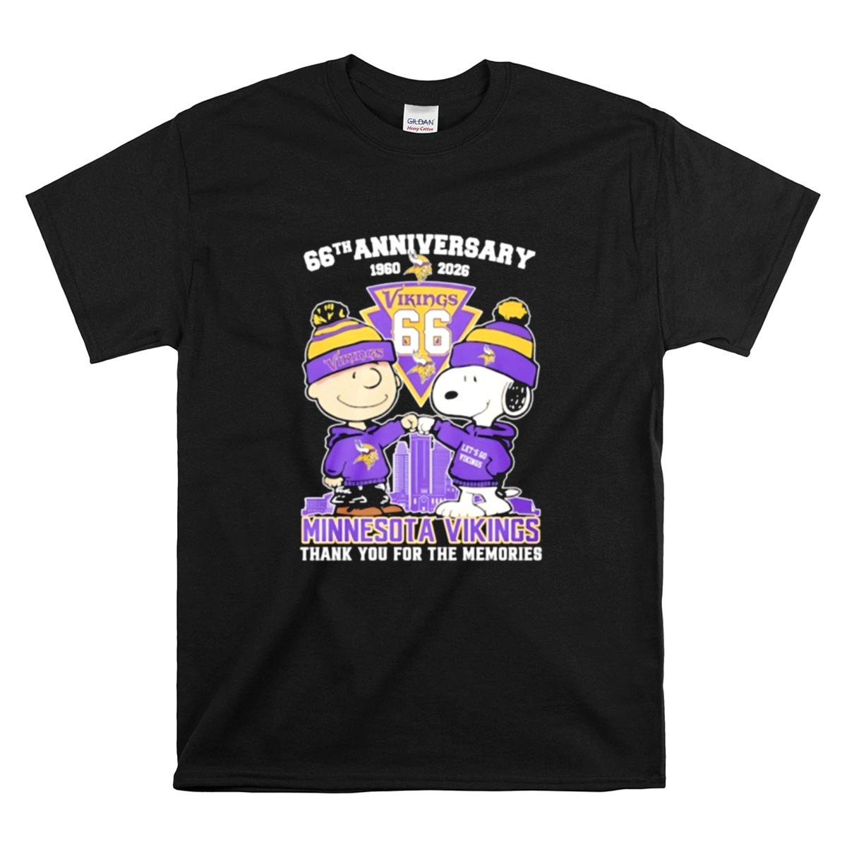 Minnesota Vikings Snoopy And Charlie Brown 66th Anniversary 1960-2026 Shirt