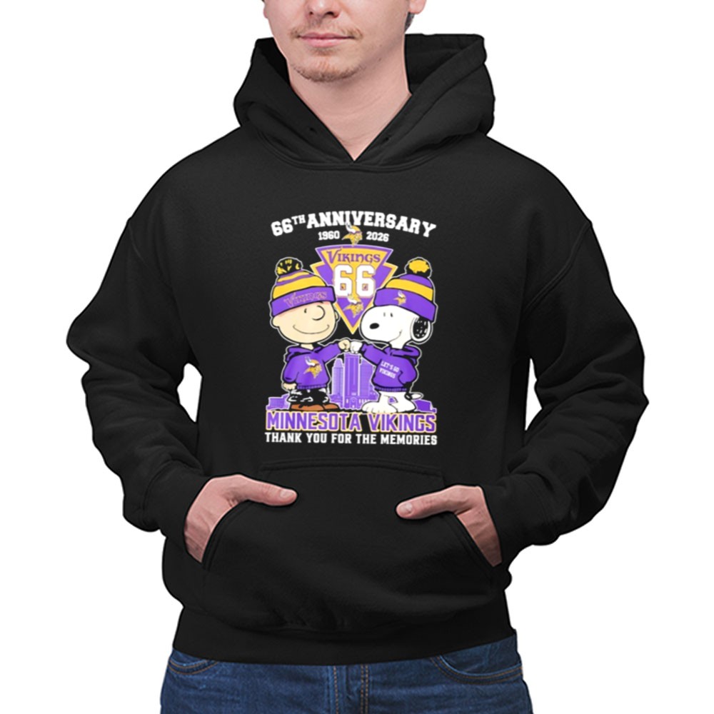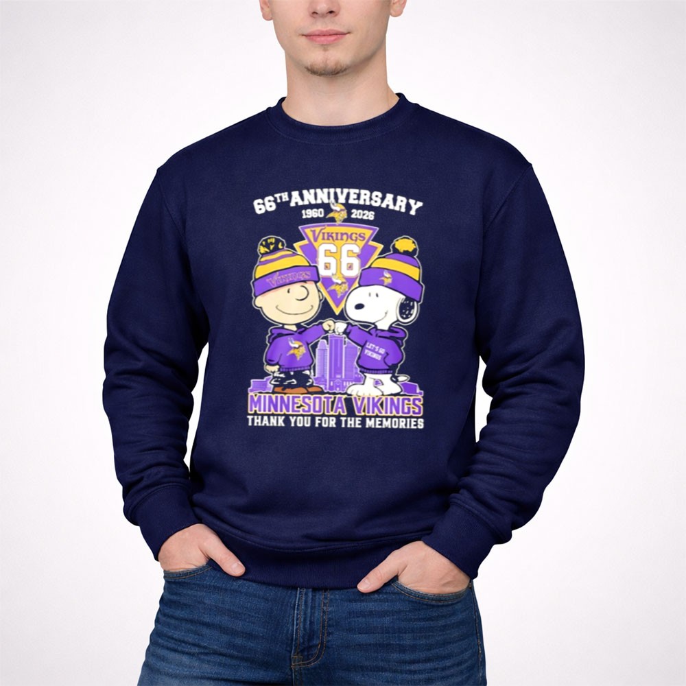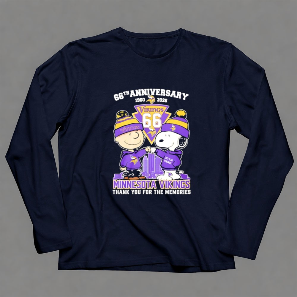 Minnesota Vikings Snoopy And Charlie Brown 66th Anniversary 1960-2026 Shirt