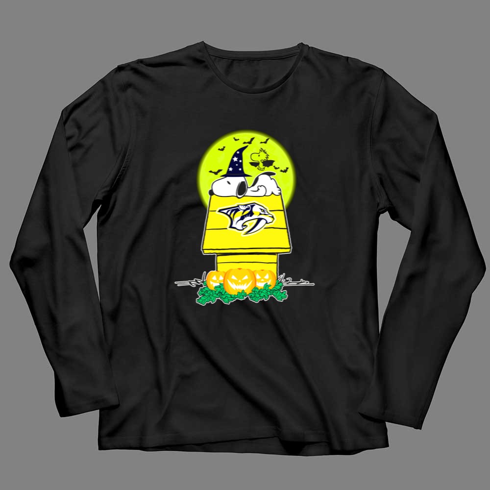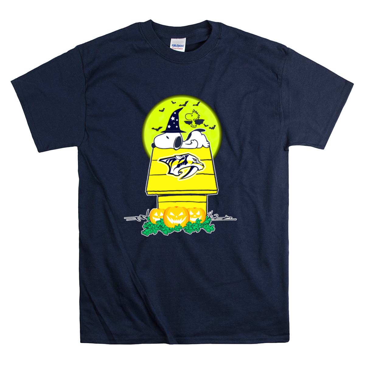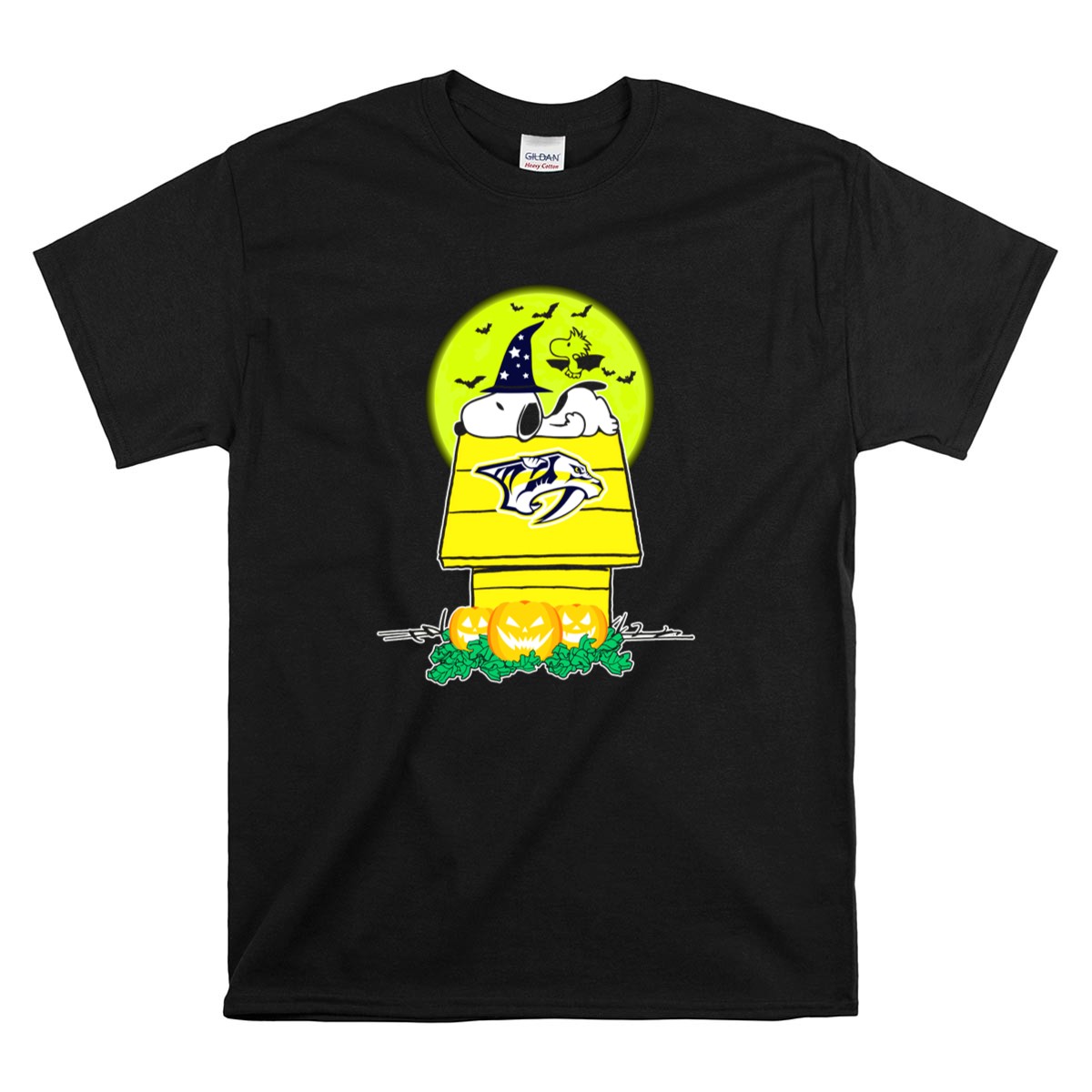 Nashville Predators Snoopy Woodstock Halloween Pumpkins Moon Shirt