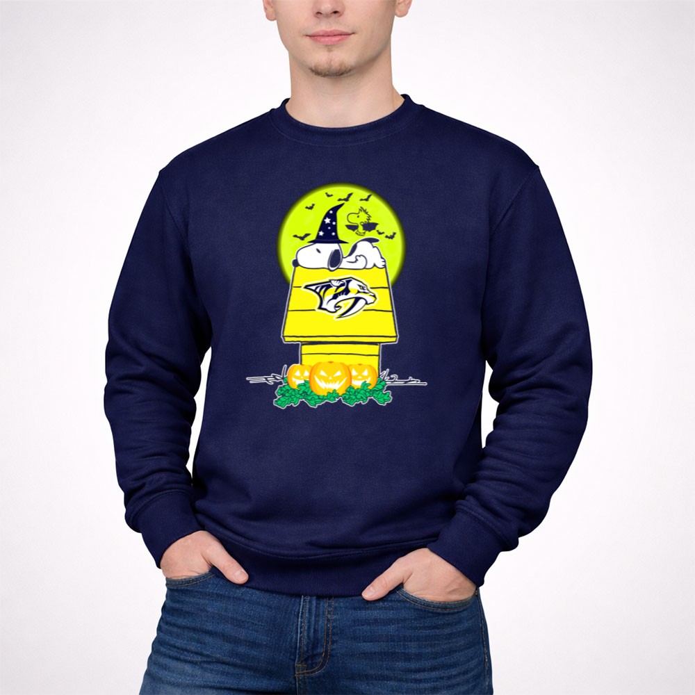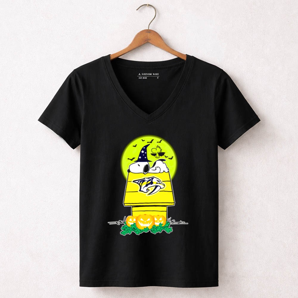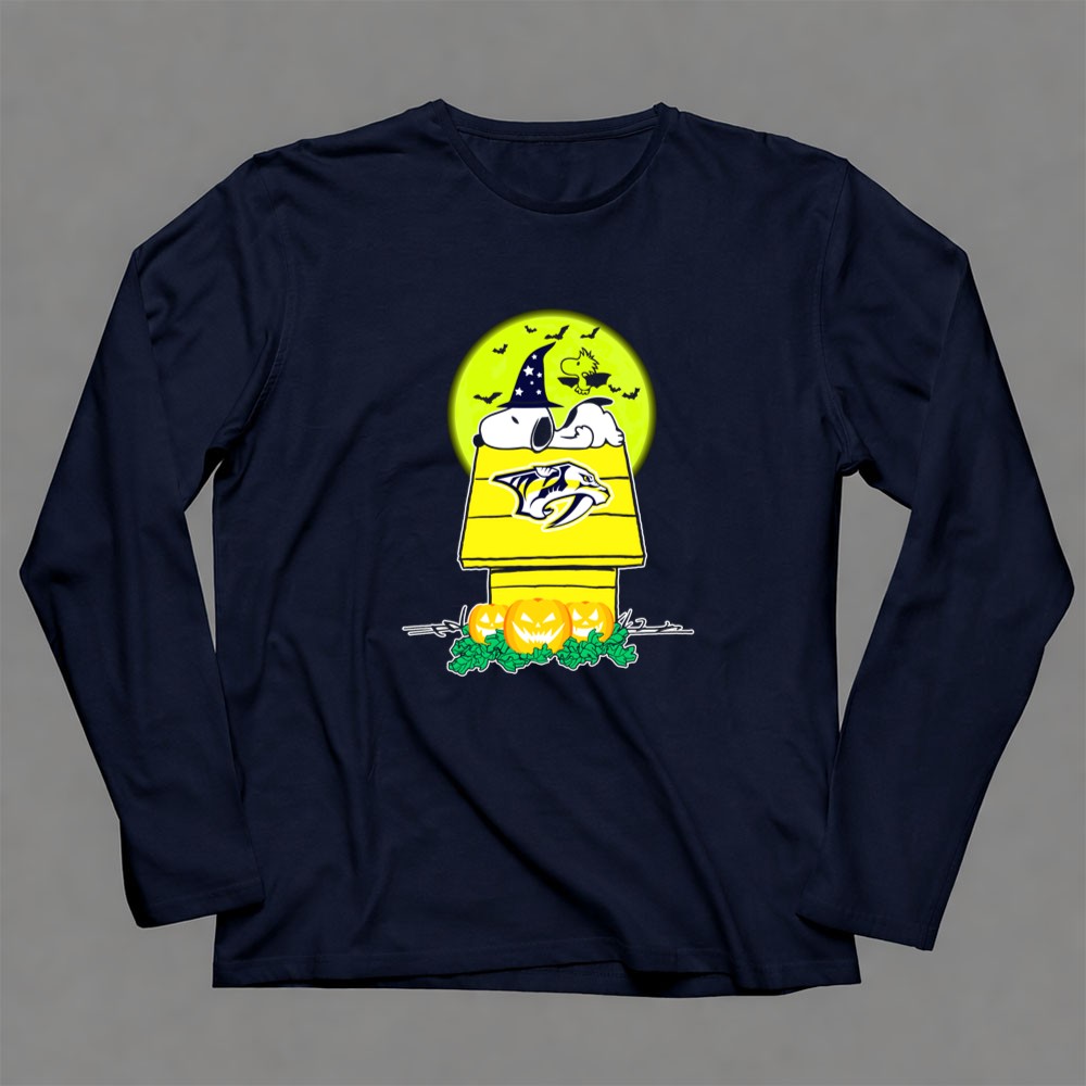Nashville Predators Snoopy Woodstock Halloween Pumpkins Moon Shirt
