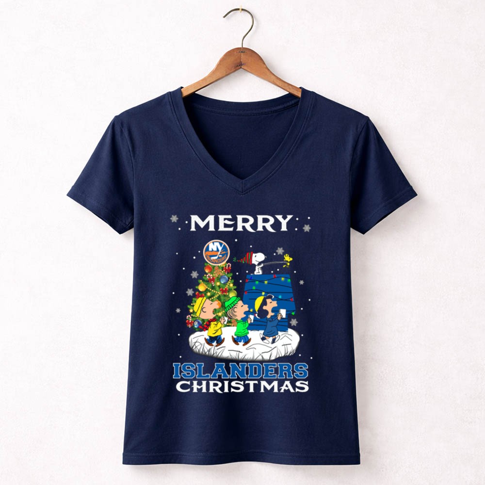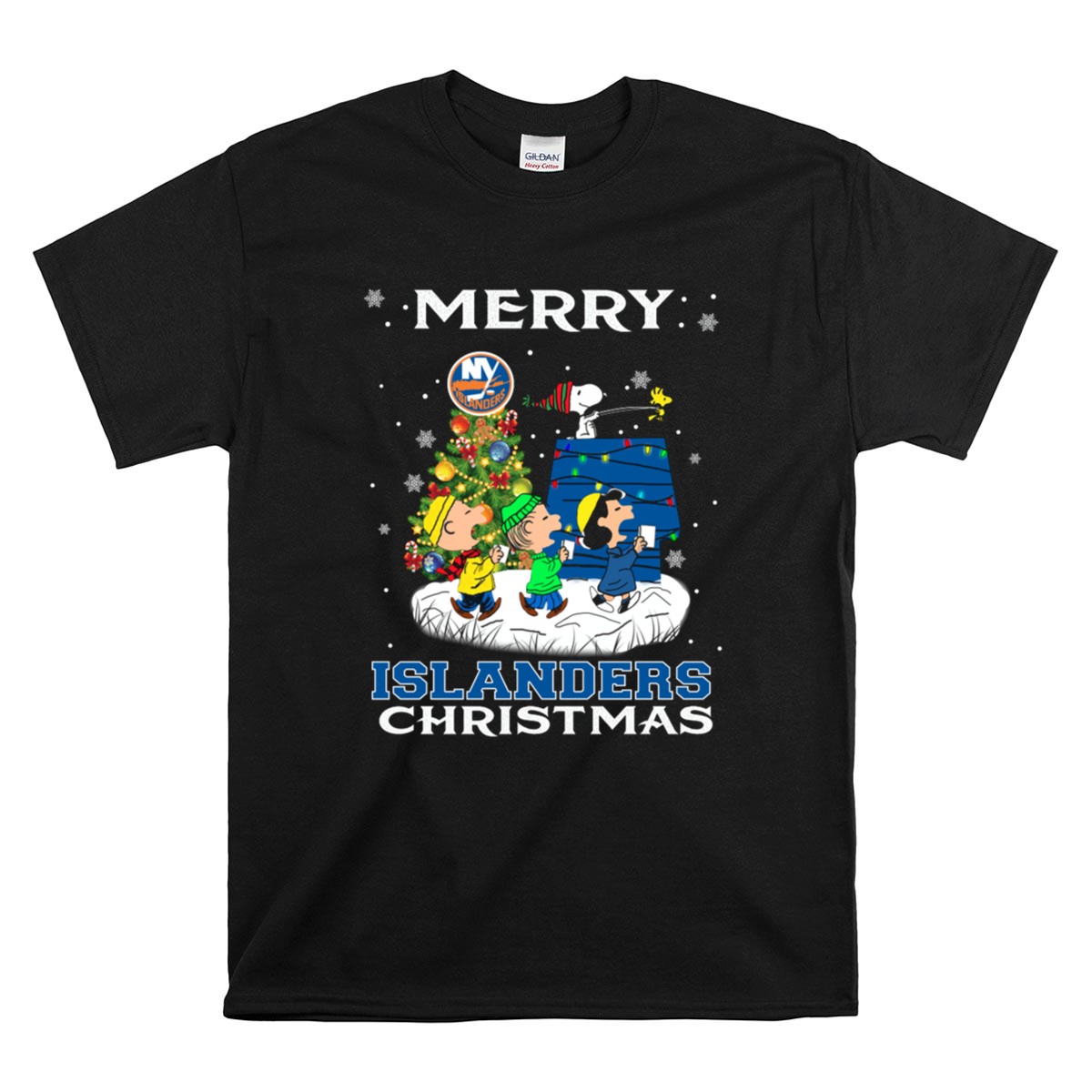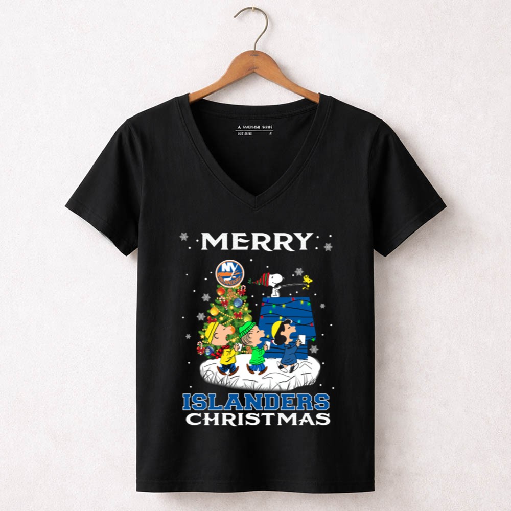 New York Islanders Christmas Characters Snoopy Woodstock Charlie Brown Linus Lucy Shirt