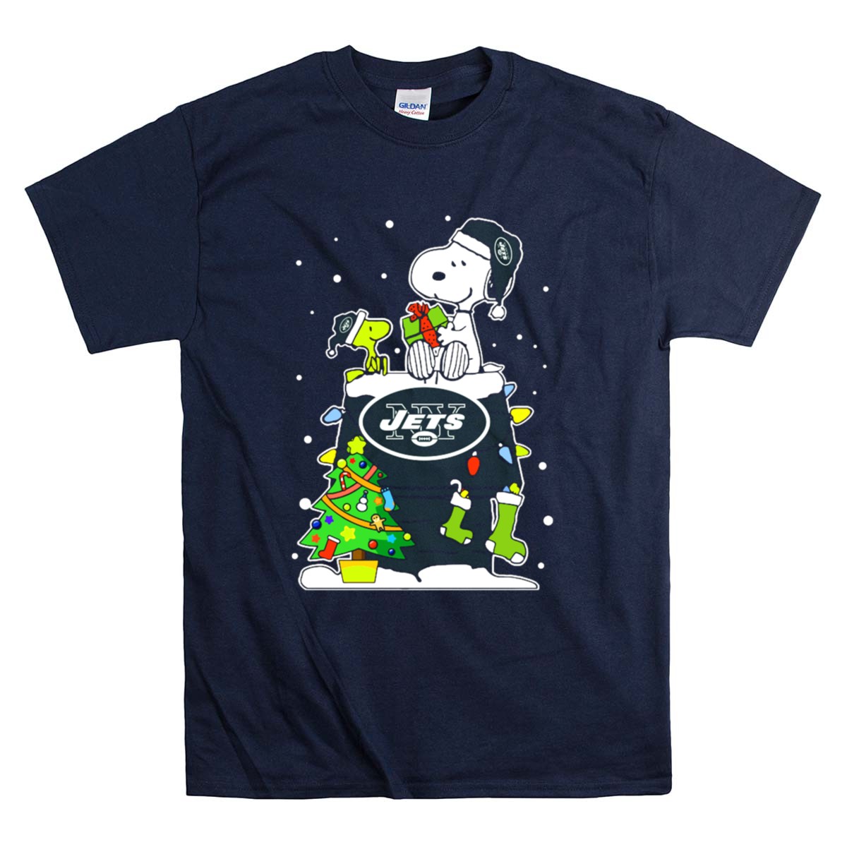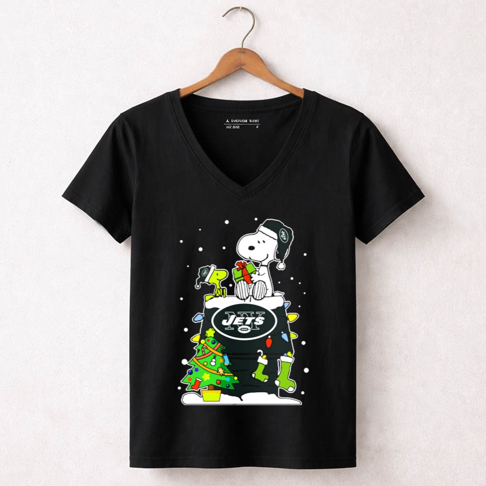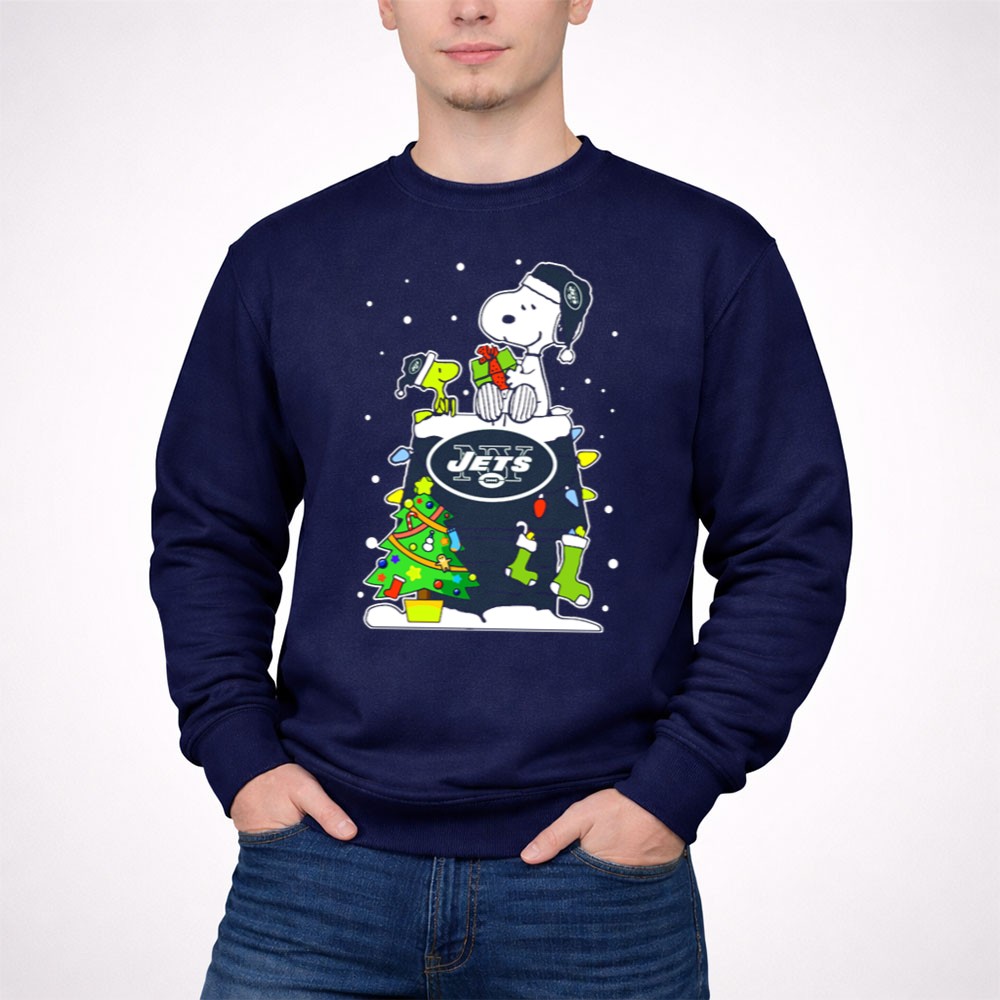 New York Jets Snoopy And Woodstock Christmas Gift With Tree And Snowflakes Shirt