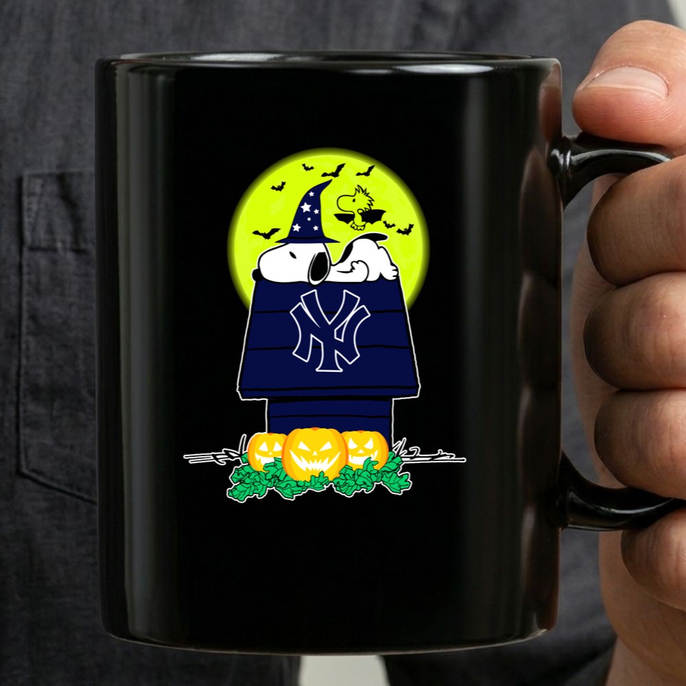 New York Yankees Snoopy Halloween Witch Woodstock Pumpkins Moon Mug