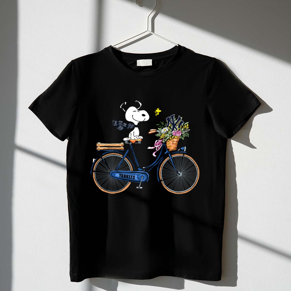 Be the first to review “New York Yankees Snoopy On Bicycle With Woodstock And Flowers Shirt”