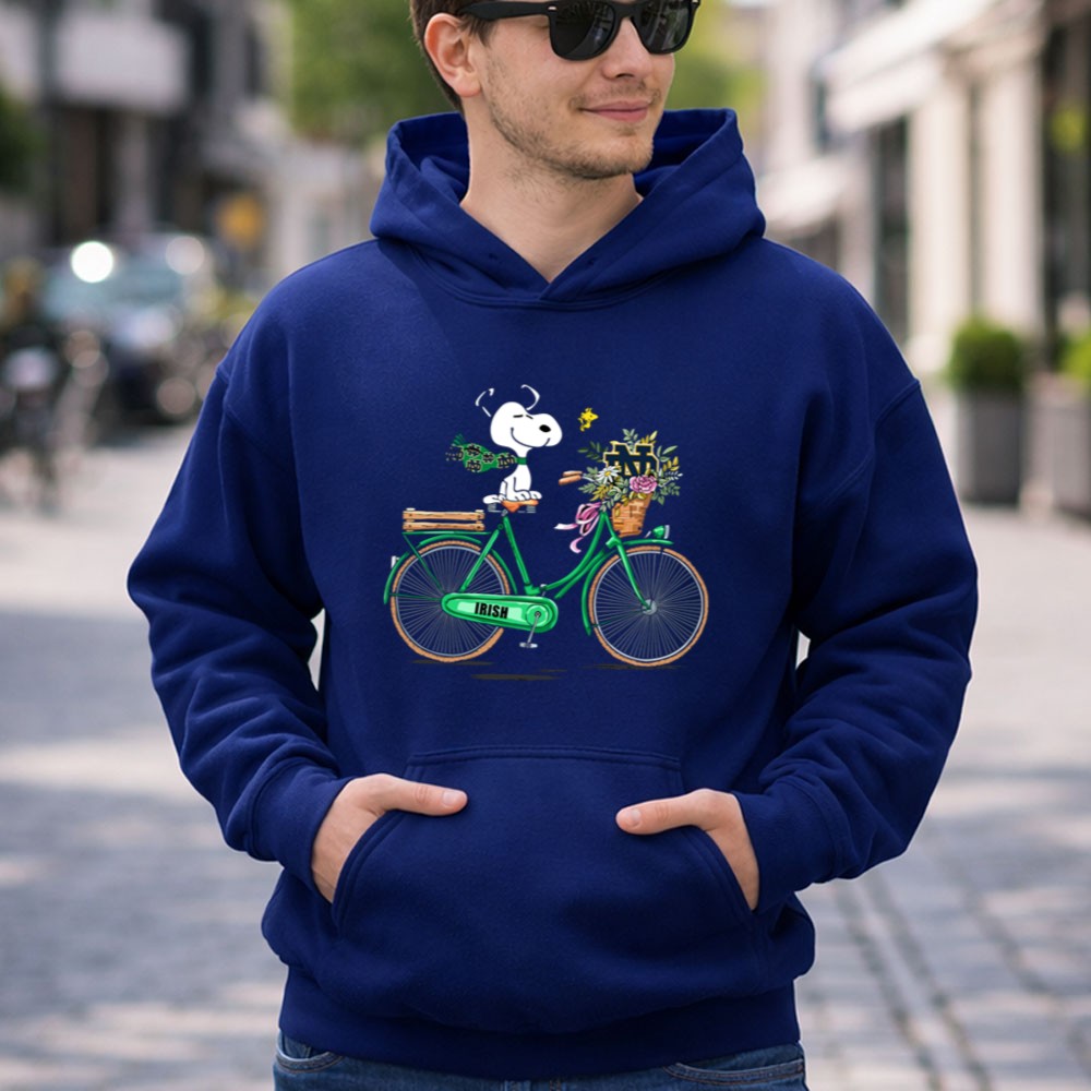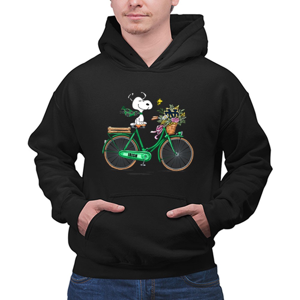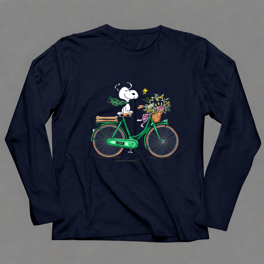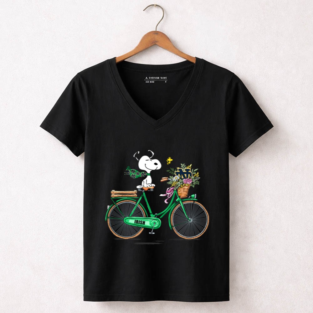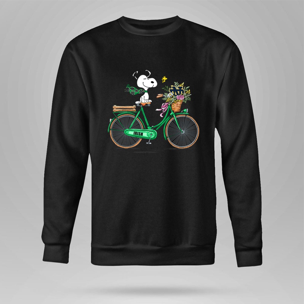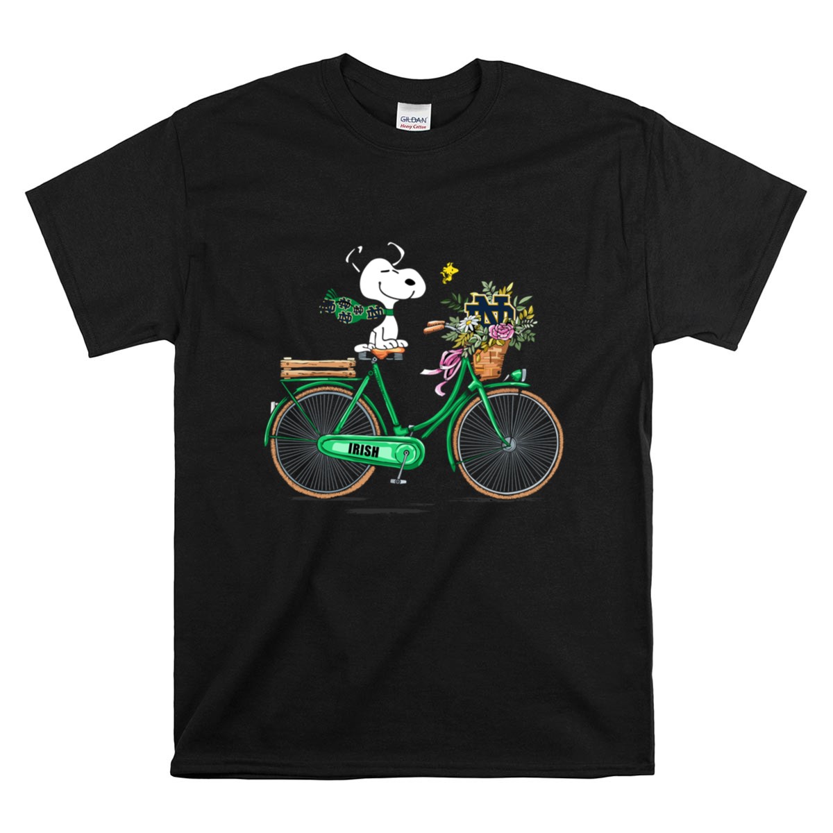 Notre Dame Fighting Irish Snoopy on Bicycle with Flowers and Woodstock Shirt