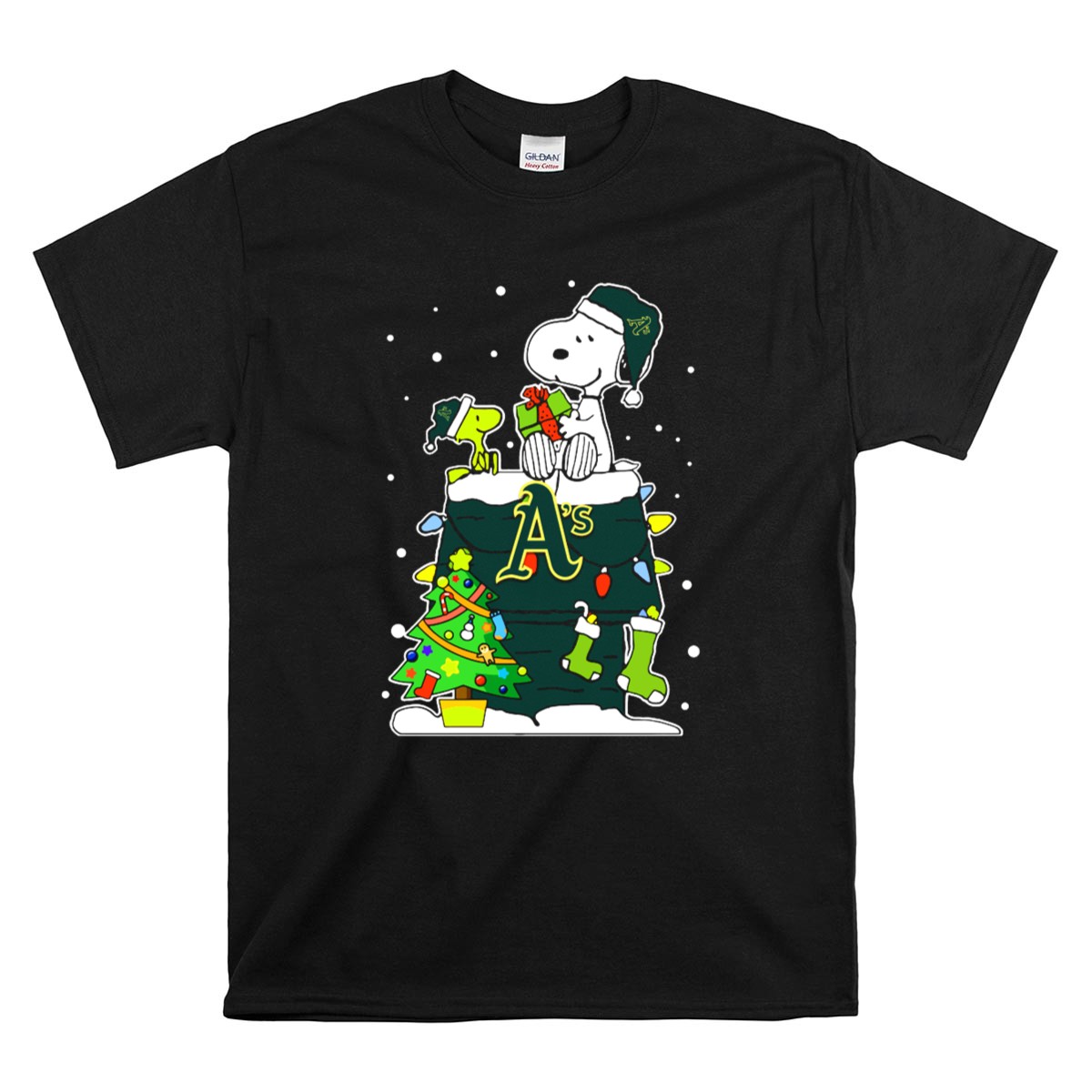 Oakland Athletics Snoopy Christmas Peanuts Holiday Gift Tree Shirt