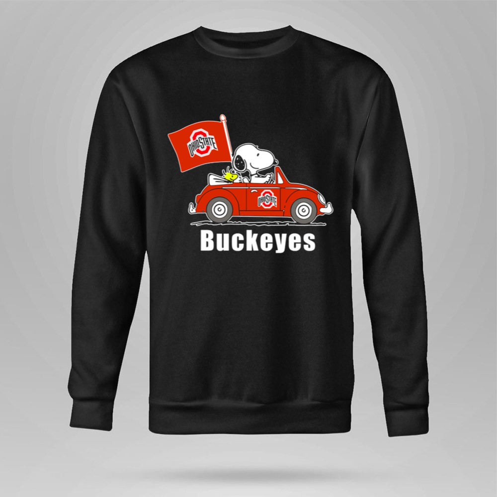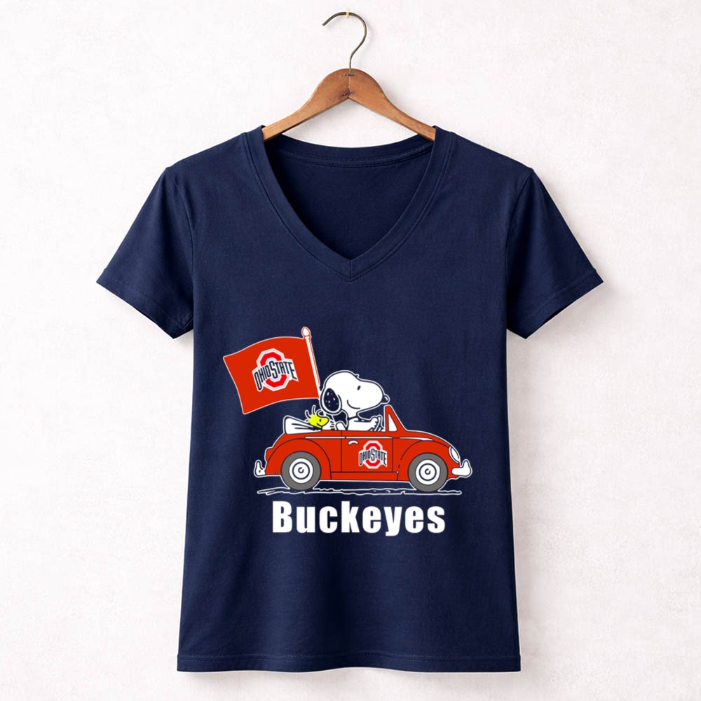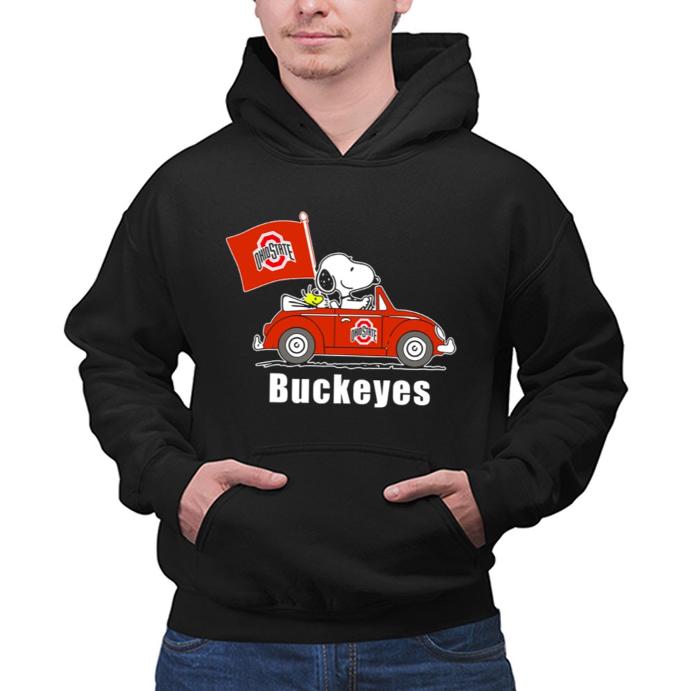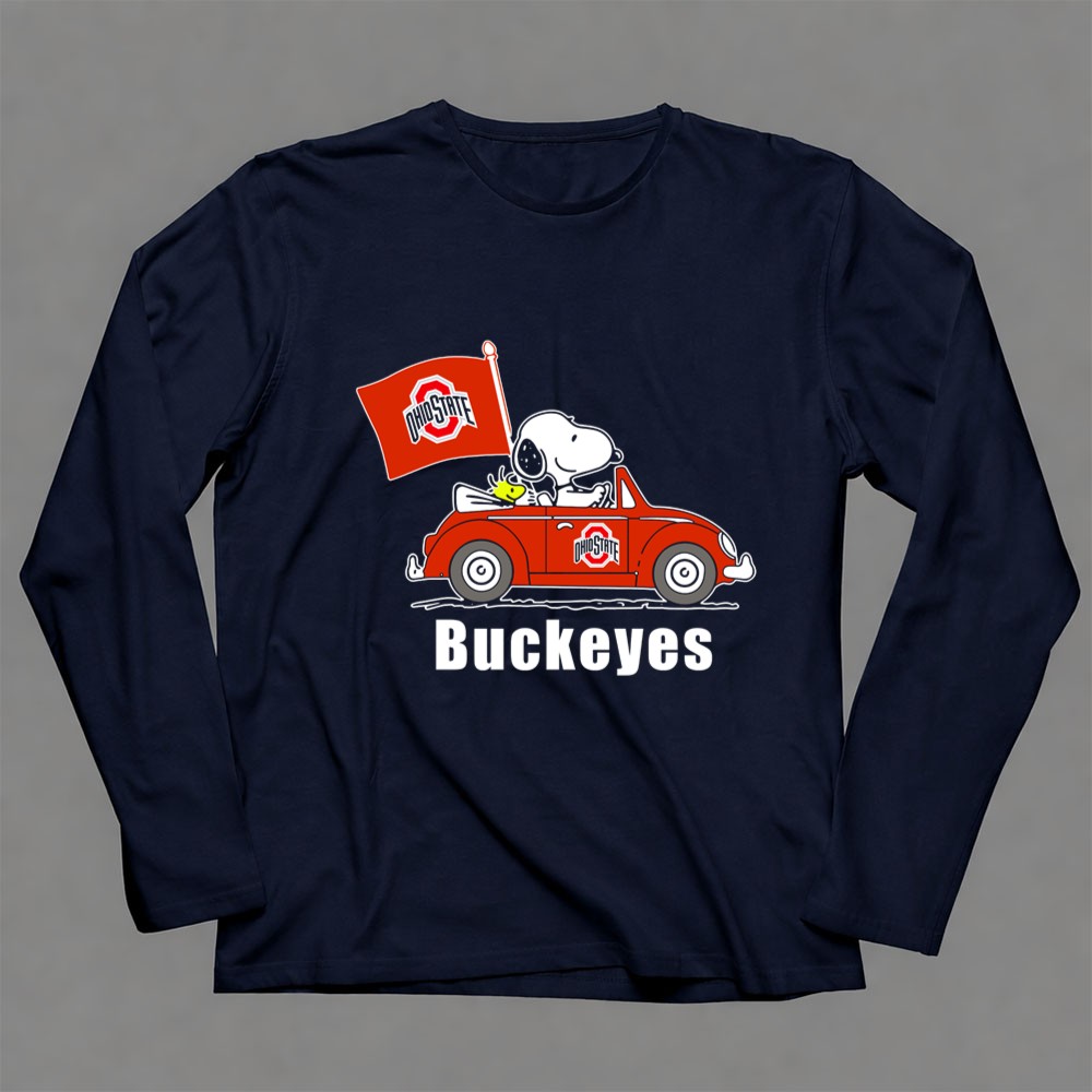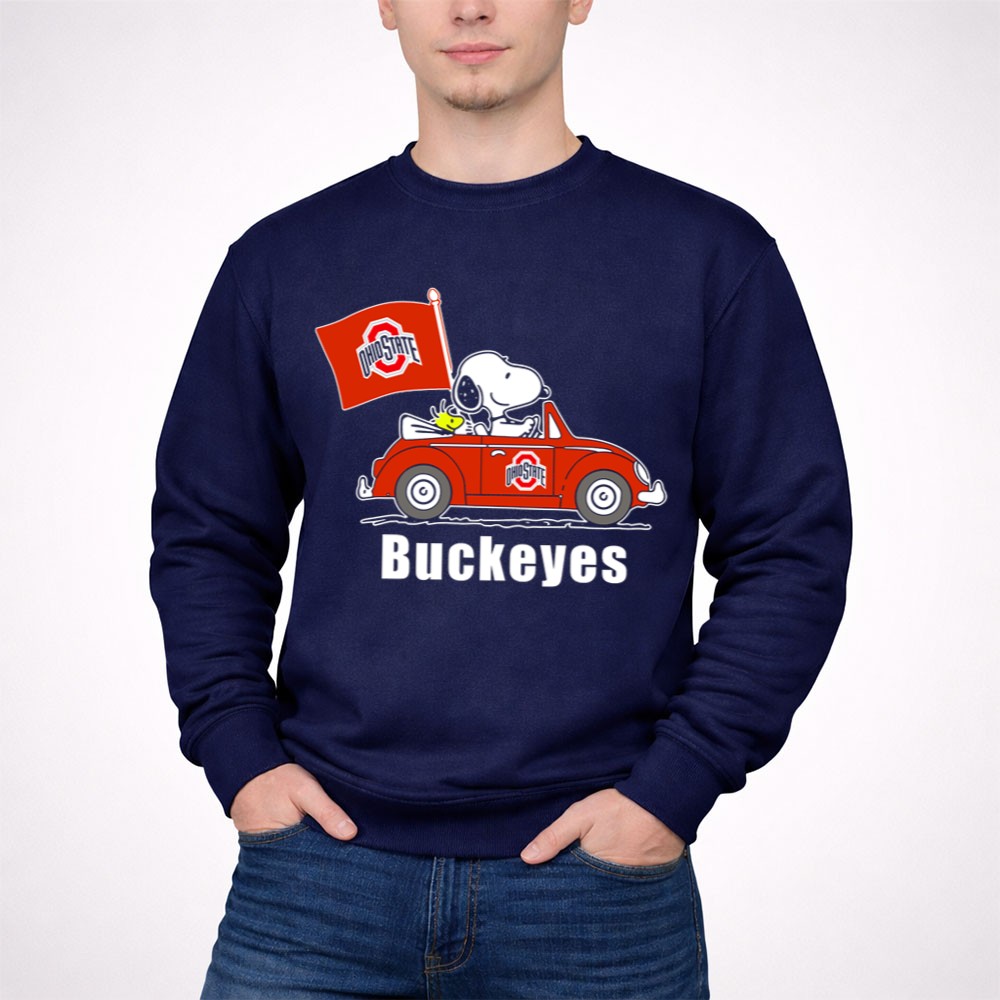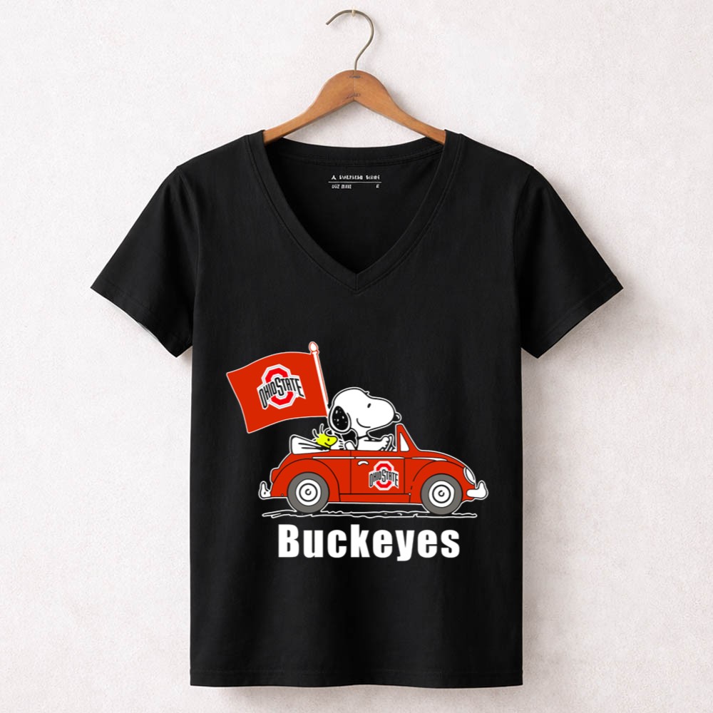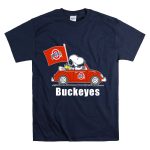 Ohio State Buckeyes Snoopy In Red Car With Flag Shirt