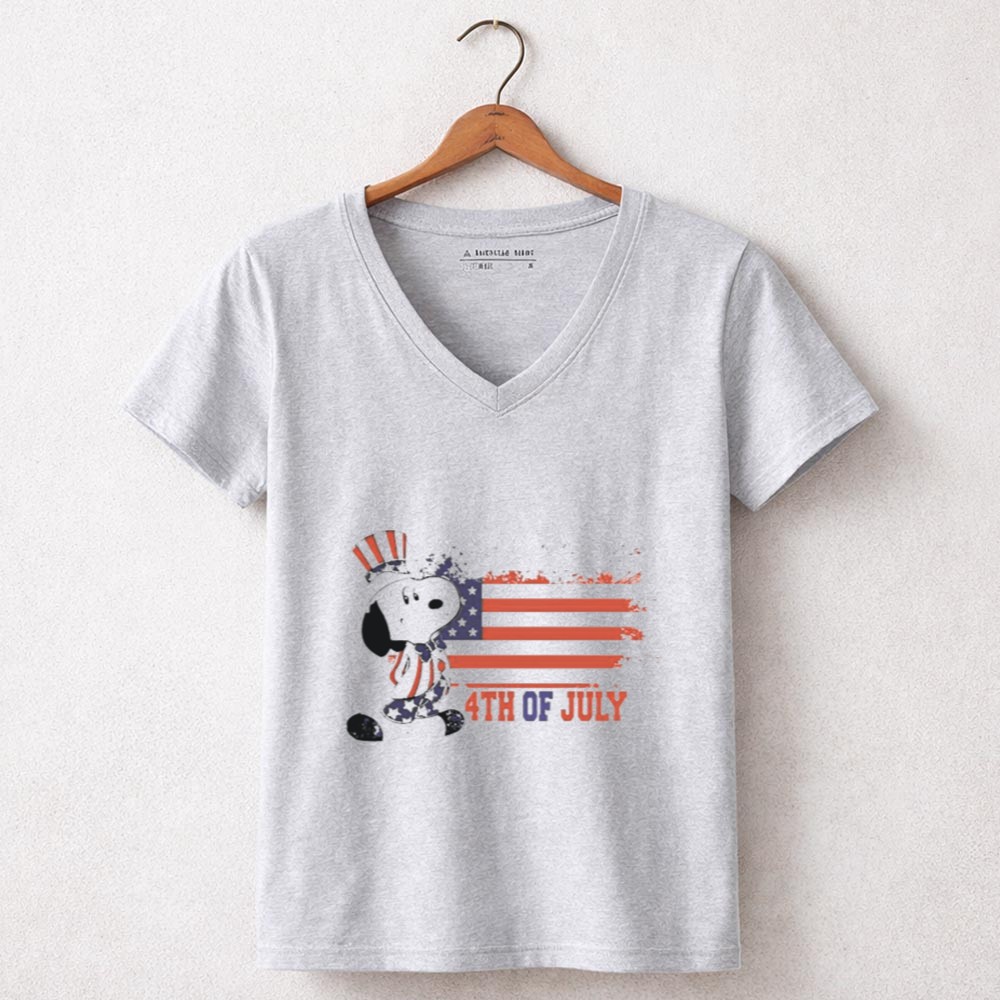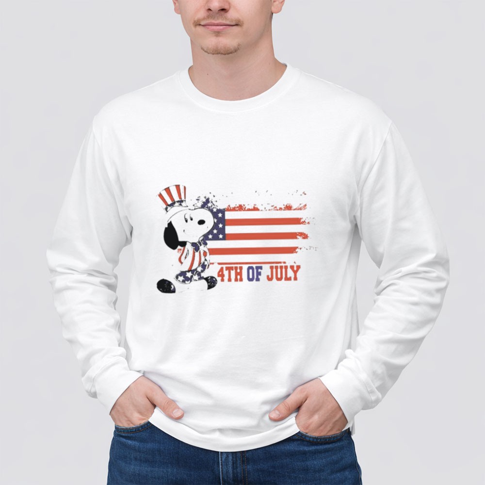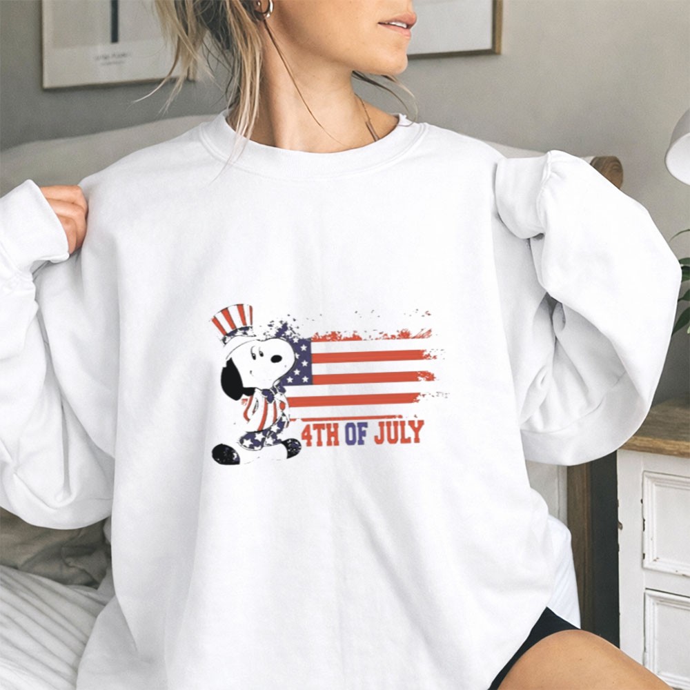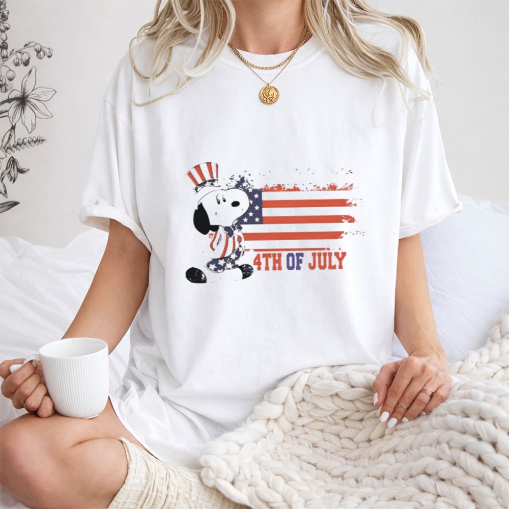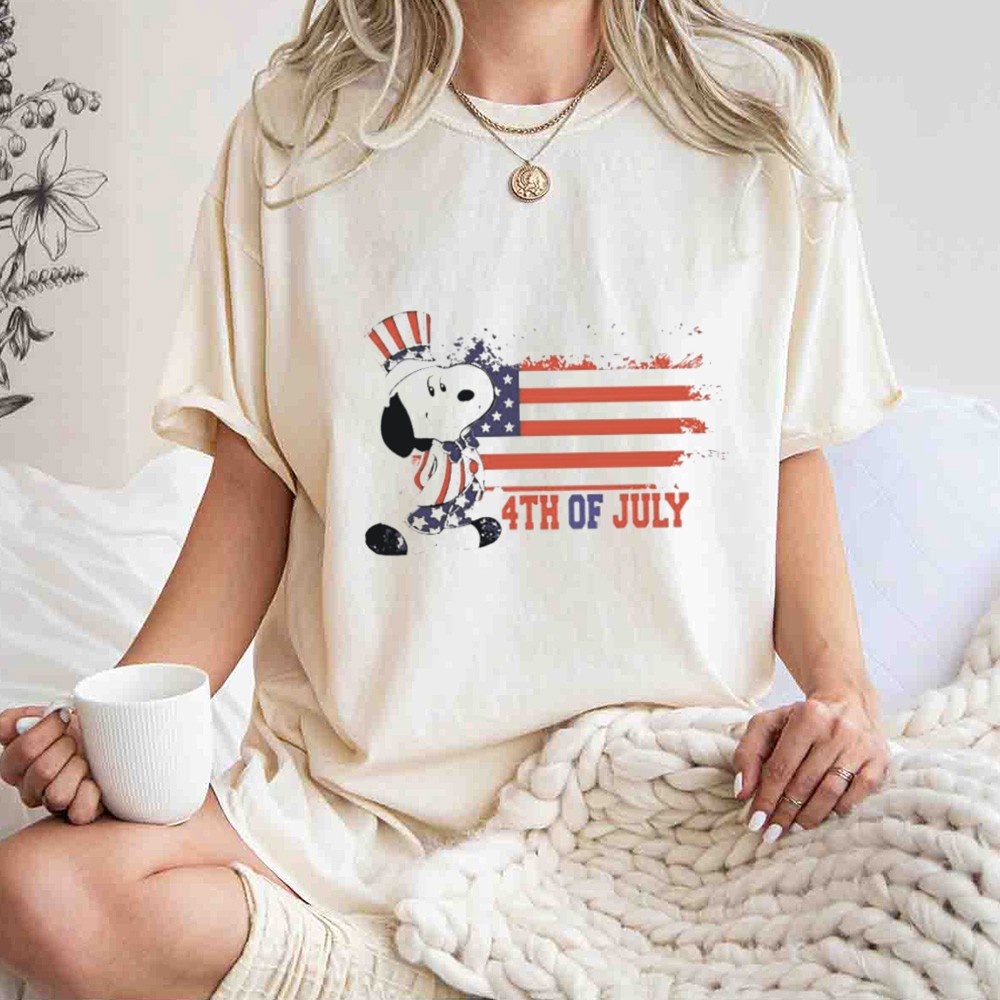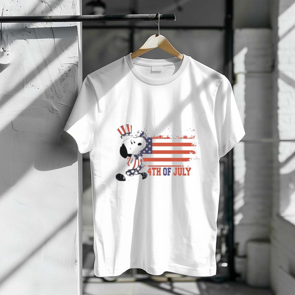 Patriotic Snoopy Wearing Uncle Sam Hat With American Flag Background 4th Of July Shirt