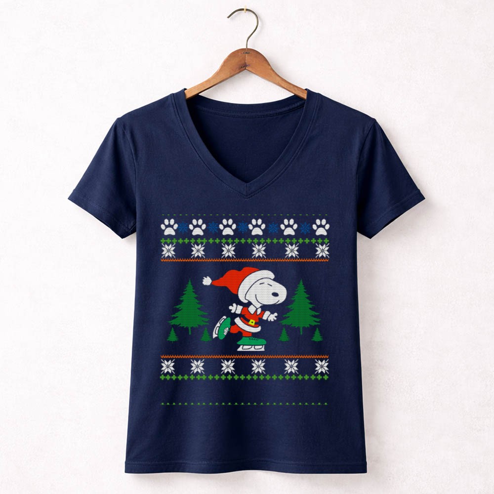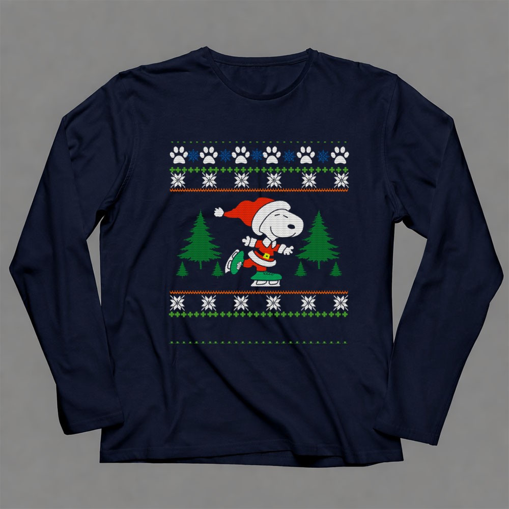 Pattin Xmas Snoopy Ice Skating Christmas Sweater Peanuts Movie Shirt