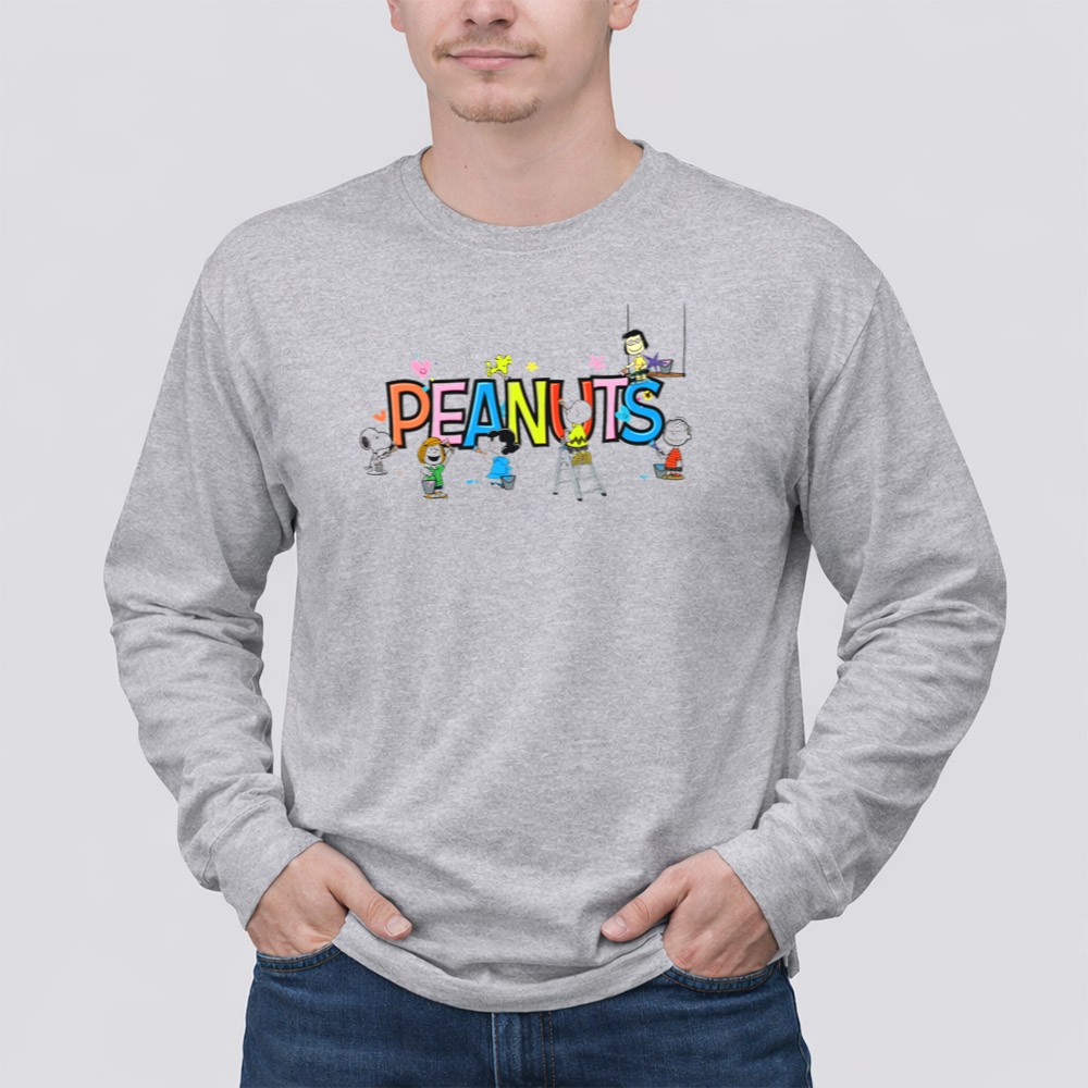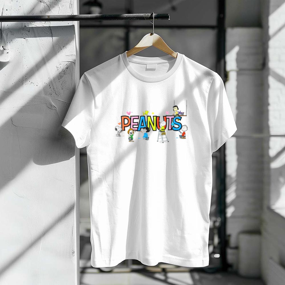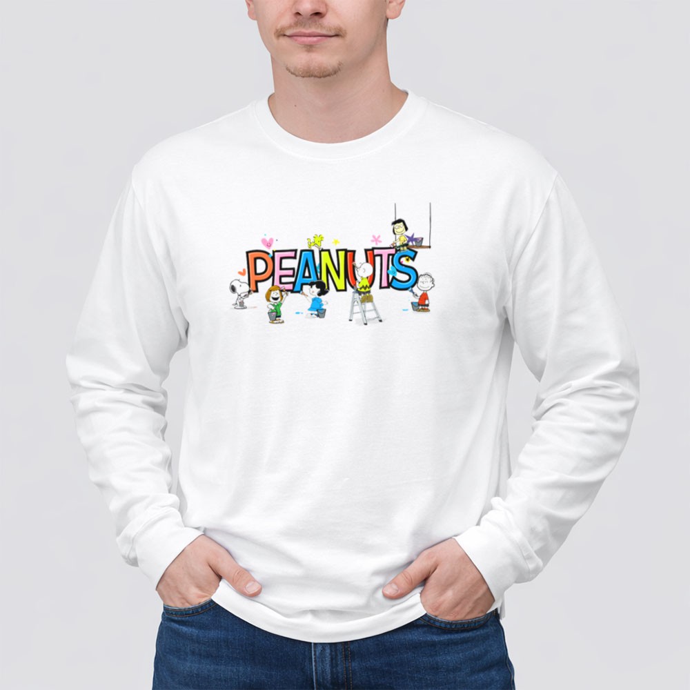 Peanuts Characters Painting Colorful Letters Charlie Brown Snoopy Lucy Linus Woodstock Shirt