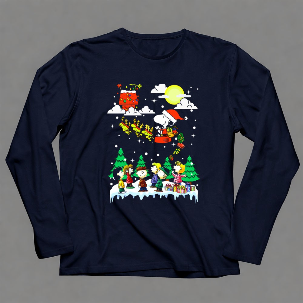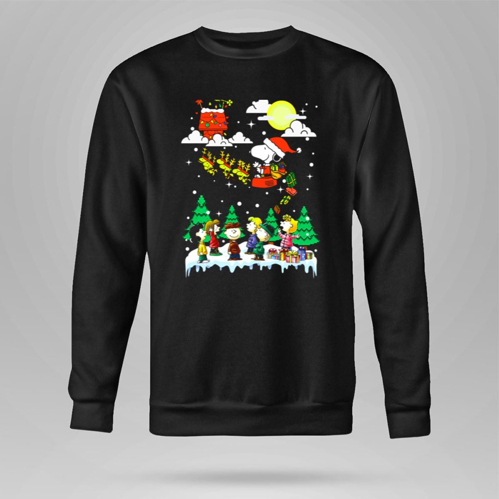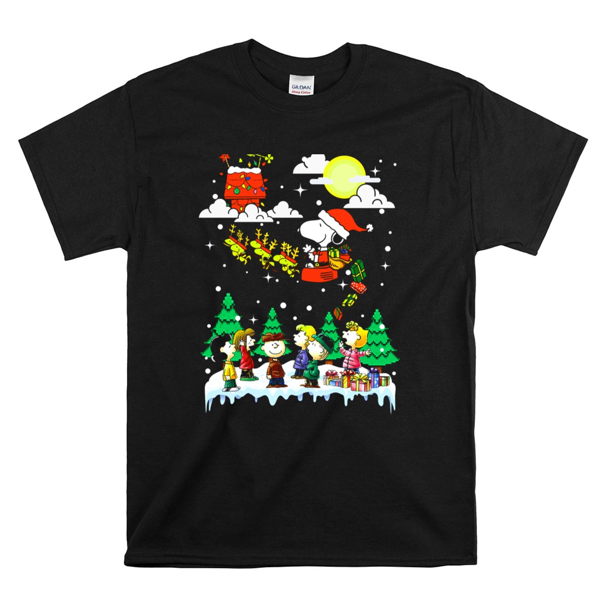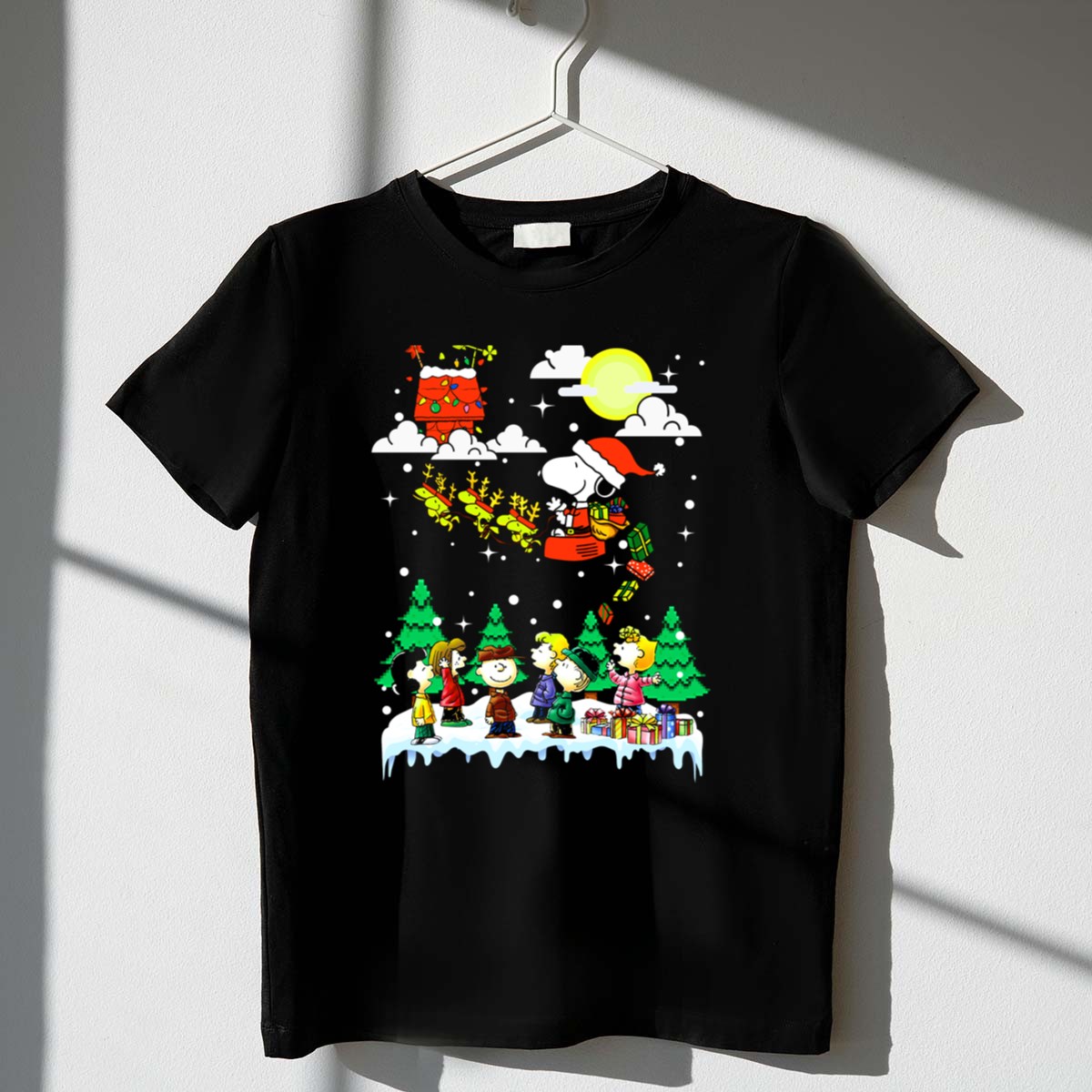 Peanuts Christmas Charlie Brown Snoopy Santa Sleigh Woodstock Scene Shirt