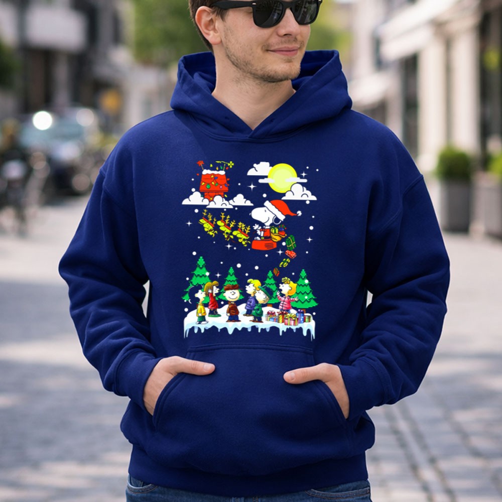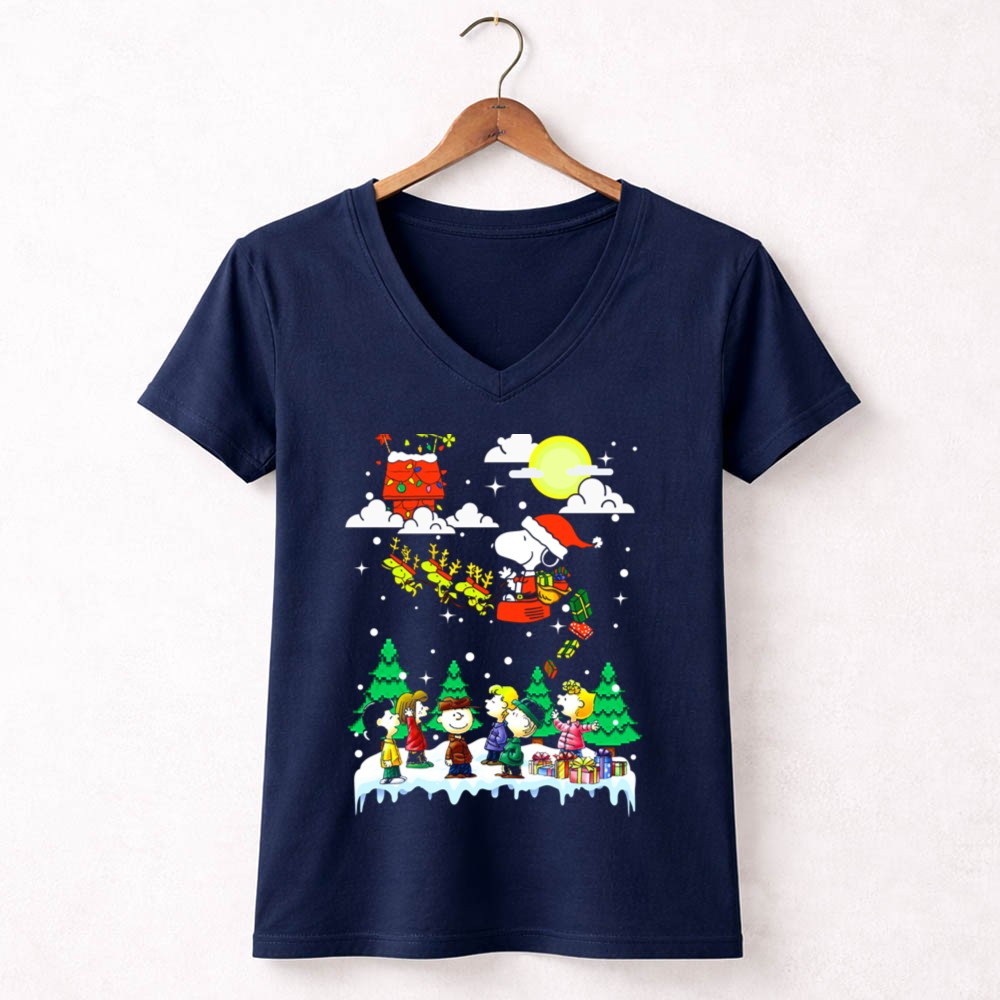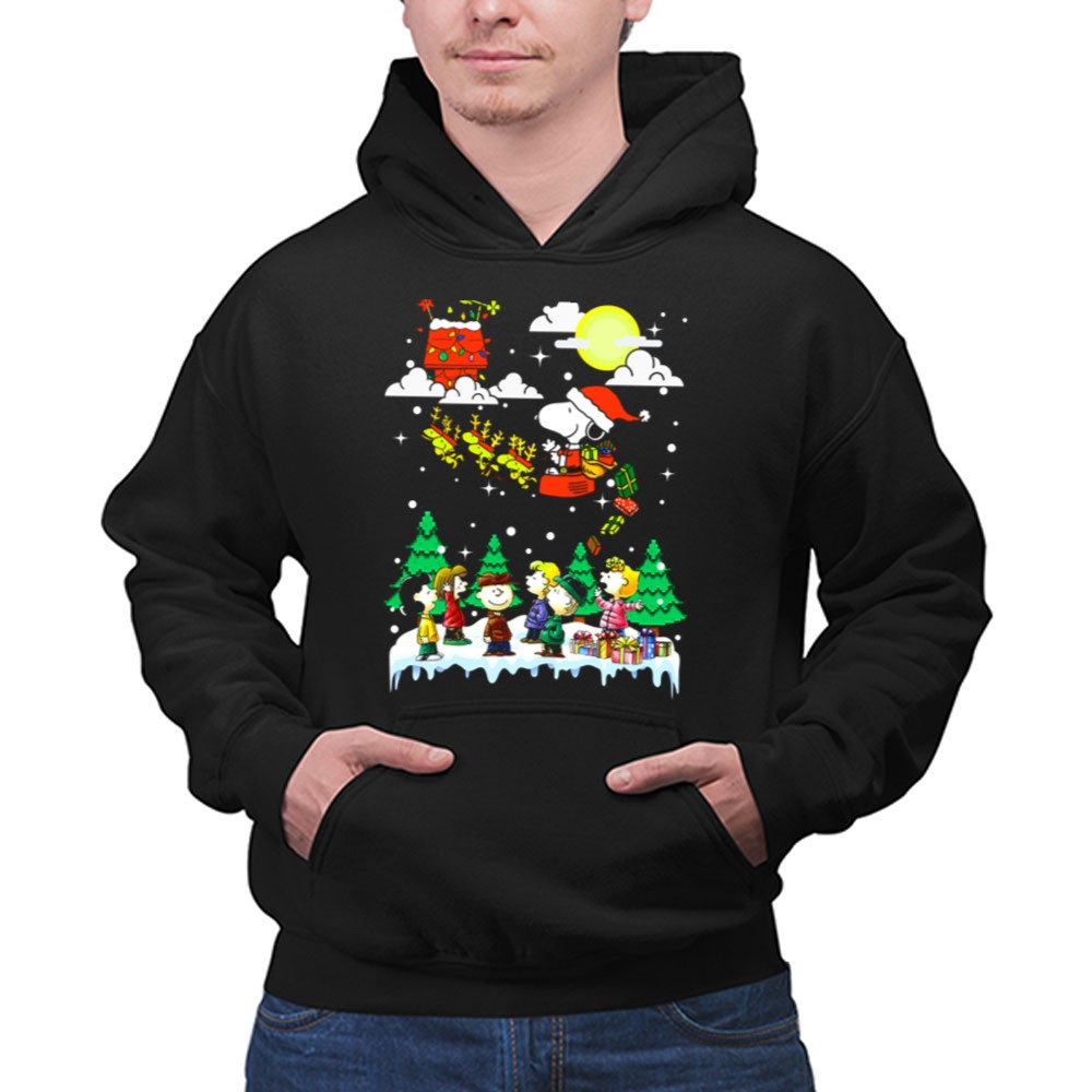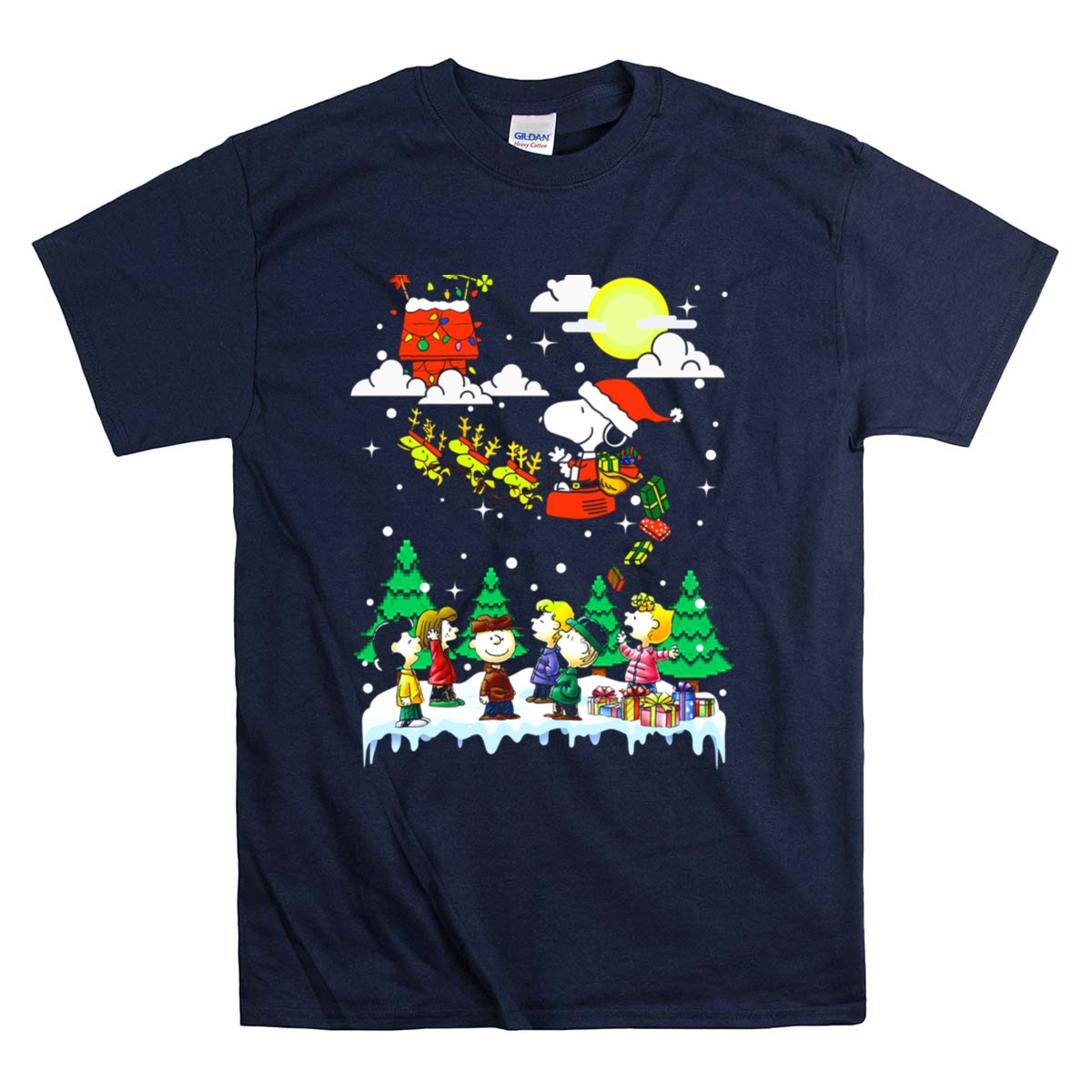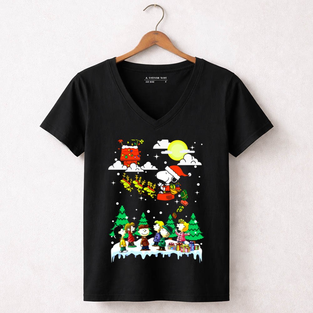Peanuts Christmas Charlie Brown Snoopy Santa Sleigh Woodstock Scene Shirt