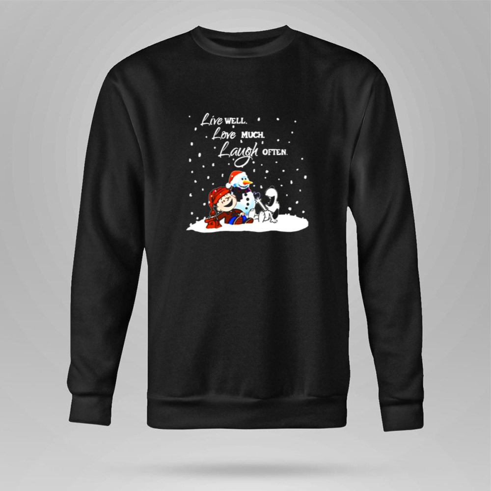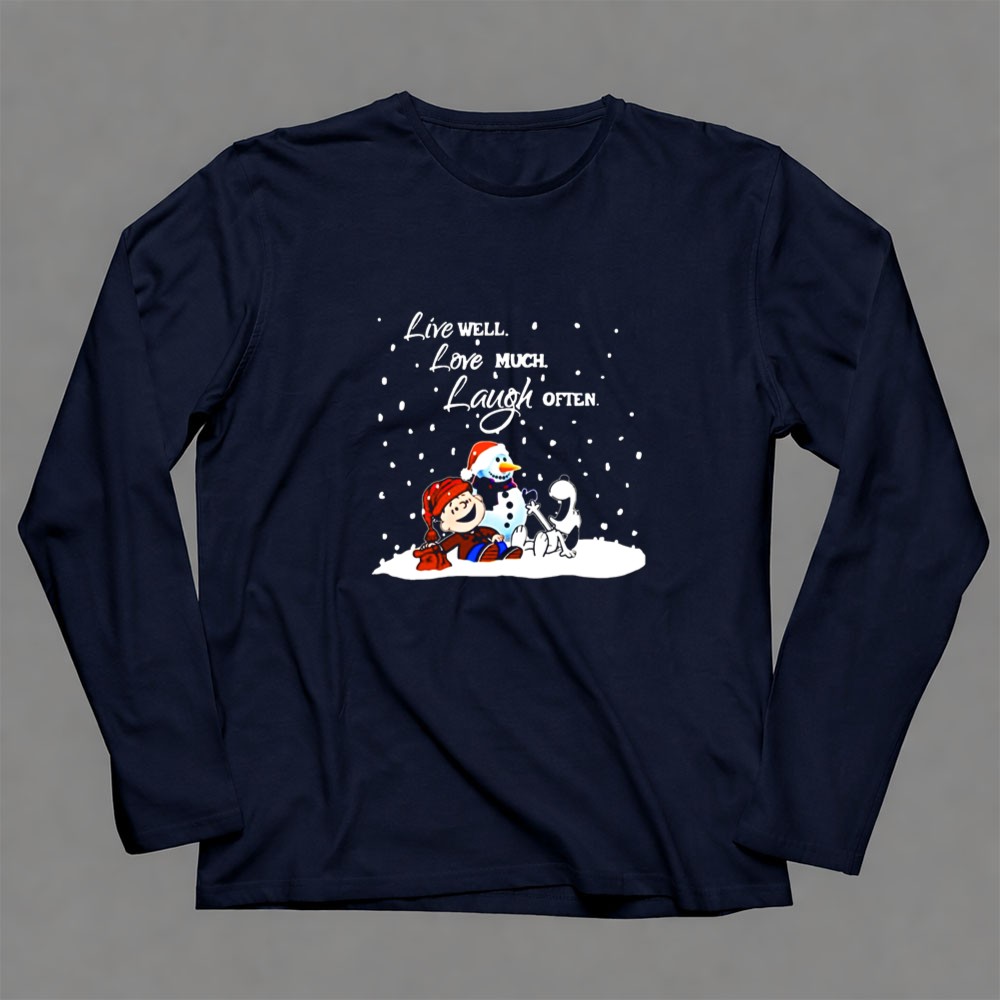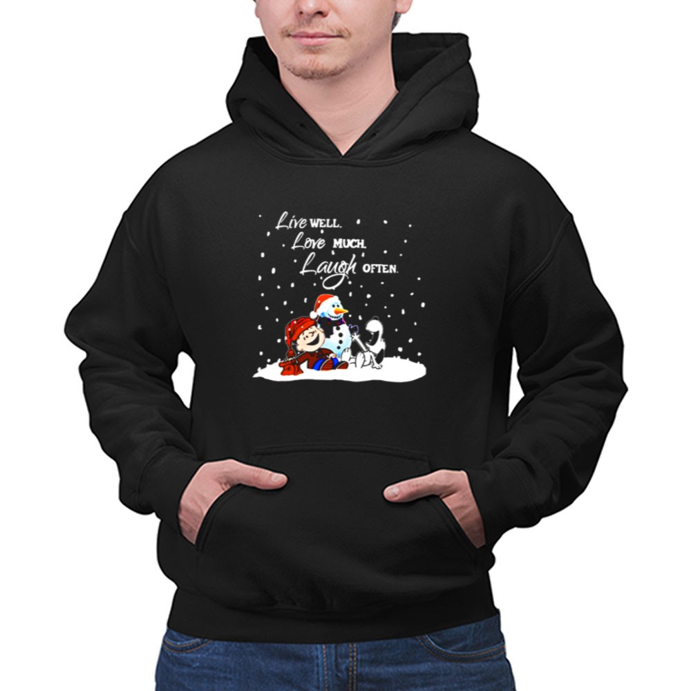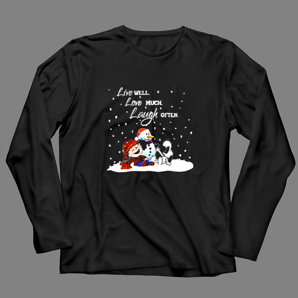 Peanuts Christmas Snoopy Charlie Brown Snowman Live Well Love Much Laugh Often Shirt