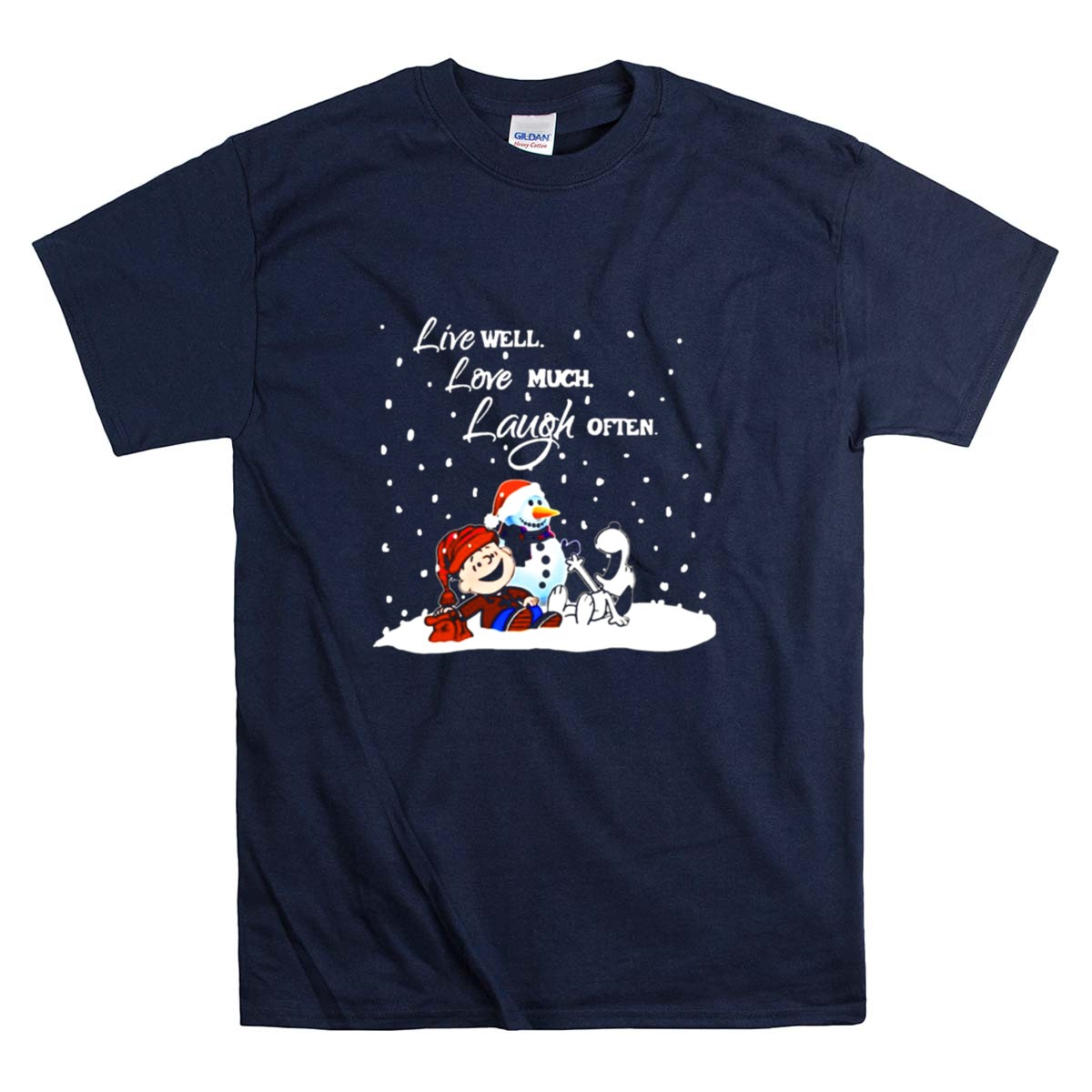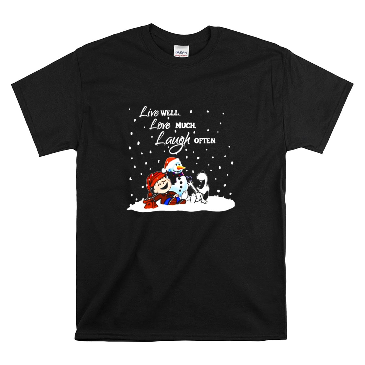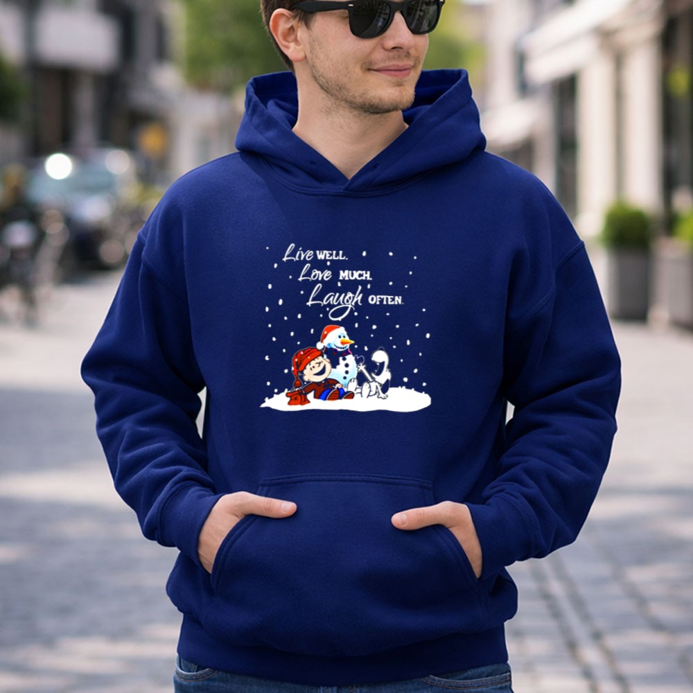 Peanuts Christmas Snoopy Charlie Brown Snowman Live Well Love Much Laugh Often Shirt