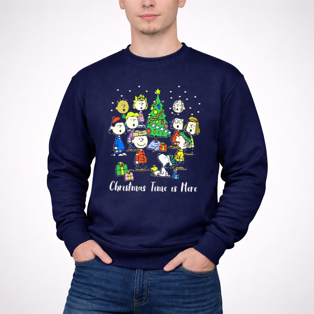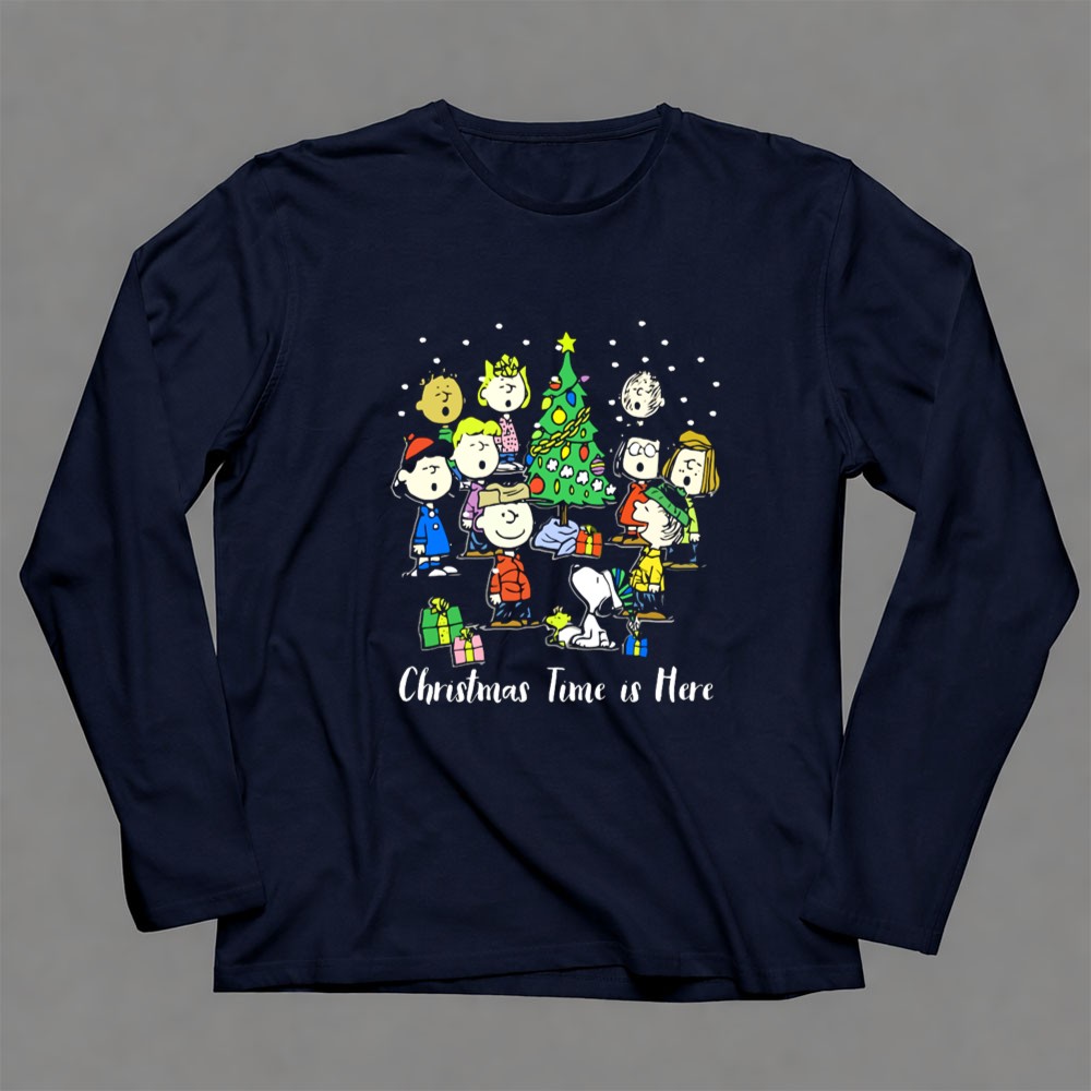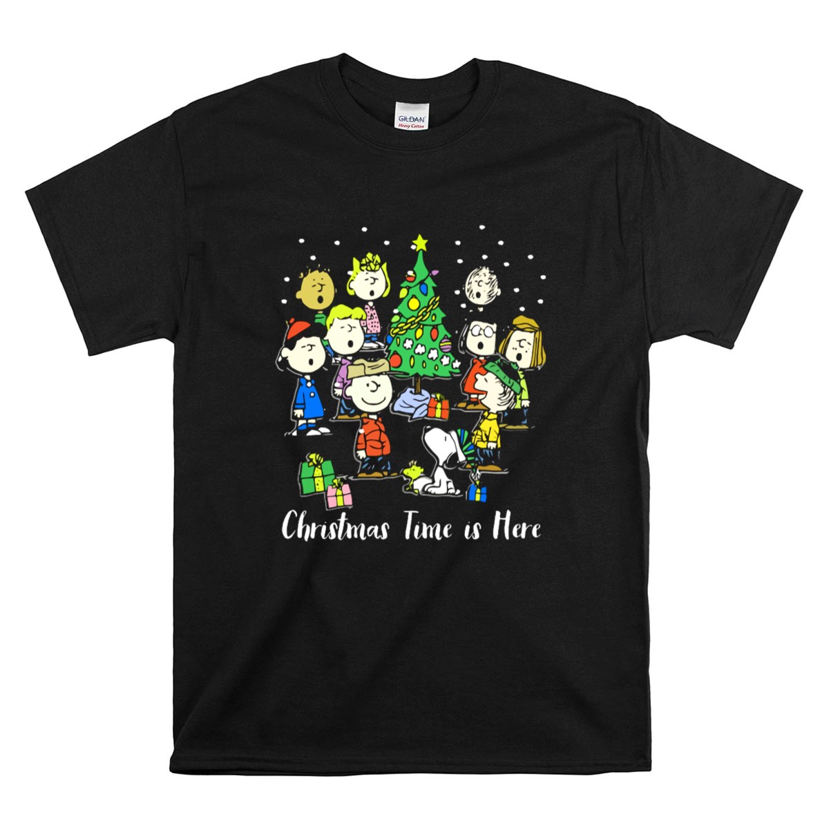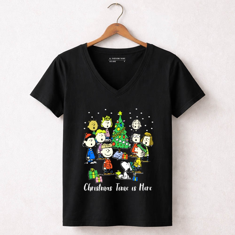 Peanuts Christmas Time Is Here Snoopy and Characters Around Christmas Tree Shirt