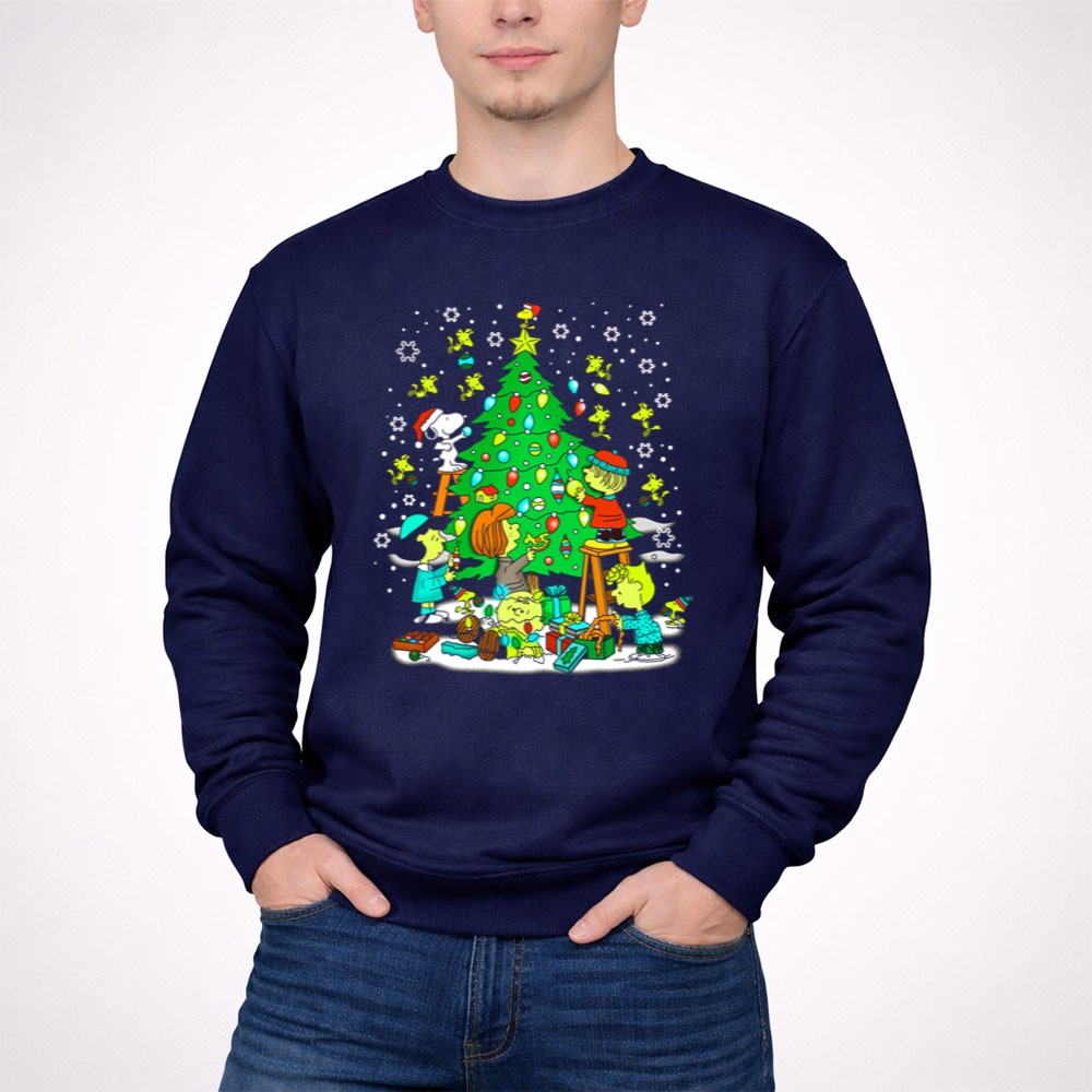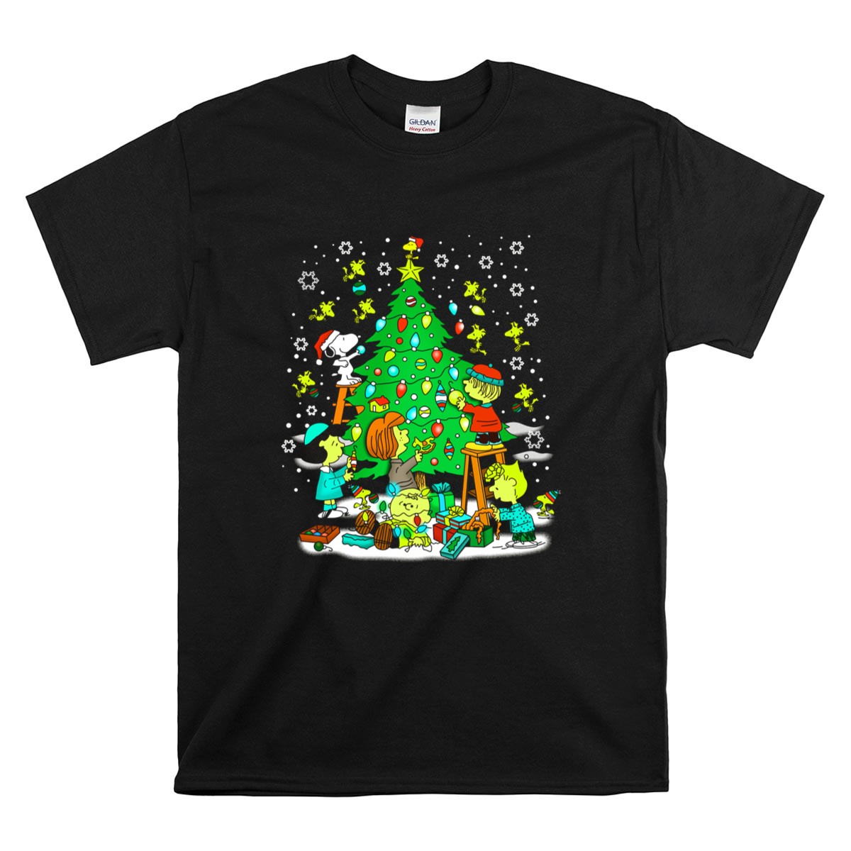 Peanuts Noel Christmas Tree Decorating with Snoopy and Friends Shirt