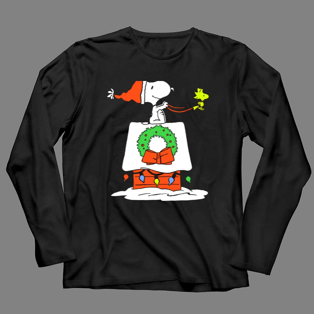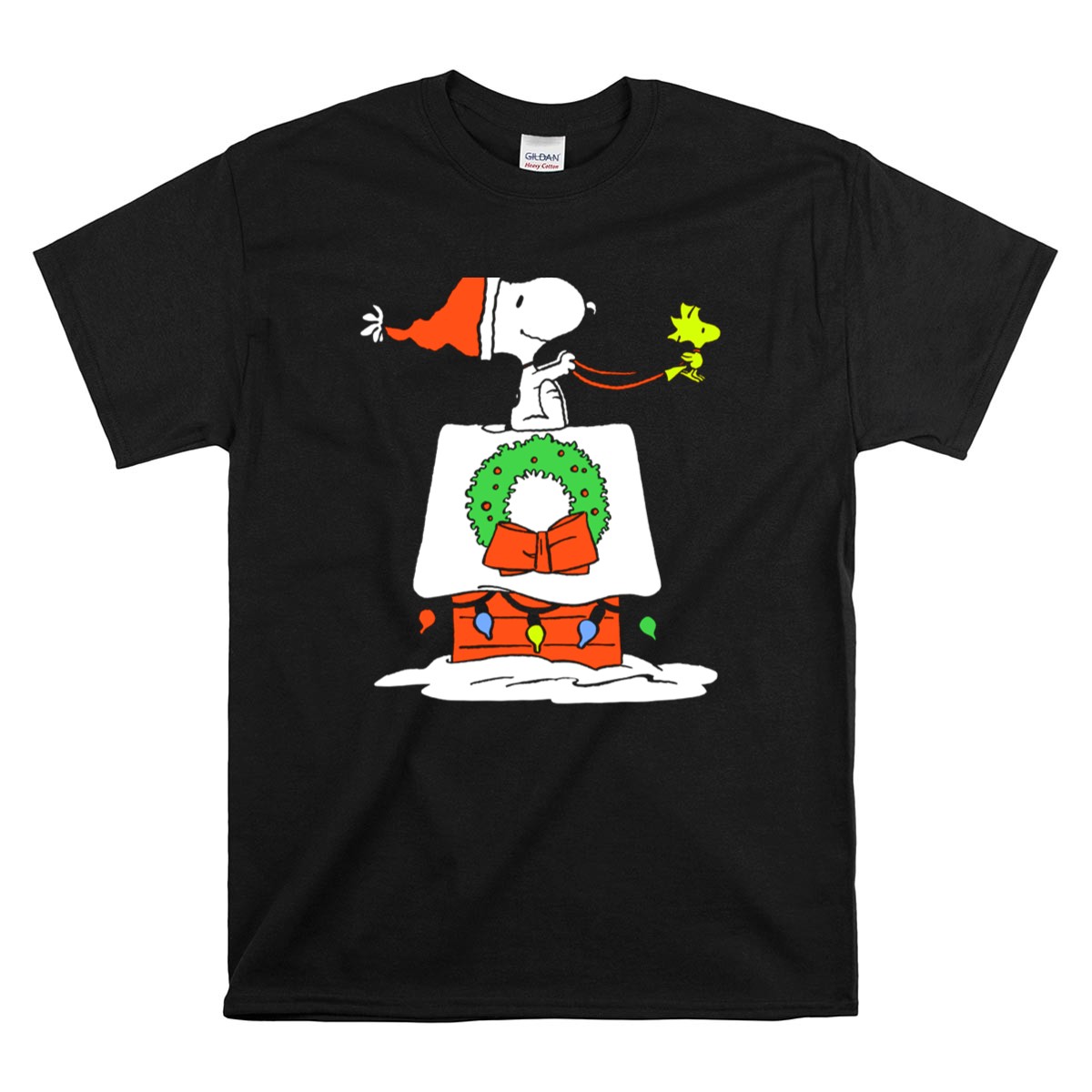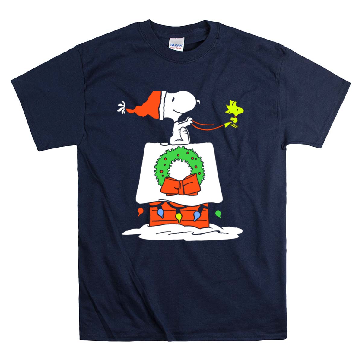 Peanuts Snoopy Santa Woodstock Christmas Wreath Doghouse Lights Shirt