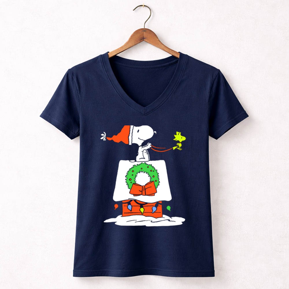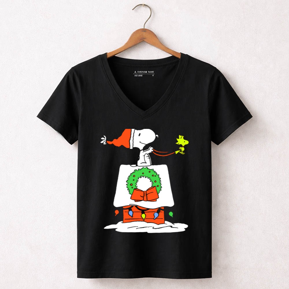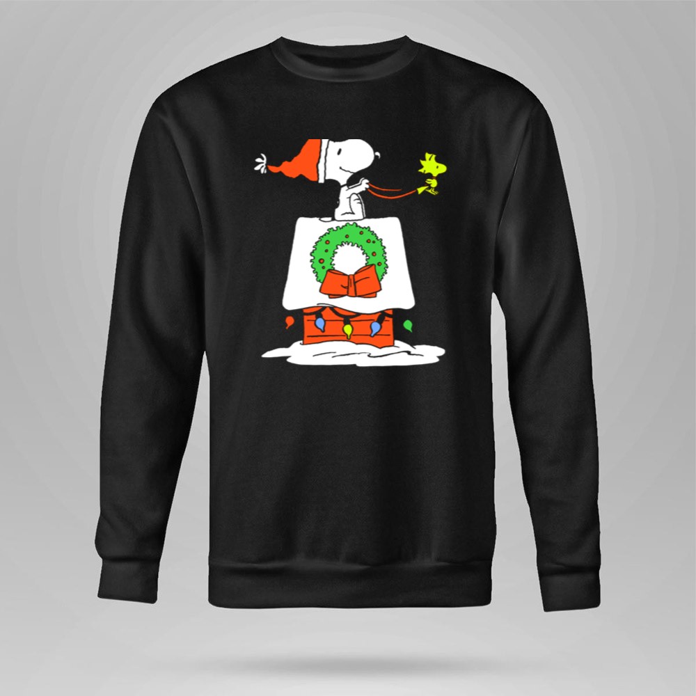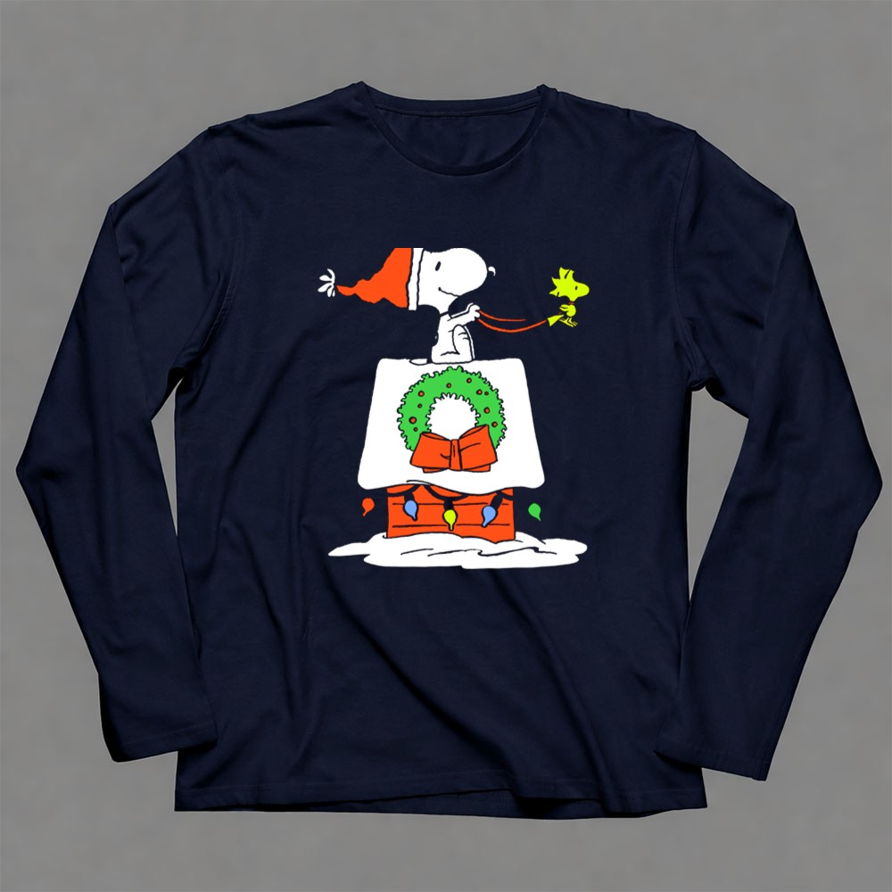 Peanuts Snoopy Santa Woodstock Christmas Wreath Doghouse Lights Shirt