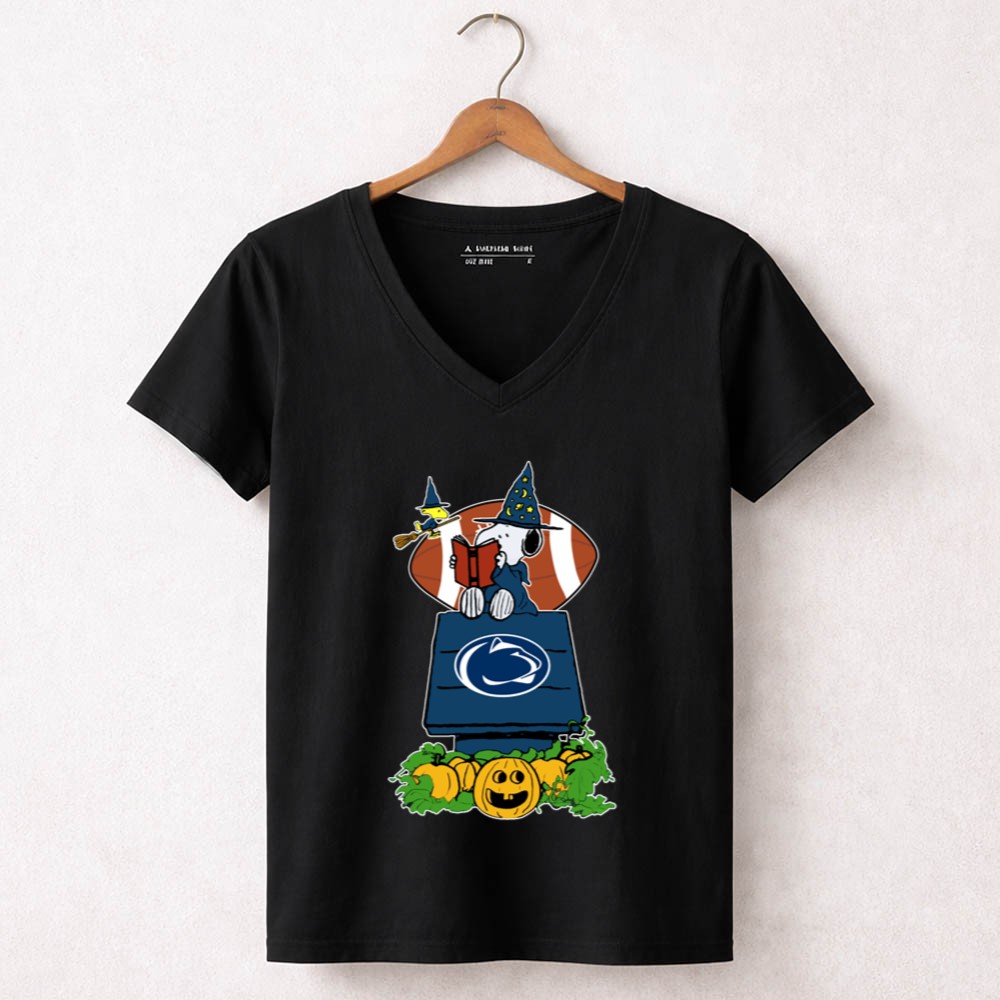 Penn State Nittany Lions, Snoopy Halloween apparel, college football fun, pumpkin patch design, Happy Valley spirit, game day celebration, whimsical sportswear, festive fall tee