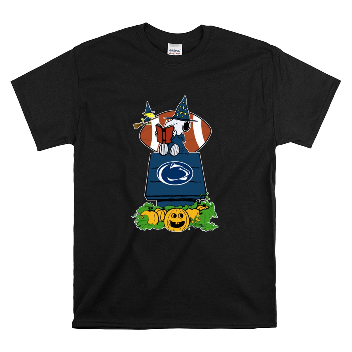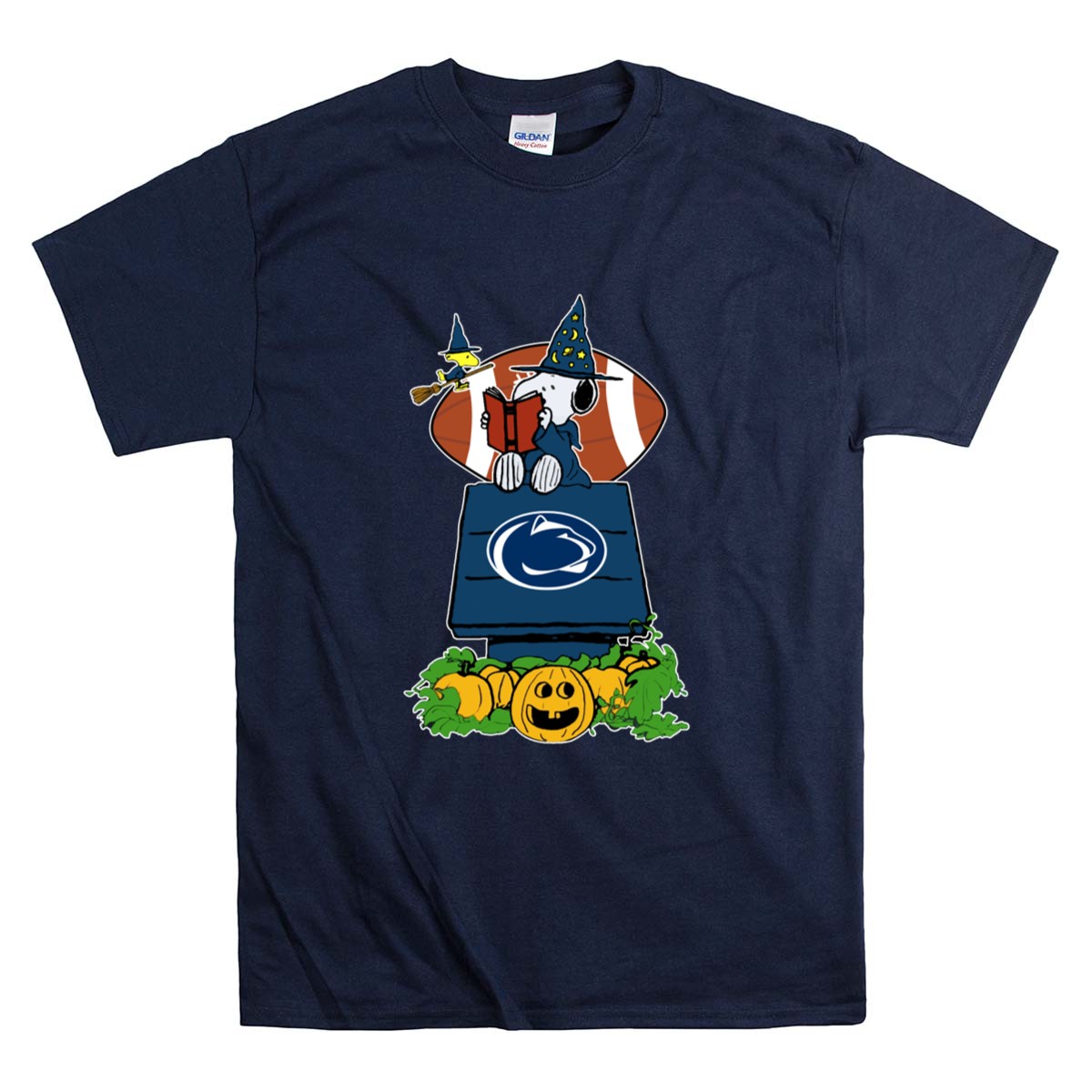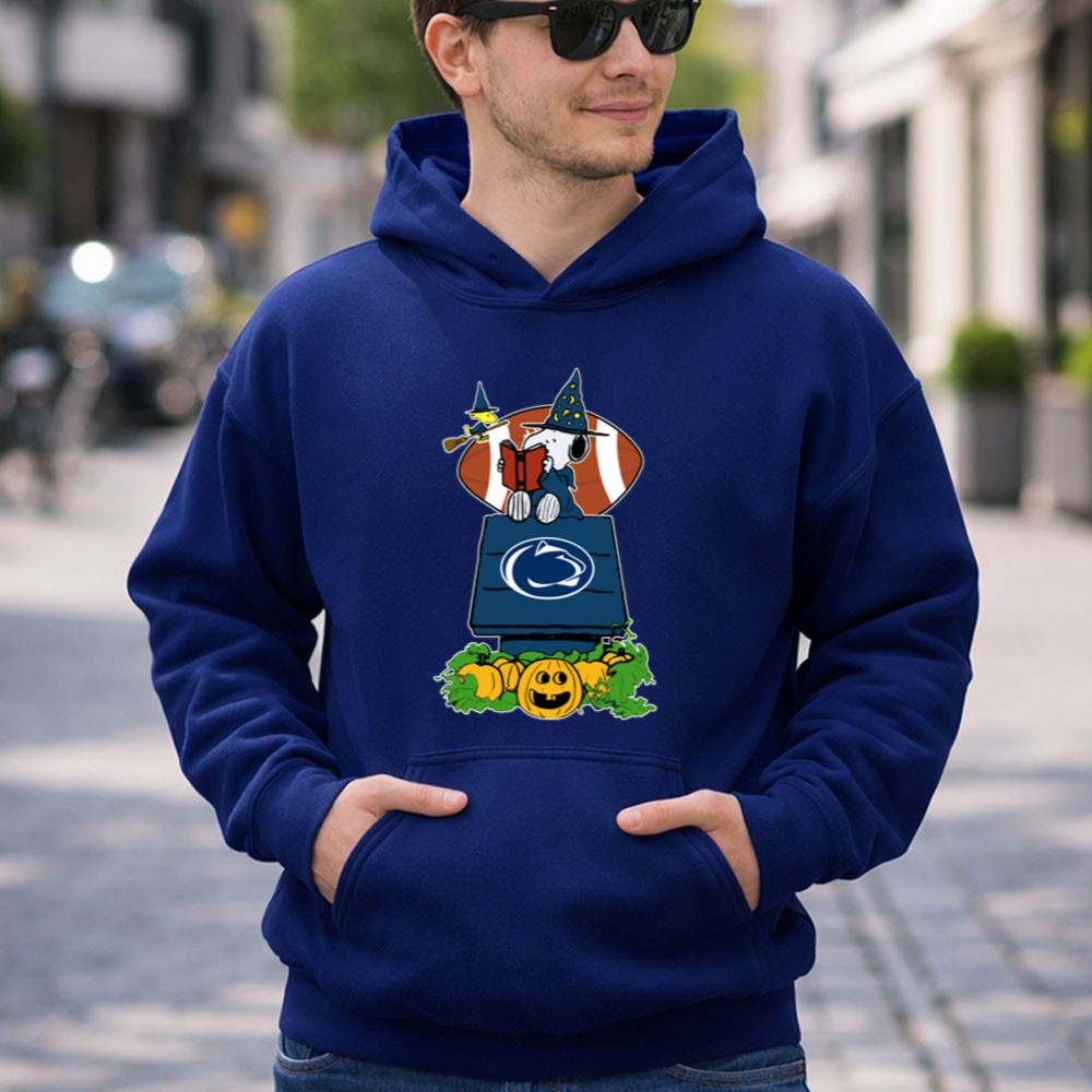 This design captures the essence of Halloween fun with Snoopy dressed as a wizard, nestled among pumpkins and the iconic Penn State logo. It celebrates the joyous blend of college football and the festive fall season, evoking a sense of togetherness and pride among fans. It’s a playful tribute to the beloved traditions of Happy Valley.